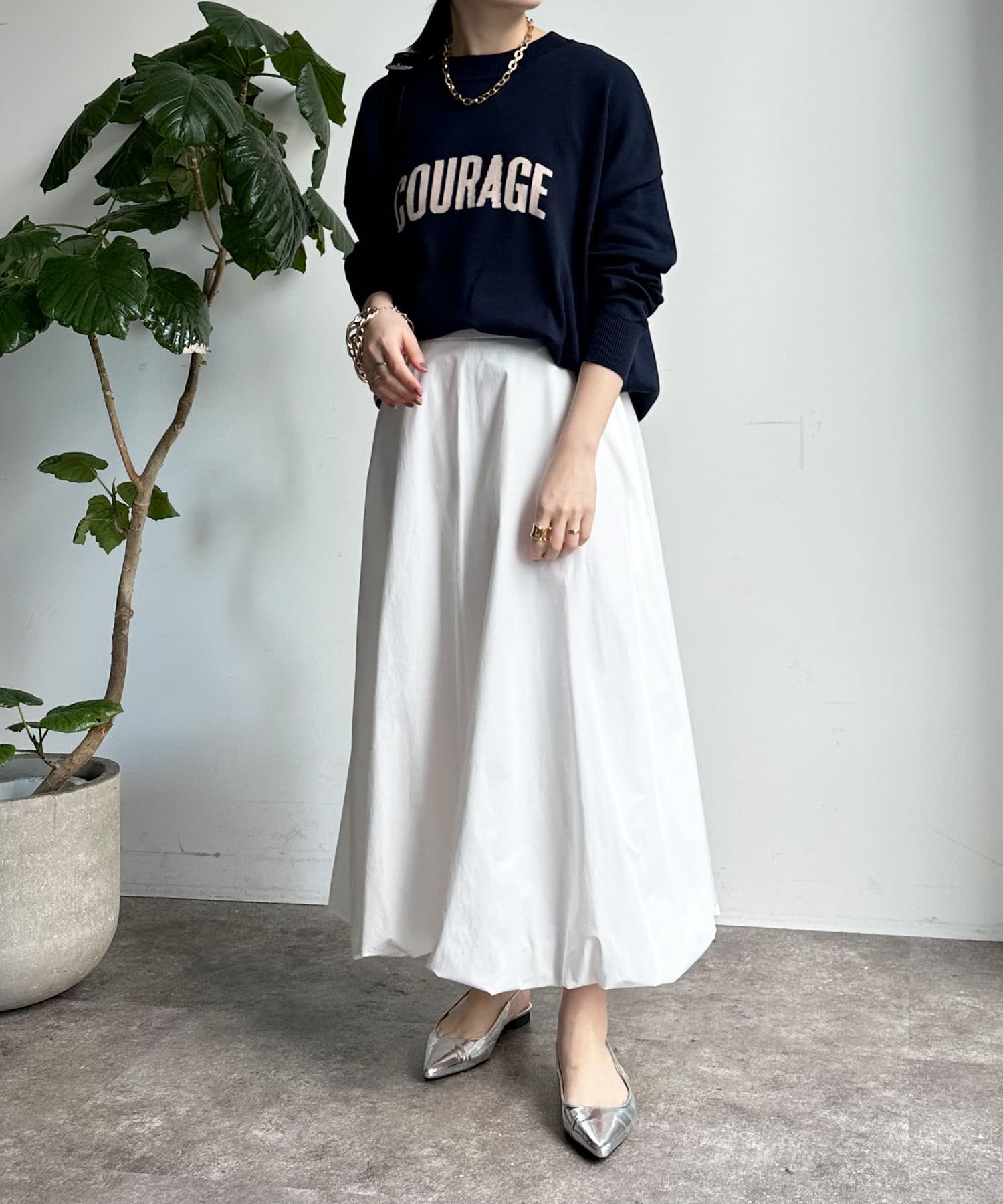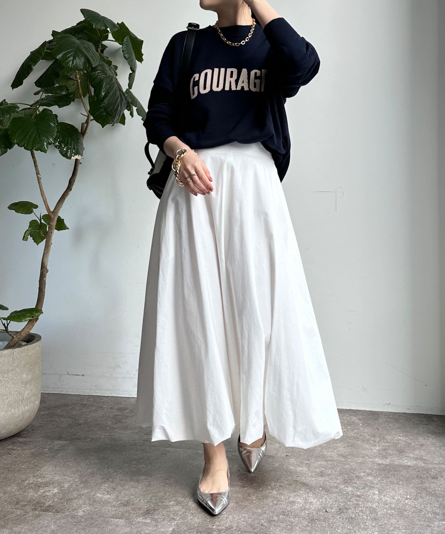 体型カバーも叶えてくれるルーズなサイジングで様々なシルエットのボトムと合わせていただけそう。