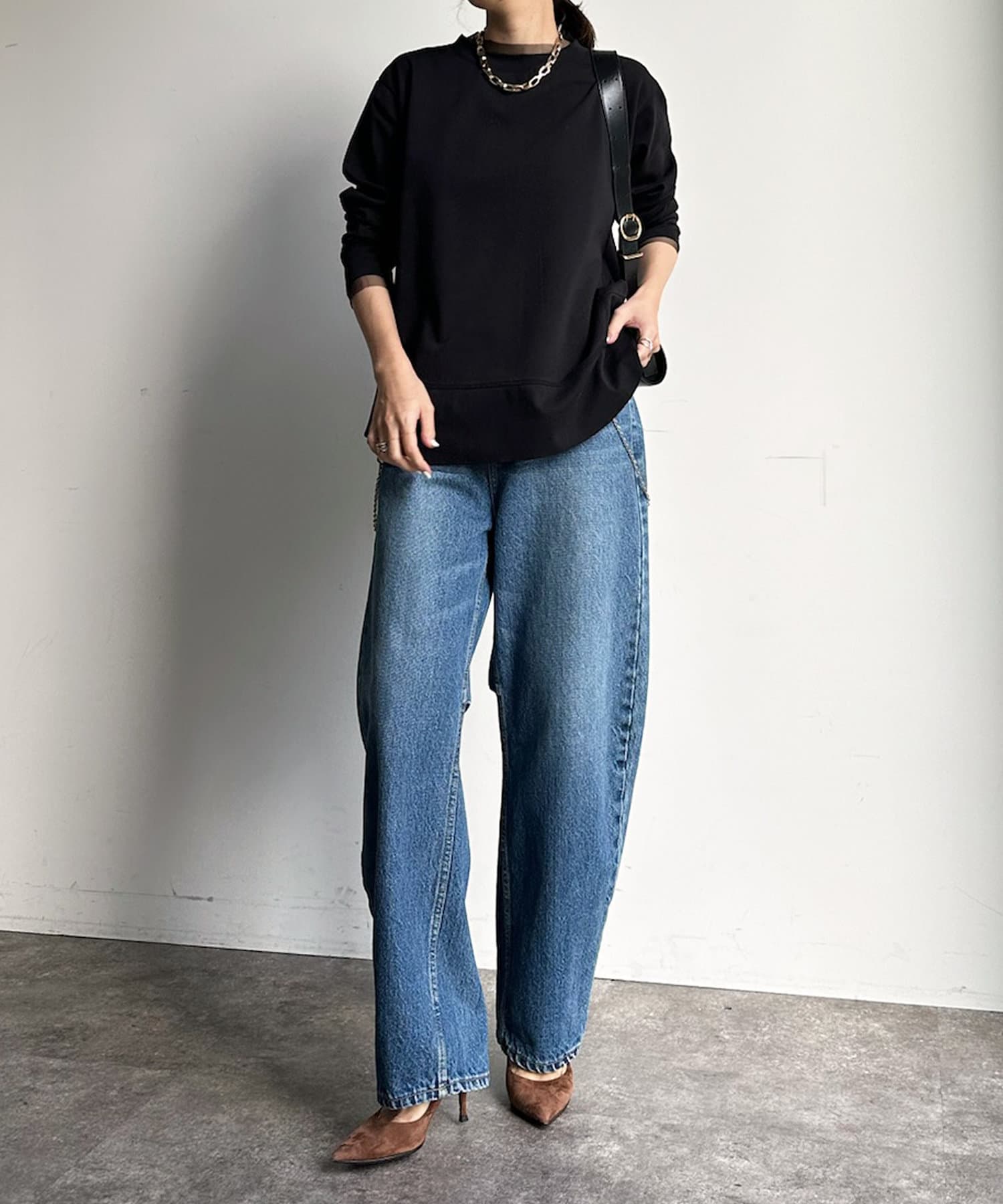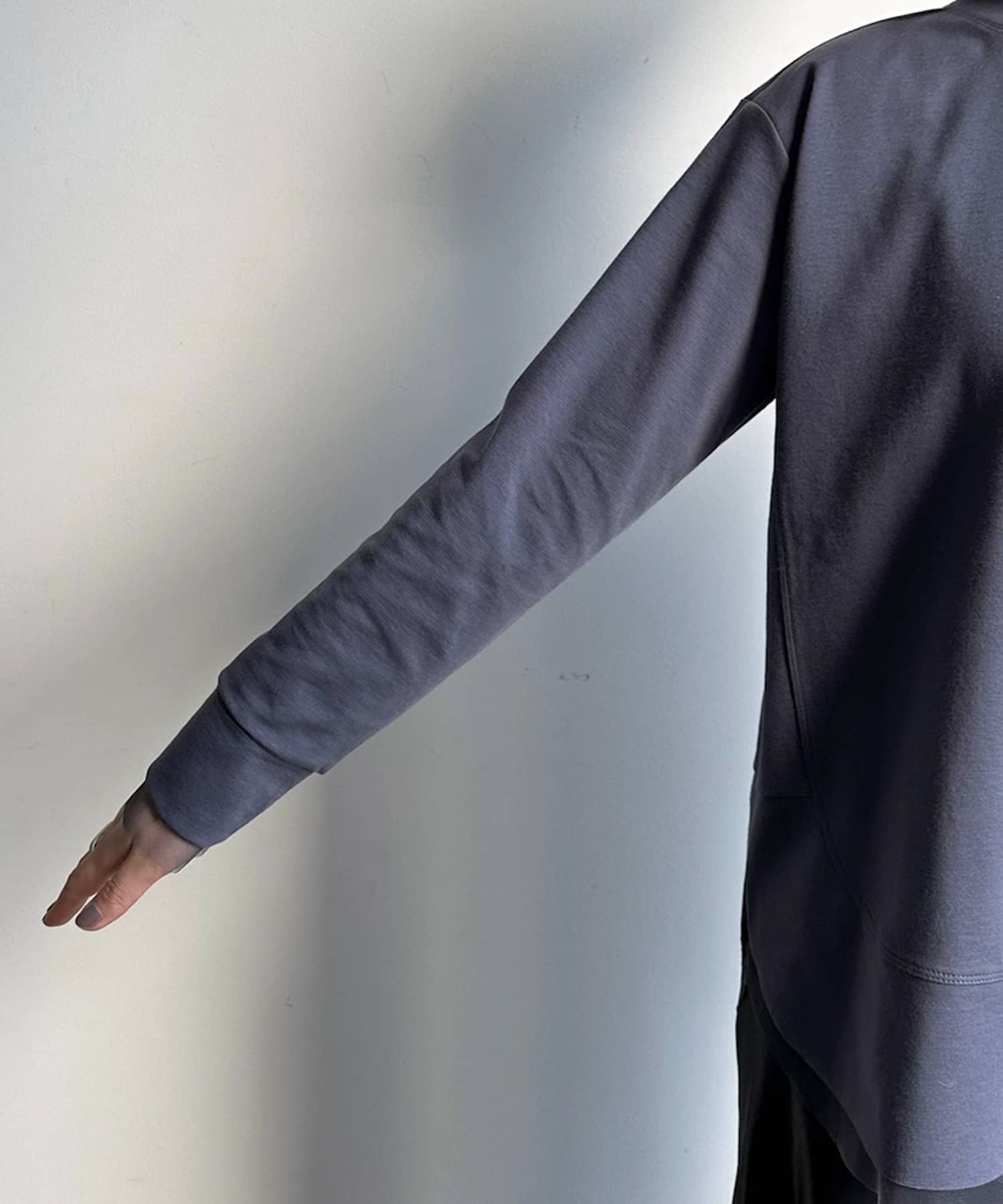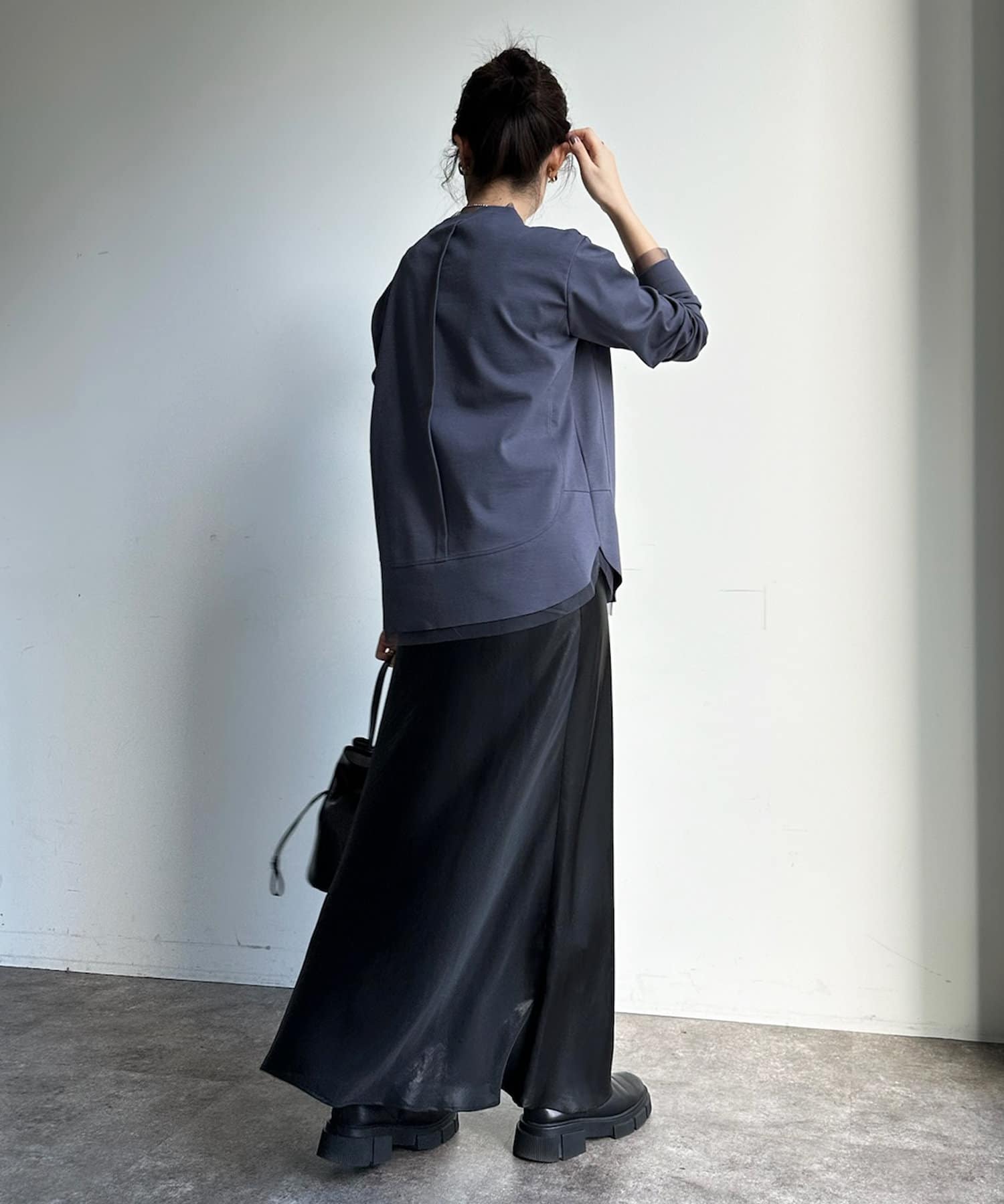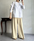 カットソー本体にも裾やサイドなどに切り替えのラインを施しているため、表情感のあるおしゃれな1枚に仕上がっています。