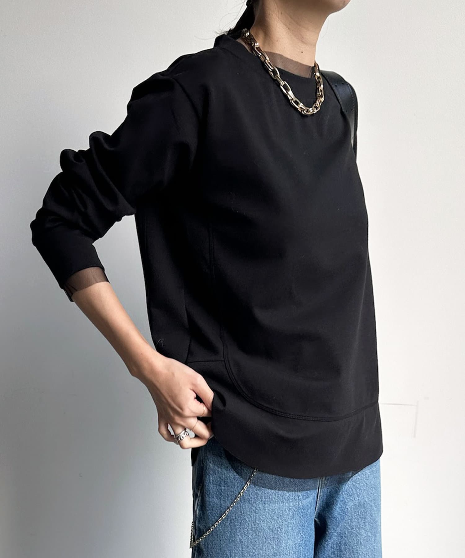 チュール素材をレイヤードしたようなデザインが魅力の長袖カットソー。