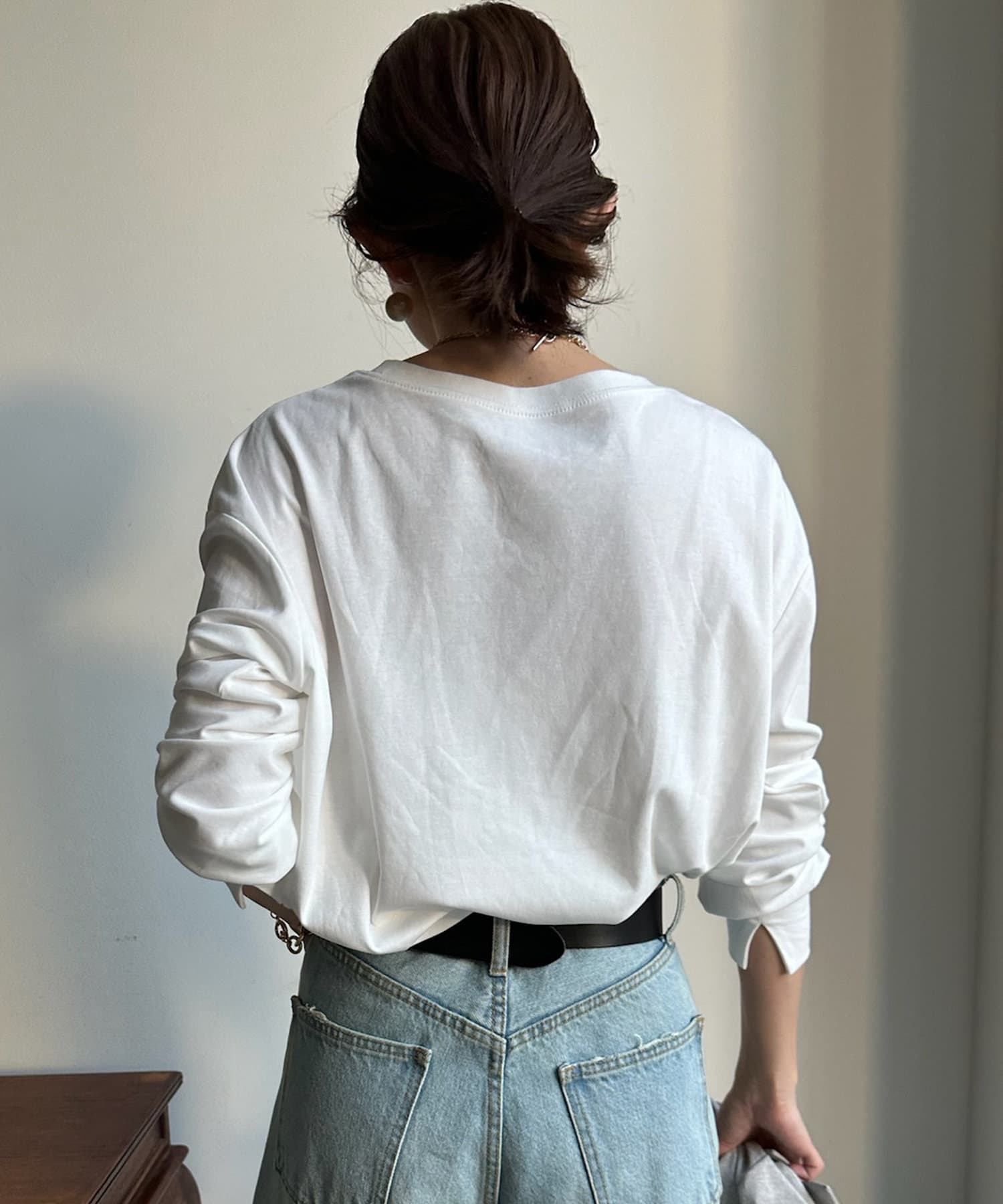 スウェットほど分厚すぎず、透け感の少ない程よい厚みの生地で1枚でもインナーとしても使いやすさ◎