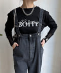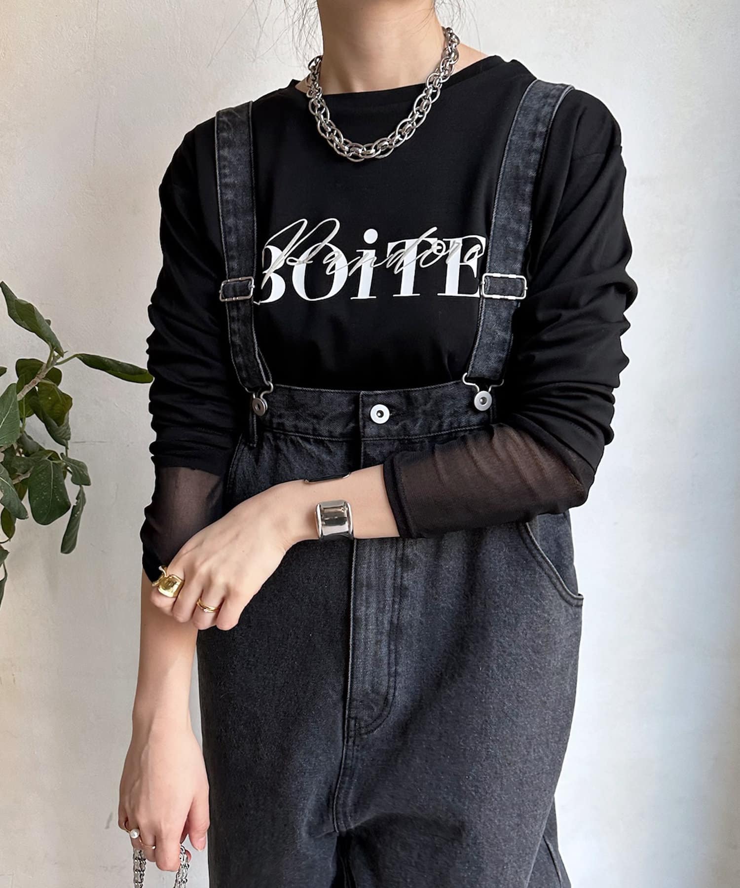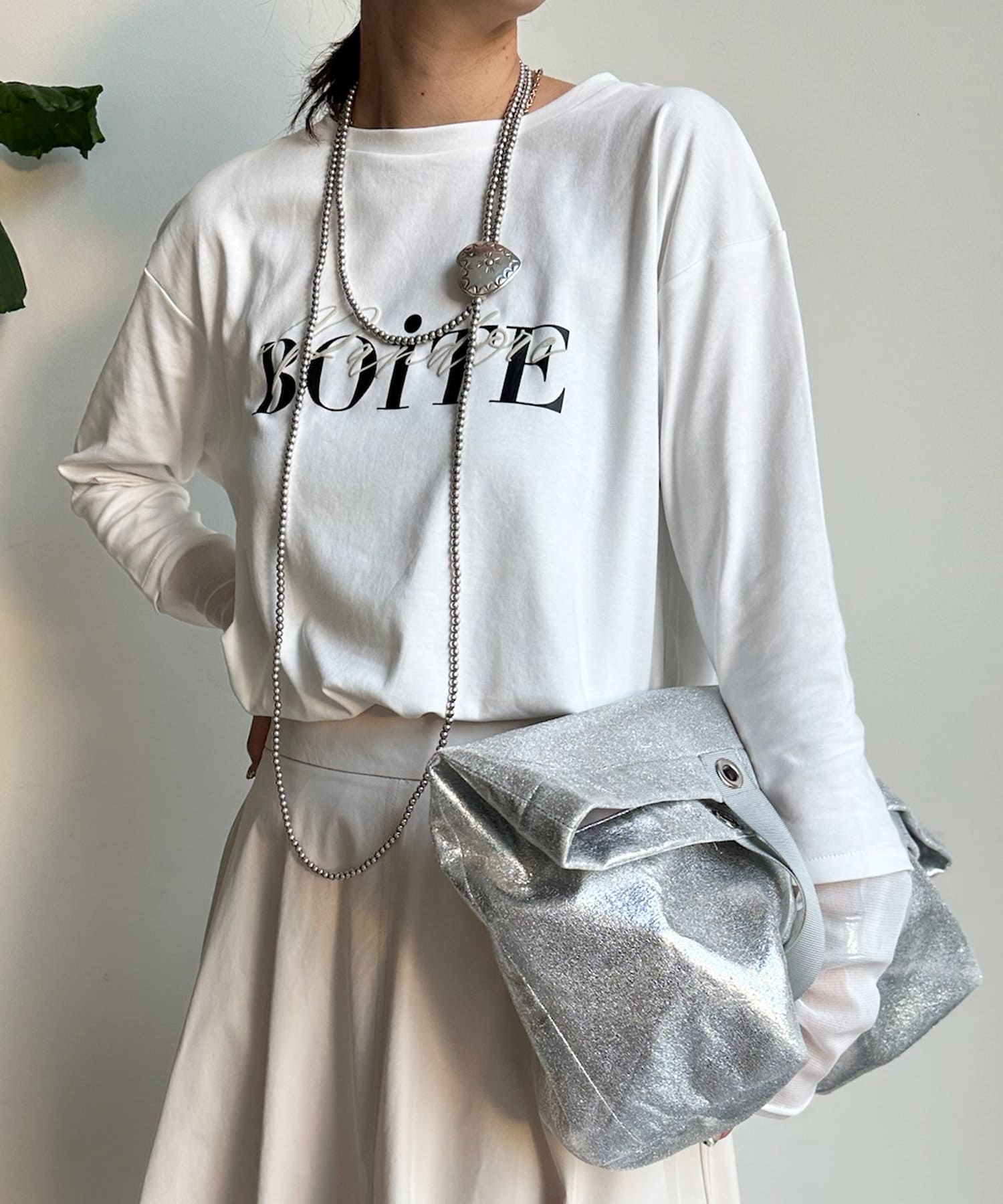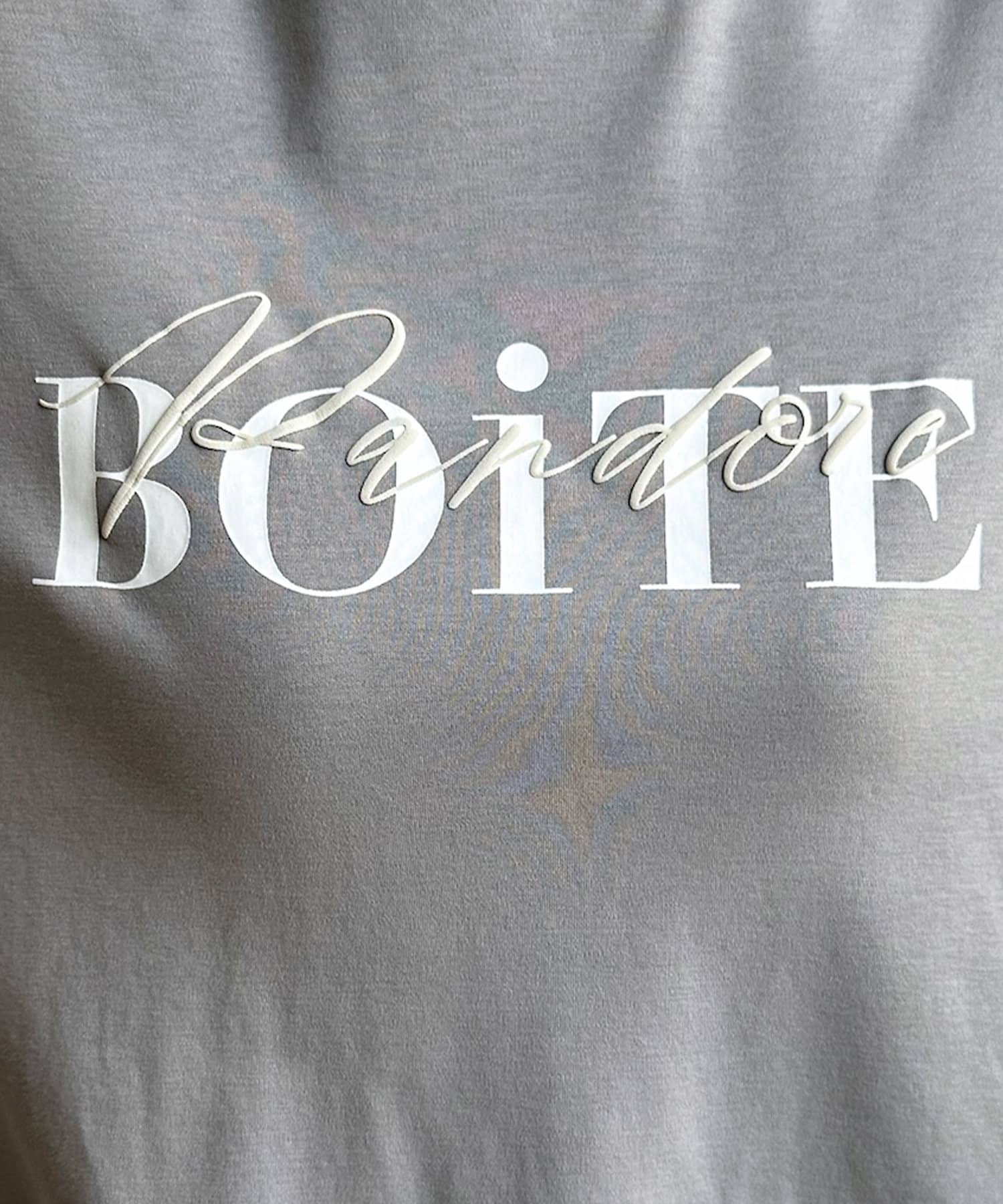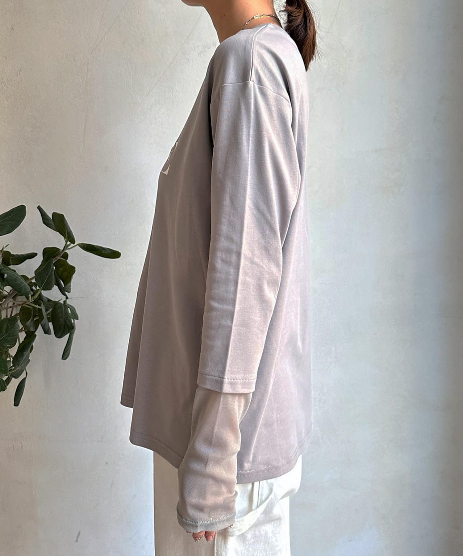 表面感のあるフロッキーロゴと、袖のシアー切り替えデザインがおしゃれな1着。