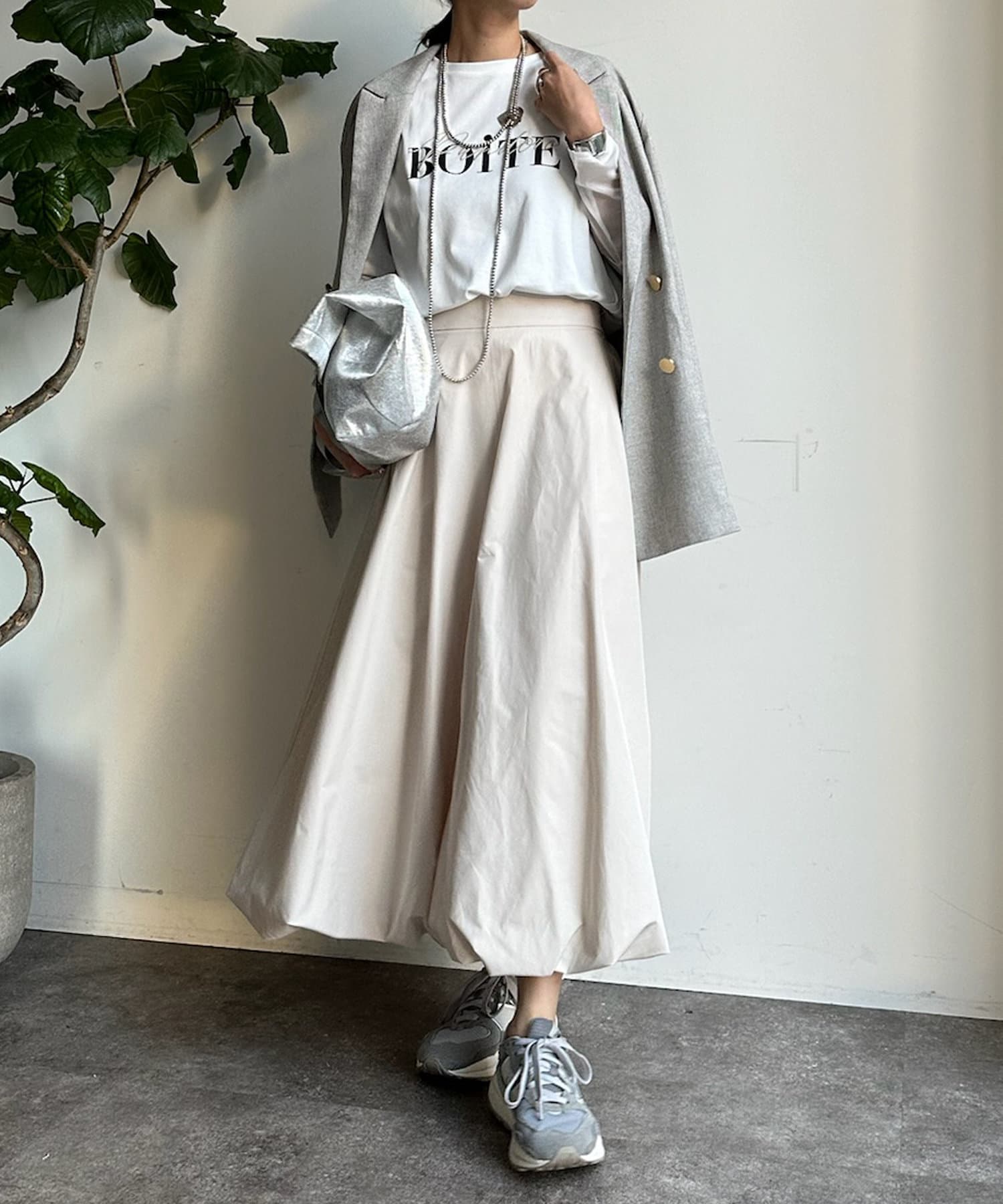 ボトムを選ばないデザインで汎用性が高く、ロングシーズン着回しを楽しんでいただけますよ!
