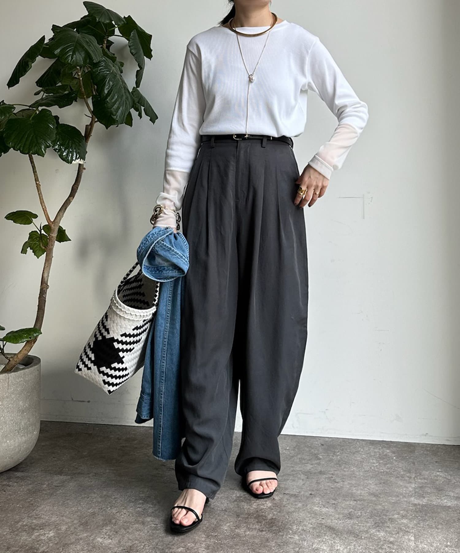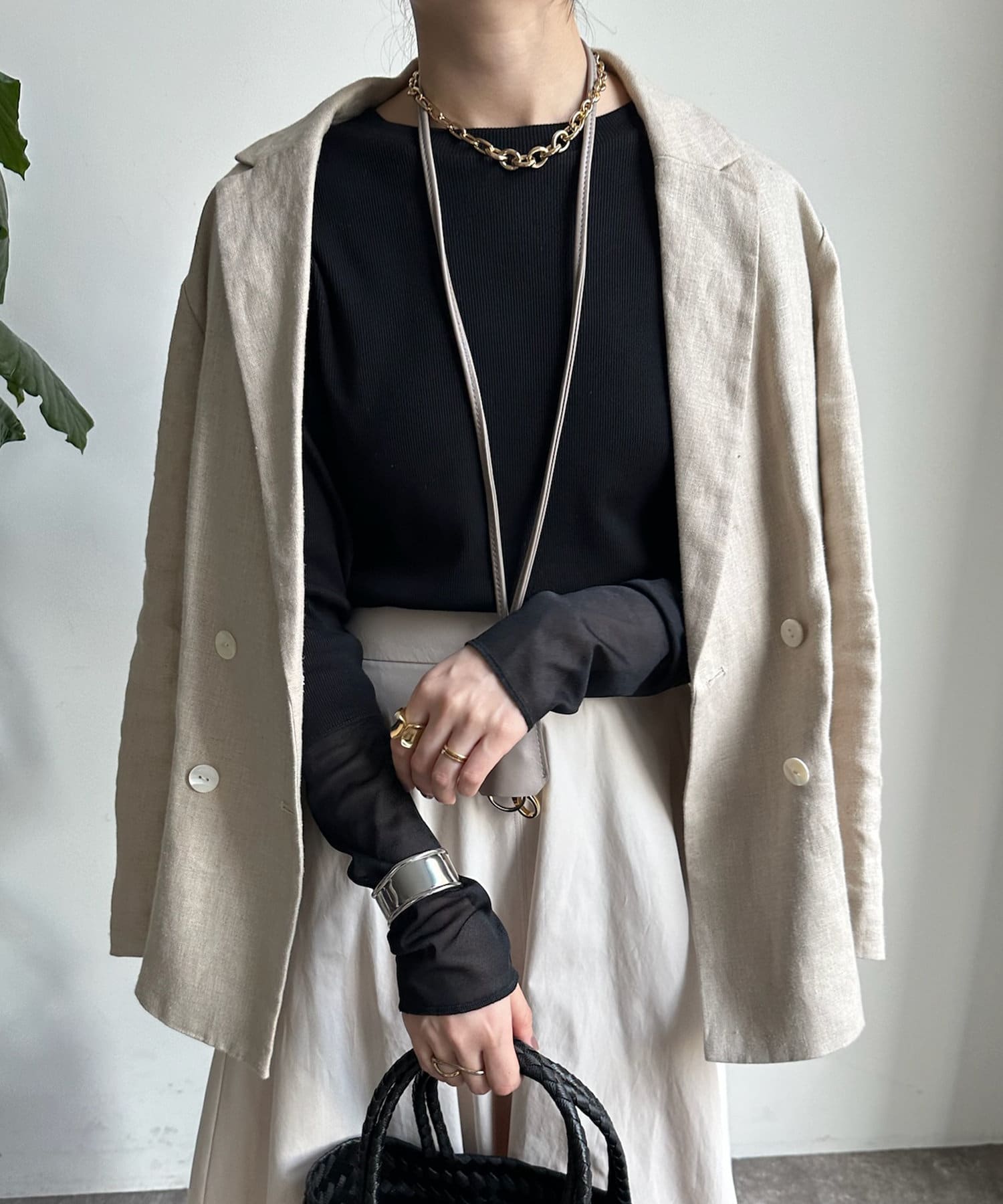 1枚ではもちろん、レイヤードとしても着ていただけるため、かなり汎用性の高いアイテムとなっております。