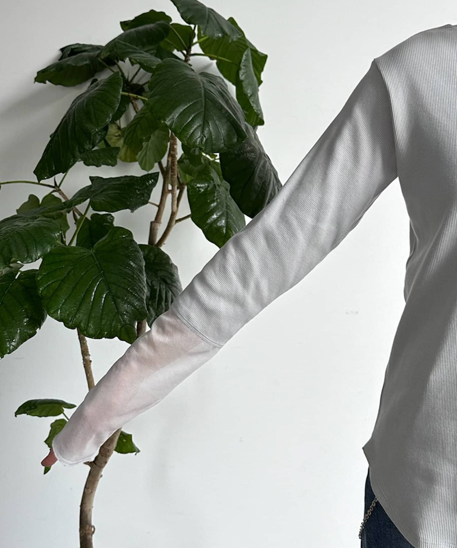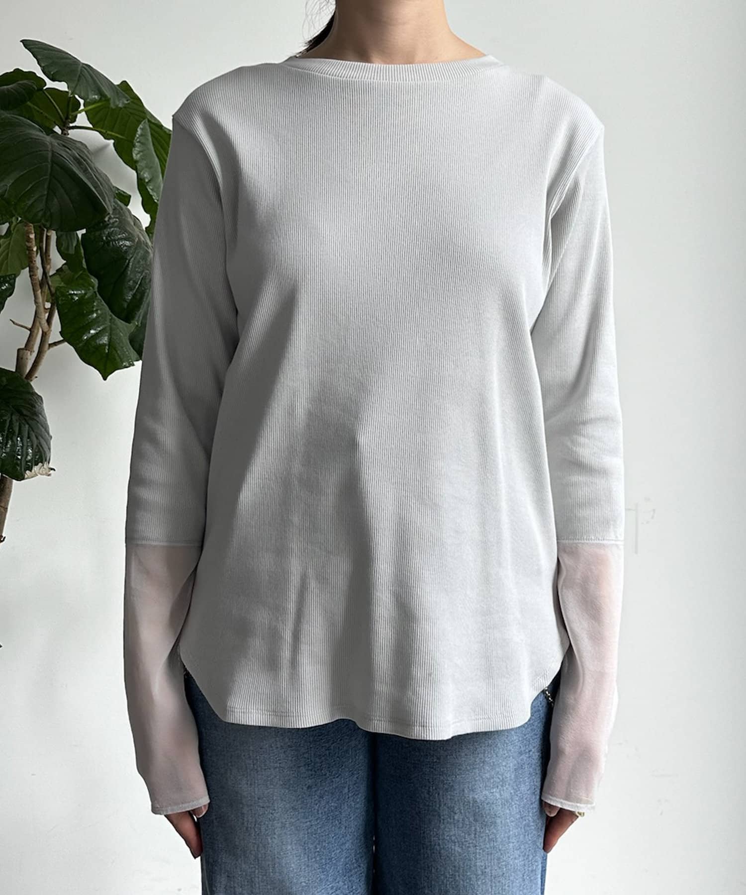 袖部分は長めに切り替えている為、女性らしくスッキリとした印象に。