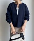 ラフな印象の裏毛スウェットにデザインを加えておしゃれに仕上げた1着。