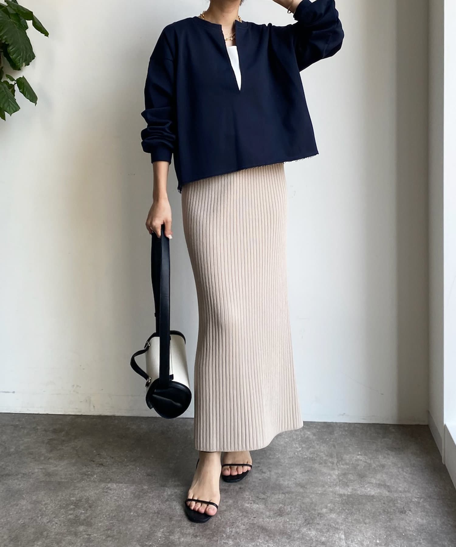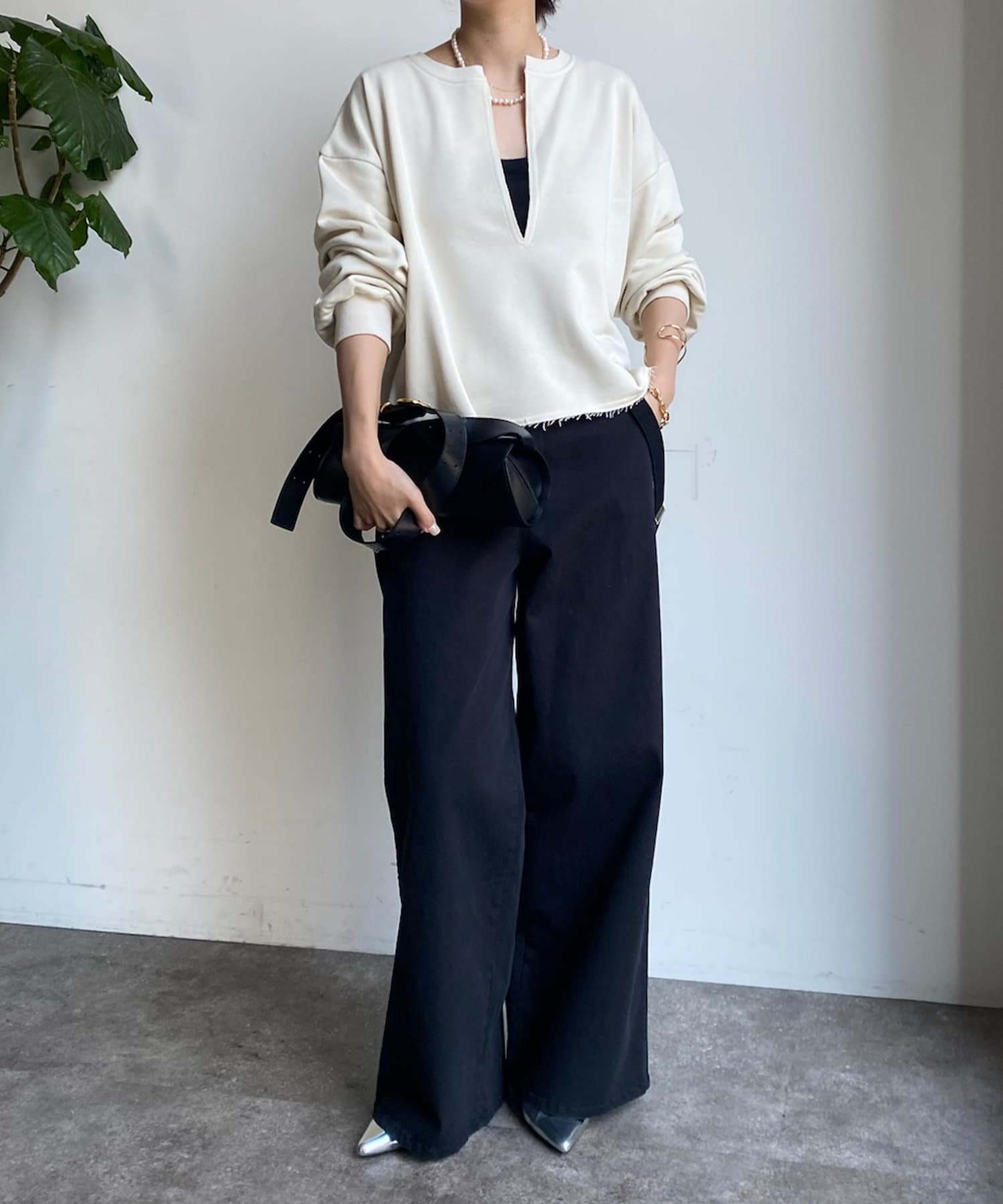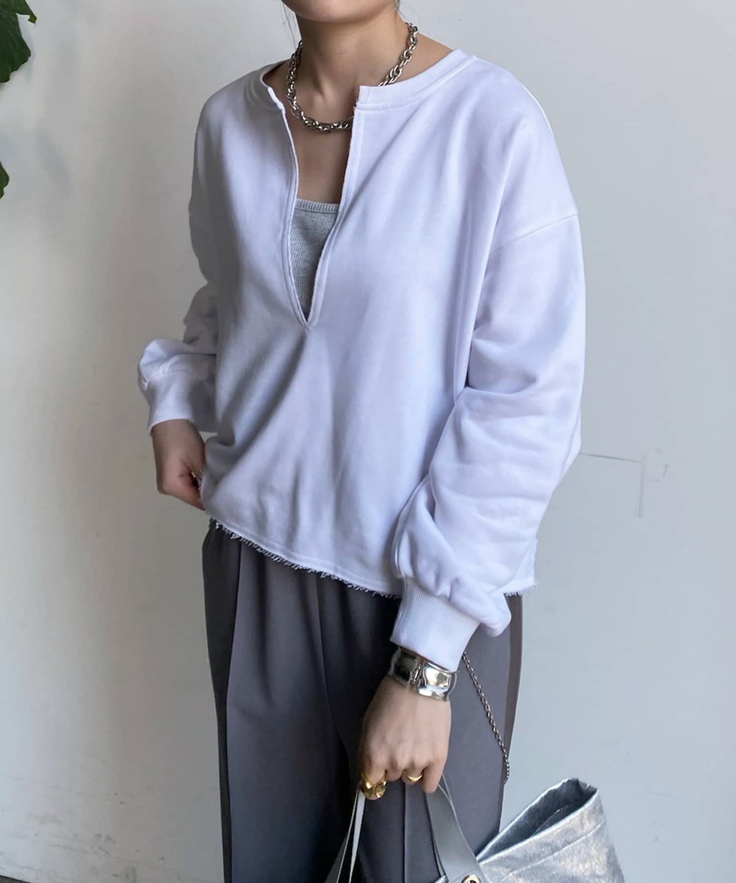 ざっくりと入ったネックのカットがおしゃれ見え!