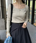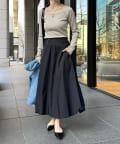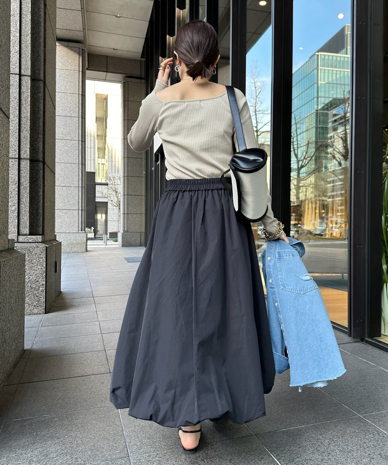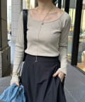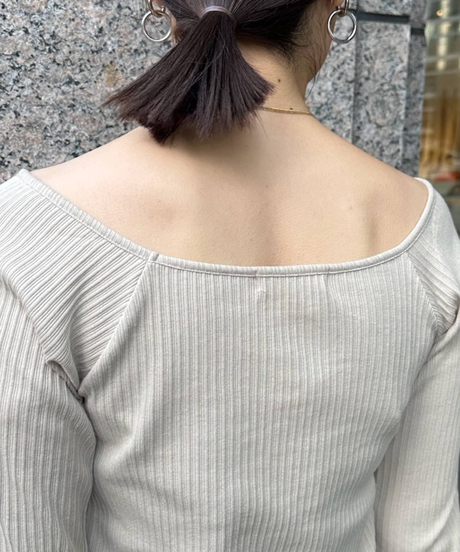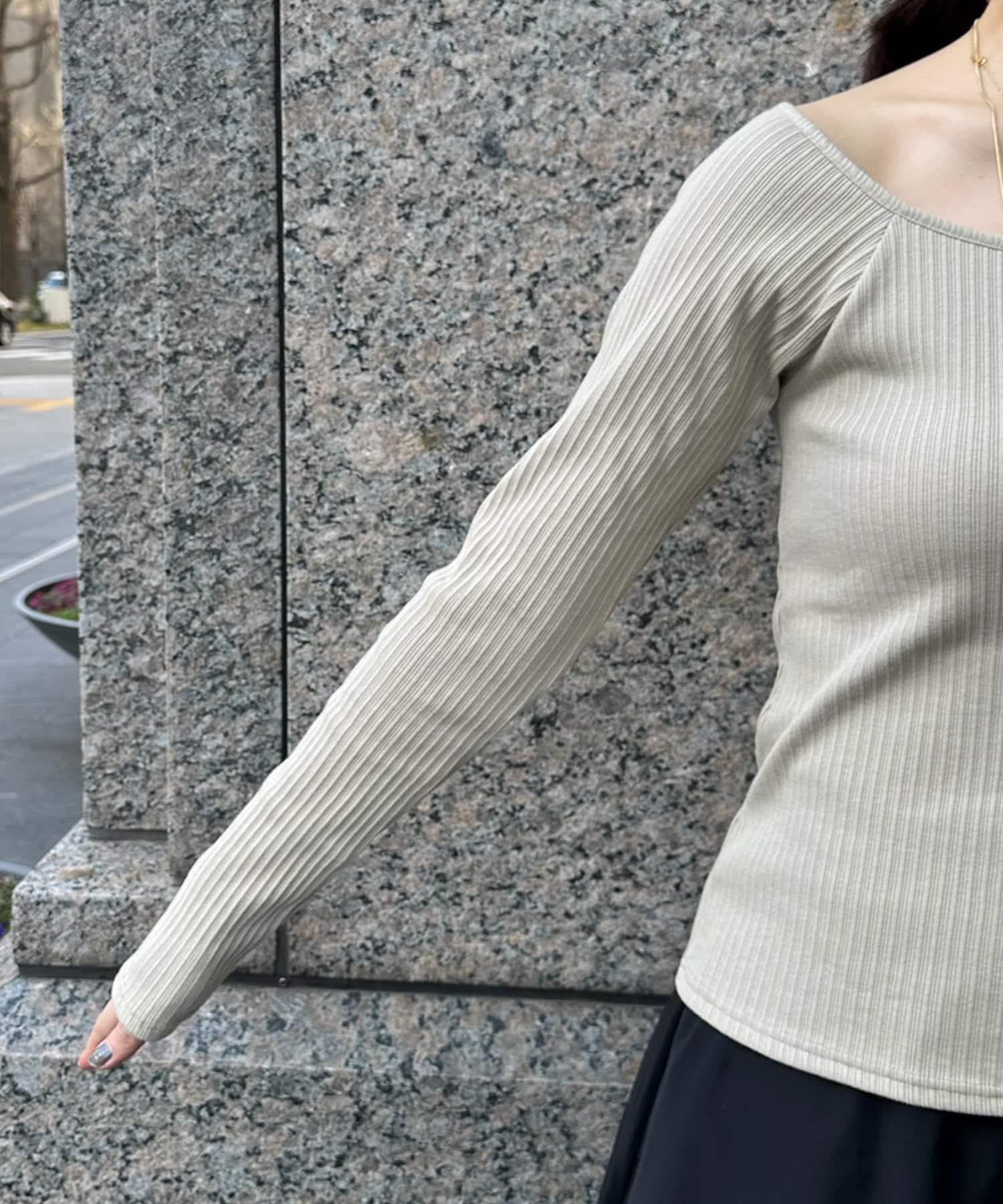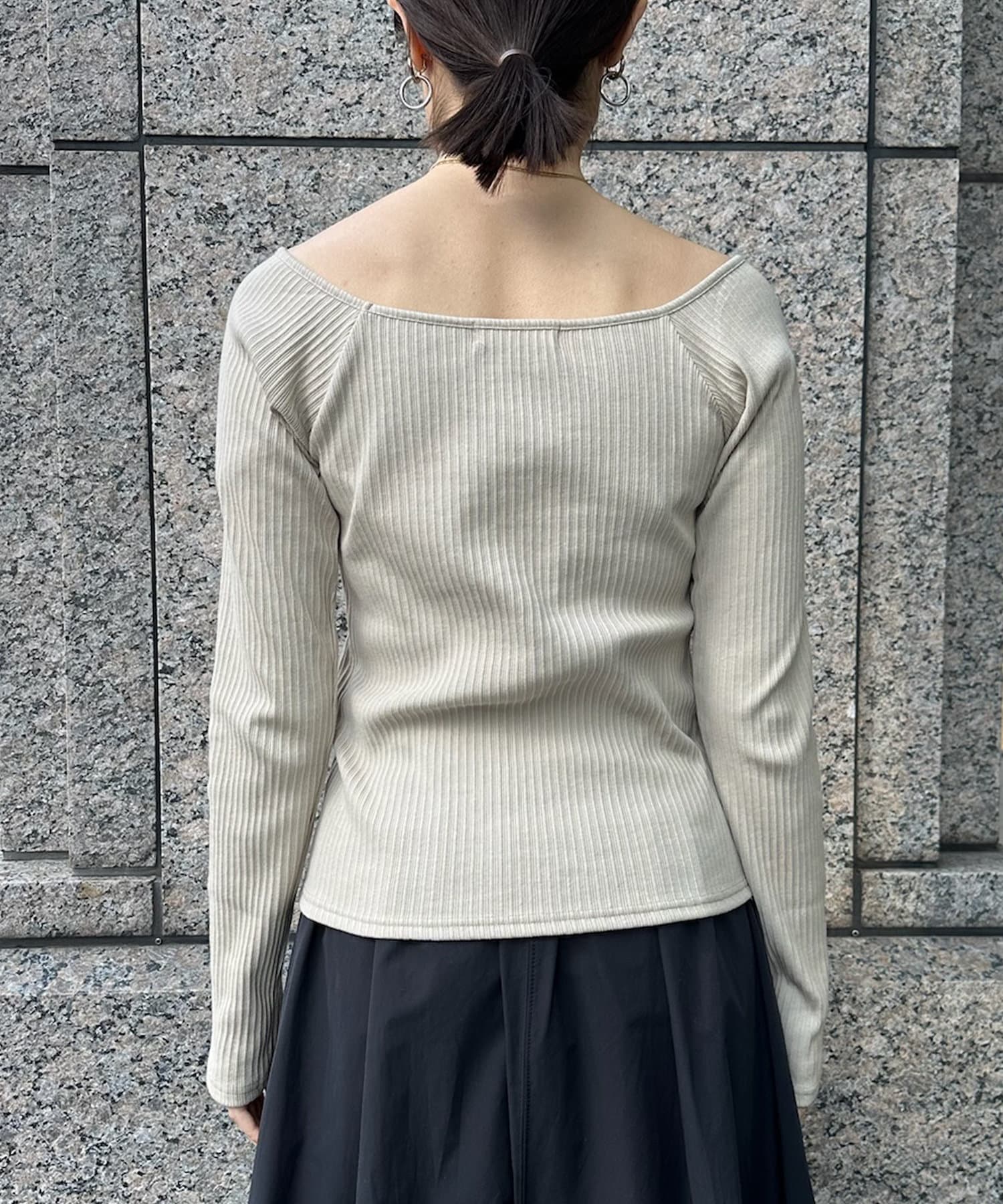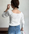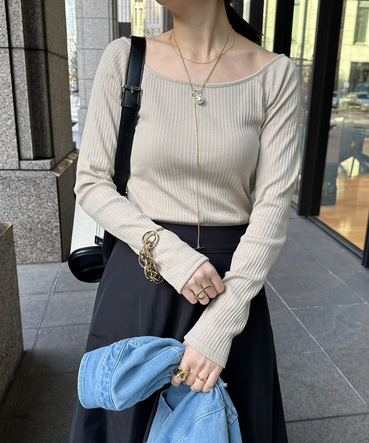 デコルテの空き具合や伸びやかな着心地に拘ったスクエアネックのテレコカットソー。
