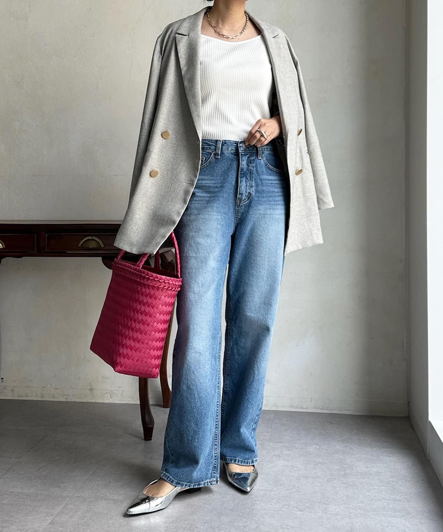 トレンドのサロペット合わせや、デニムシャツ・ジャケットなどとのレイヤードにも。