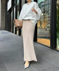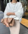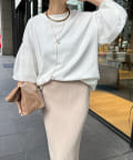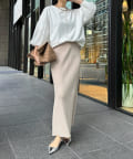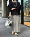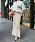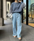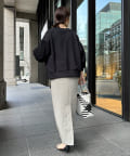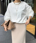 身幅は余裕感がありながらも、すっきりと着られるシルエット。首元は詰まりすぎずに、リラクシーさをプラスします。