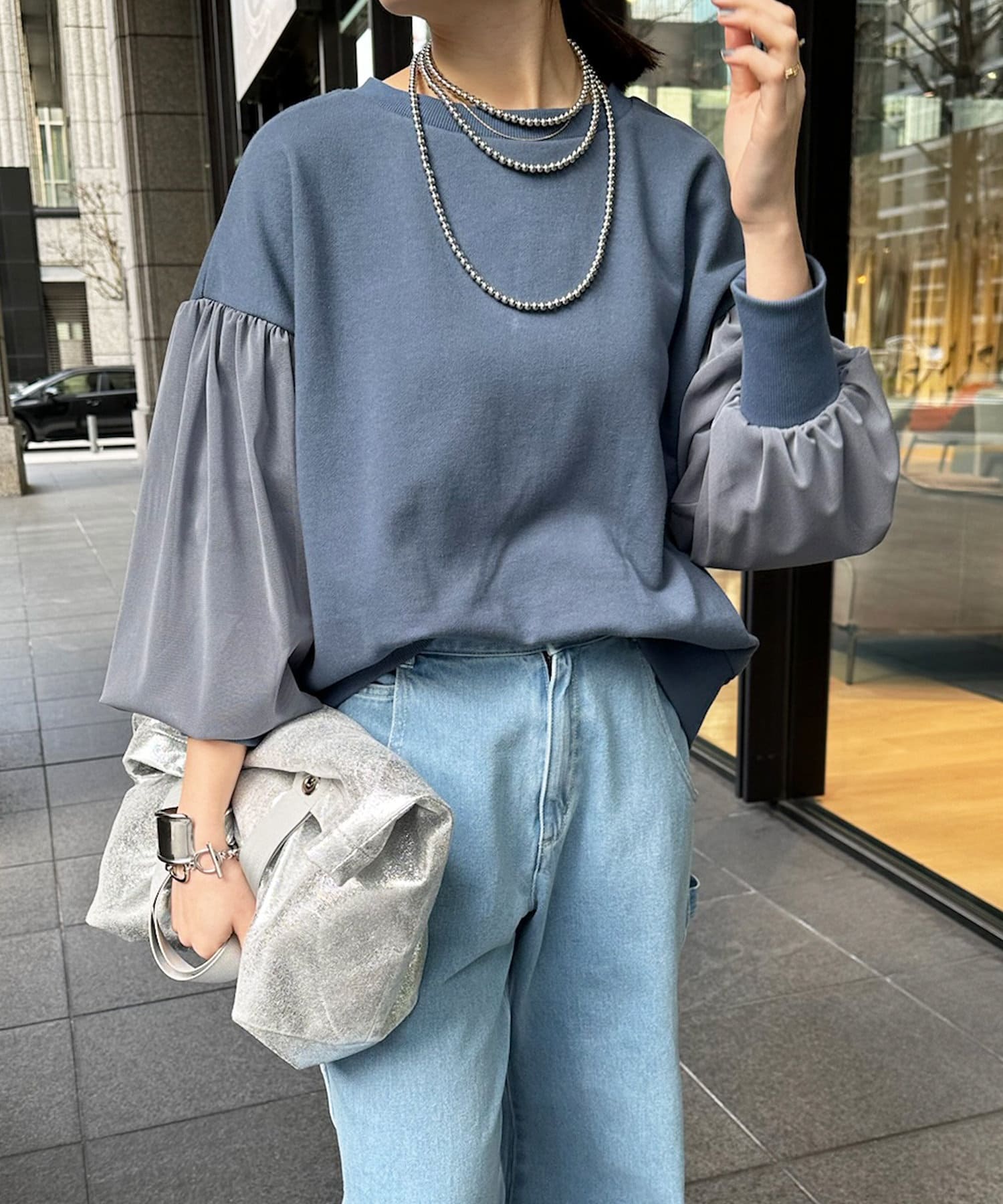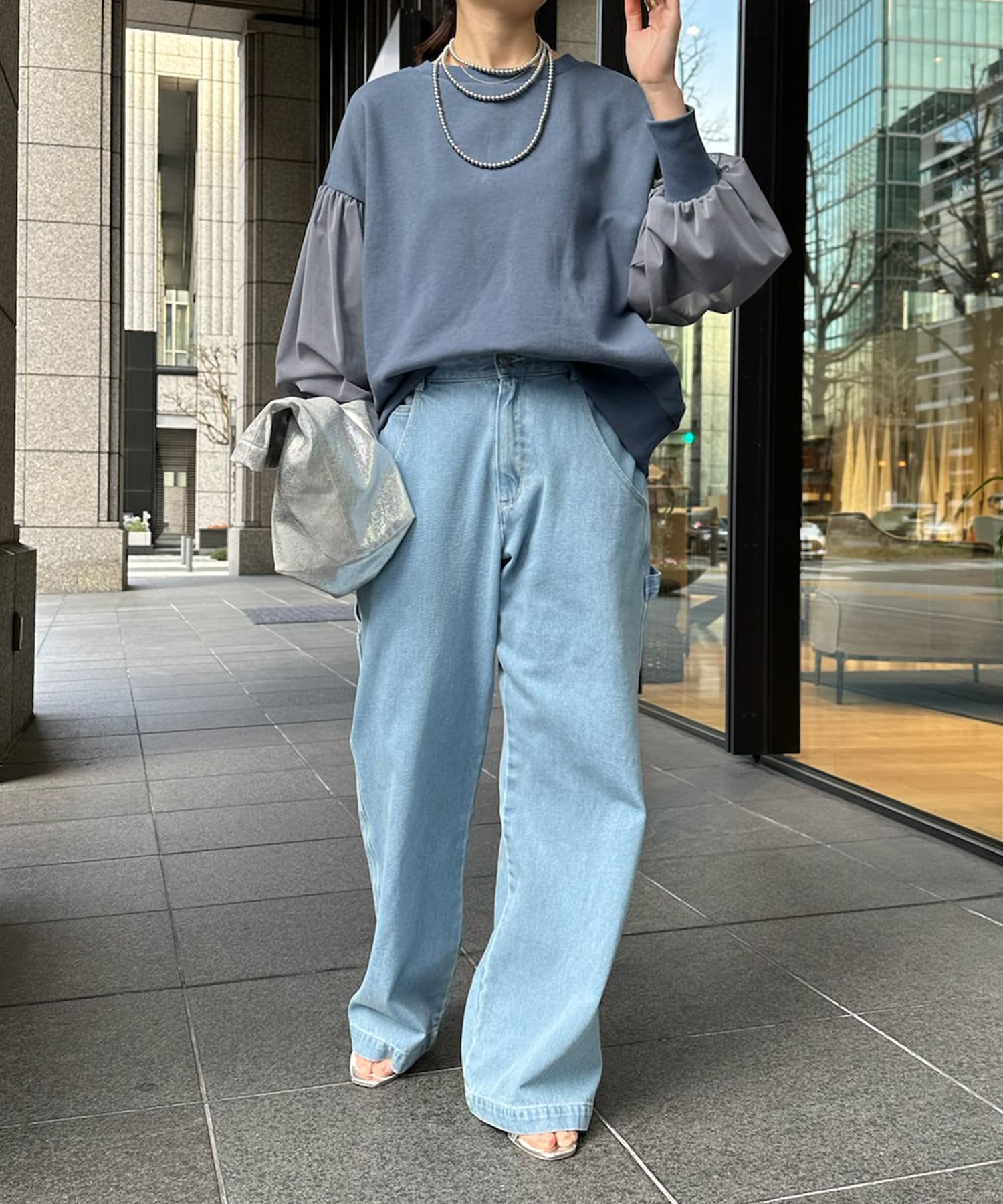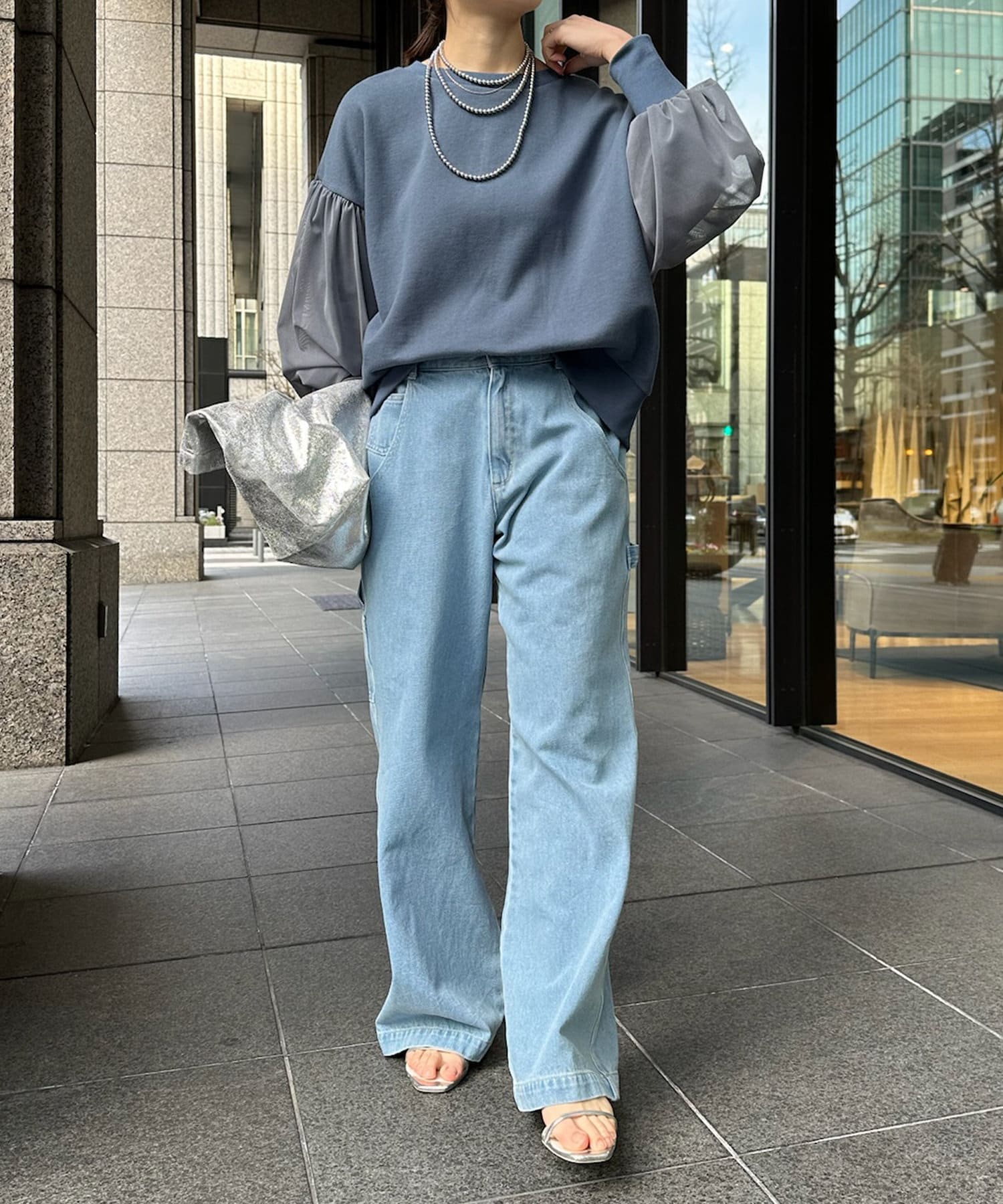 カジュアルなデニムやパンツと合わせて、アクセサリーをプラスしたスタイルがおすすめです。