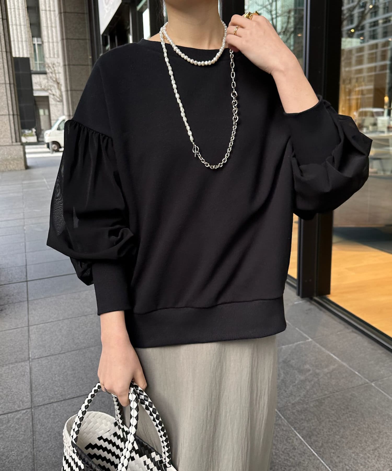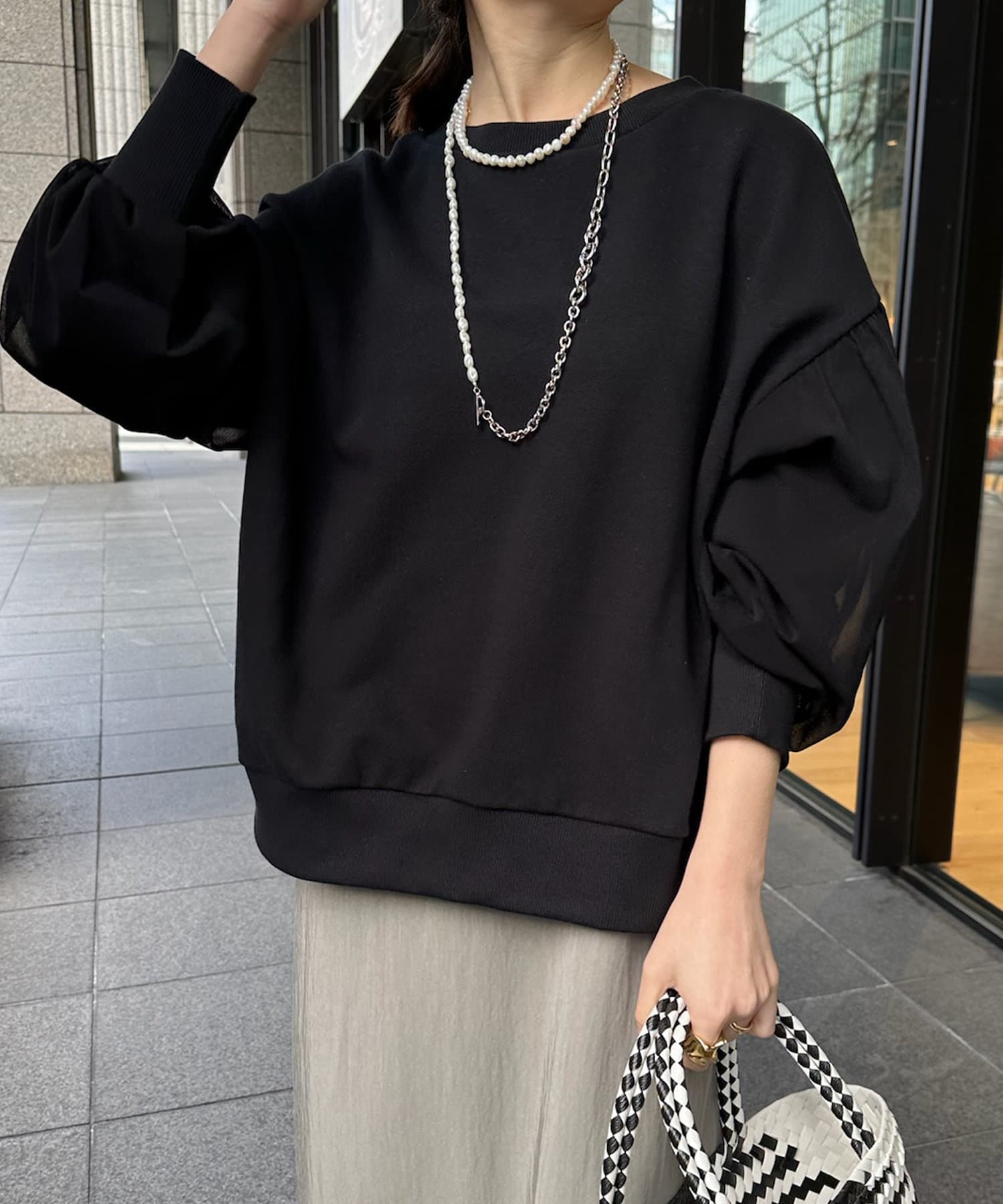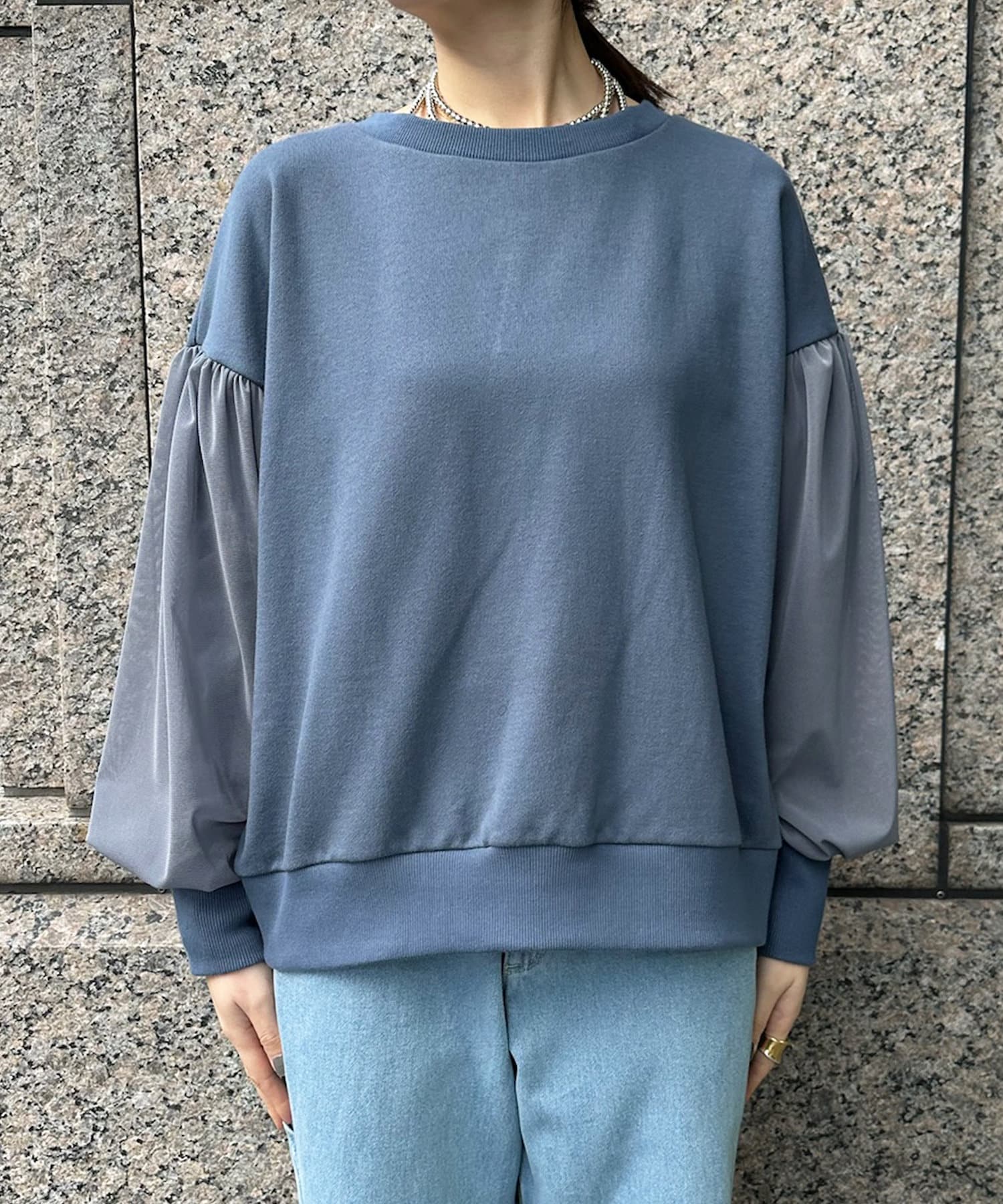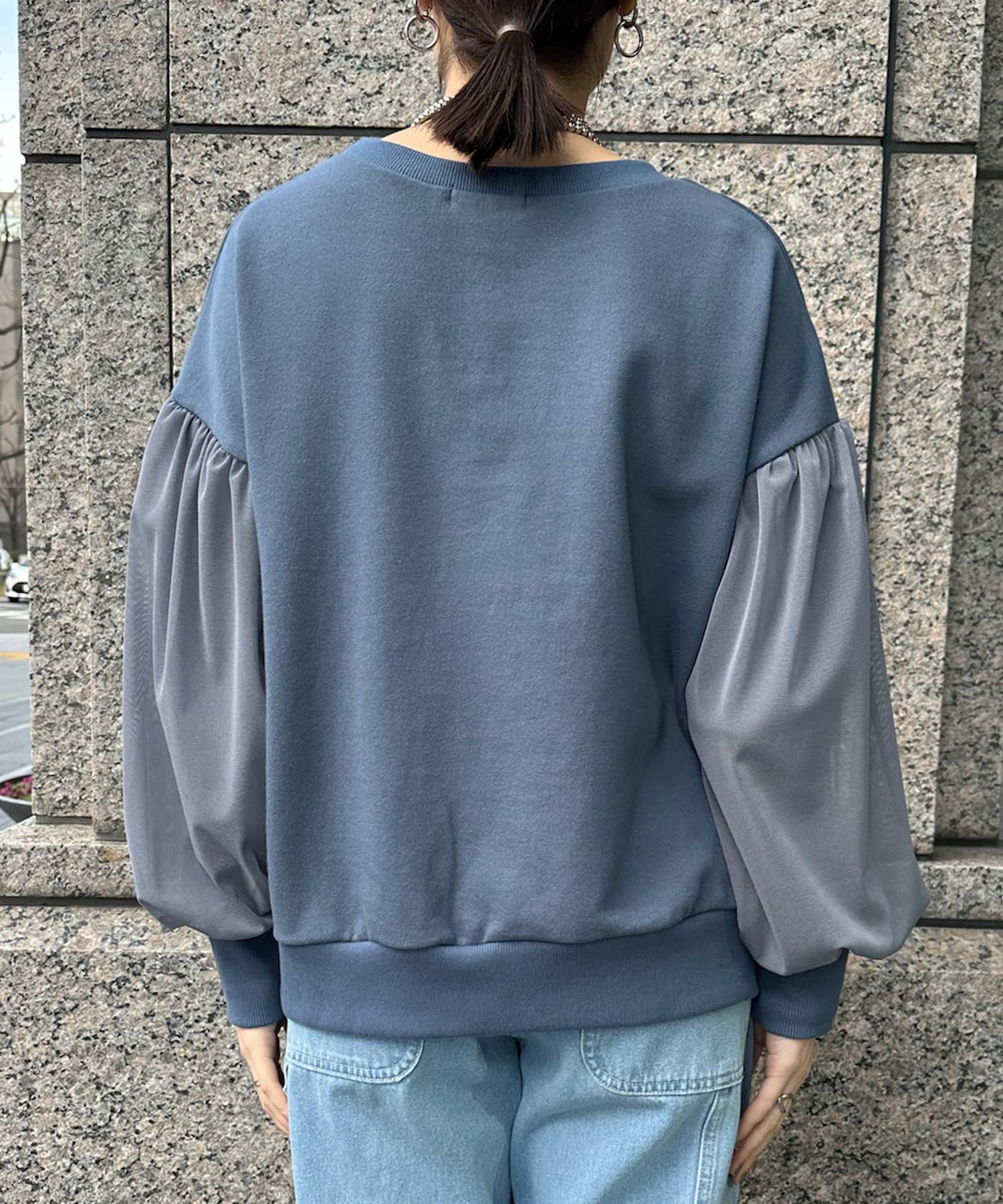 袖チュールスウェット