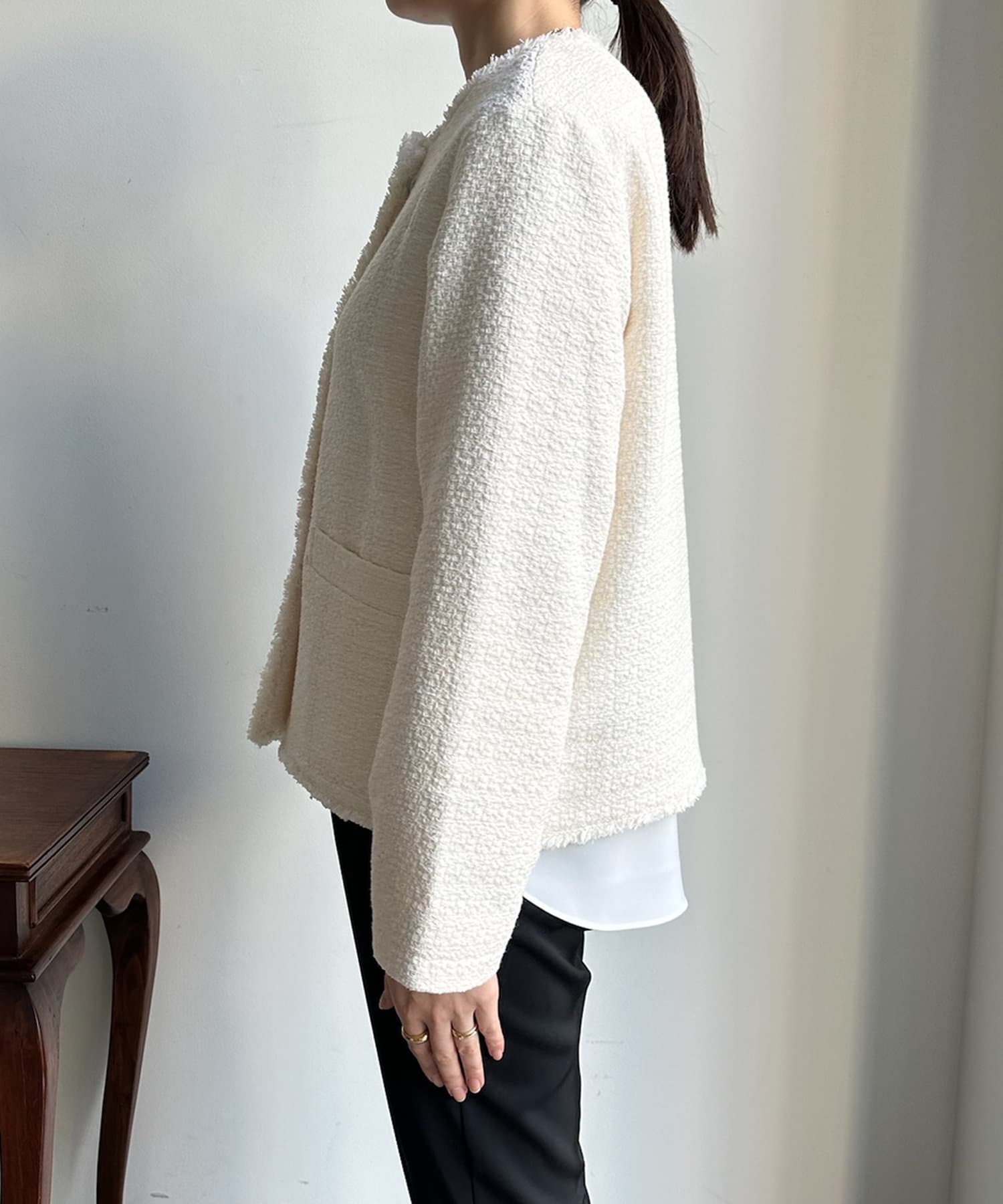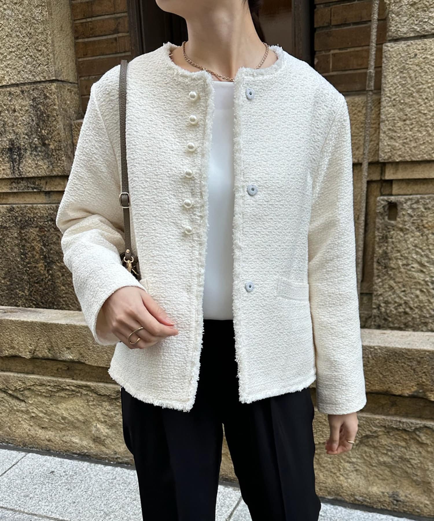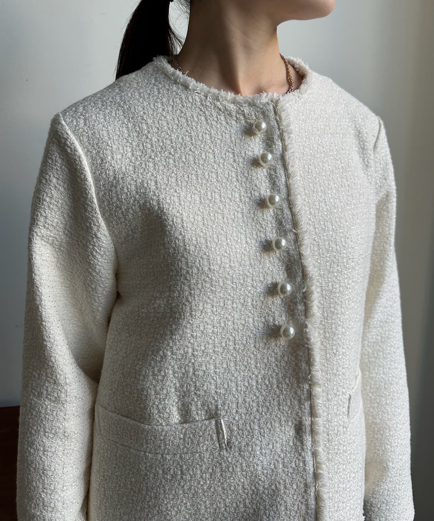 【オケージョン対応】【WEB限定】パールボタンコットンスラブツイードジャケット
