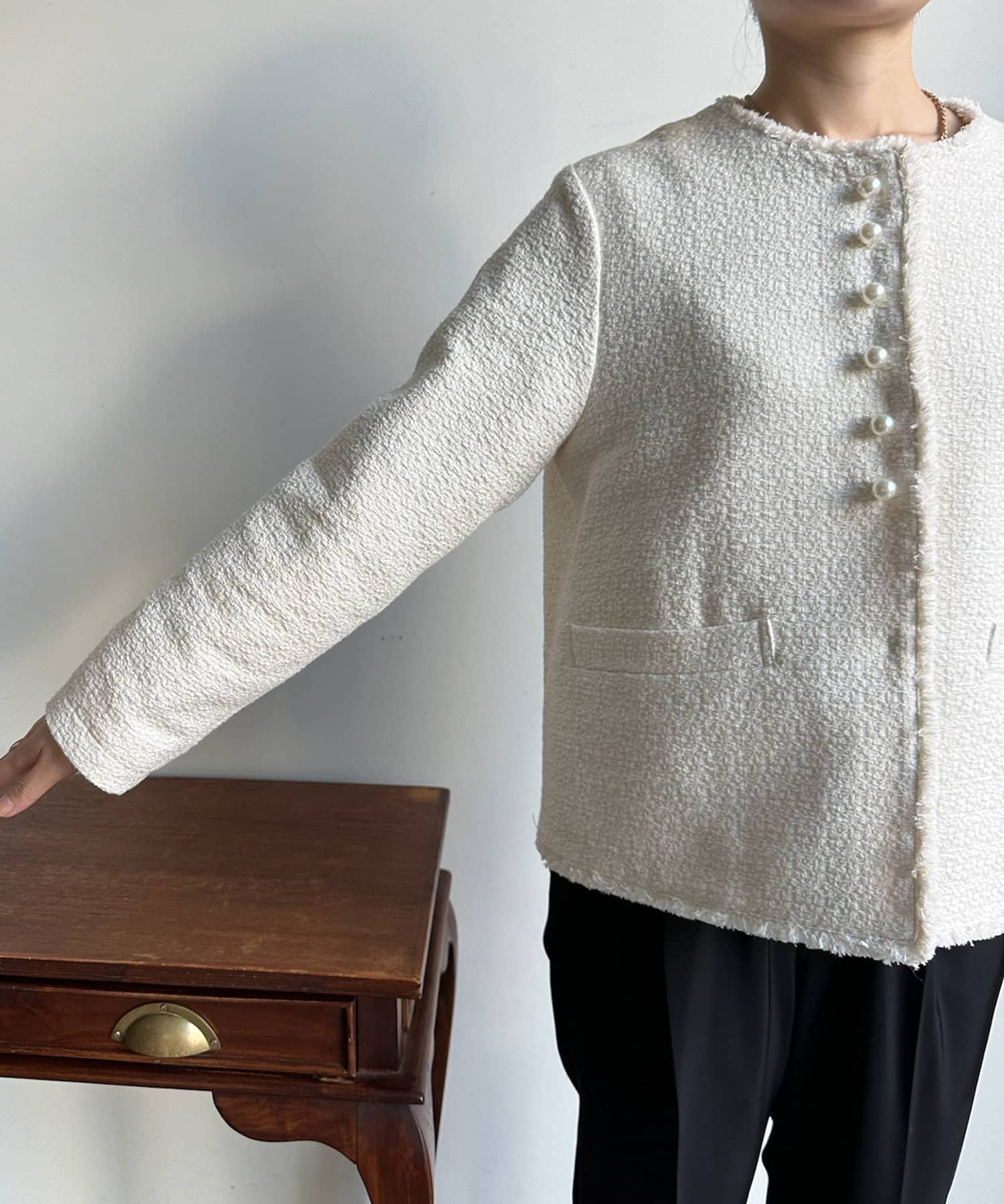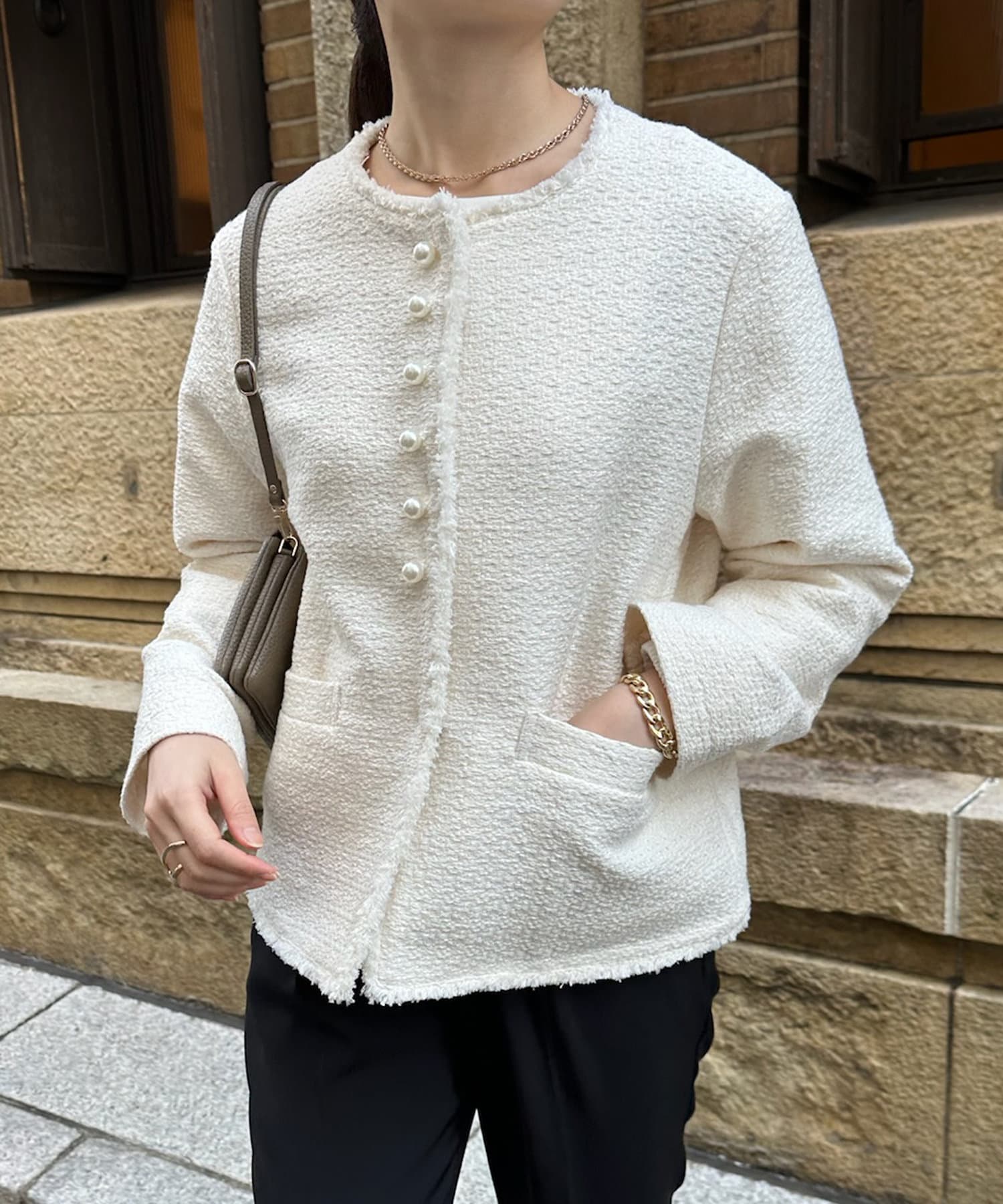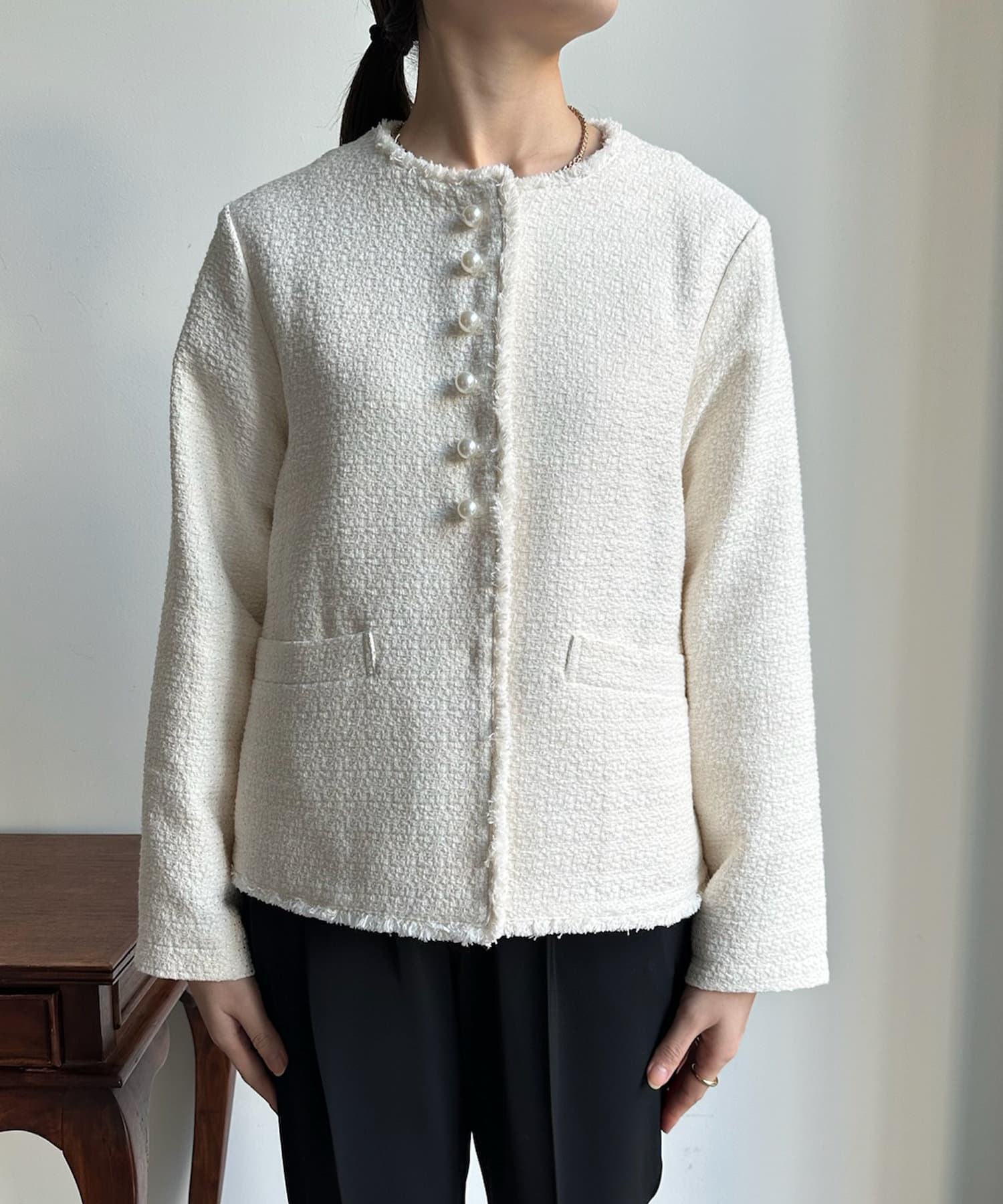 【オケージョン対応】【WEB限定】パールボタンコットンスラブツイードジャケット
