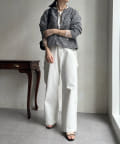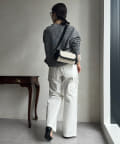 ボタンは、敢えてフラットなデザインのものを施しているため、決まりすぎない程よい抜け感を演出してくれます。
