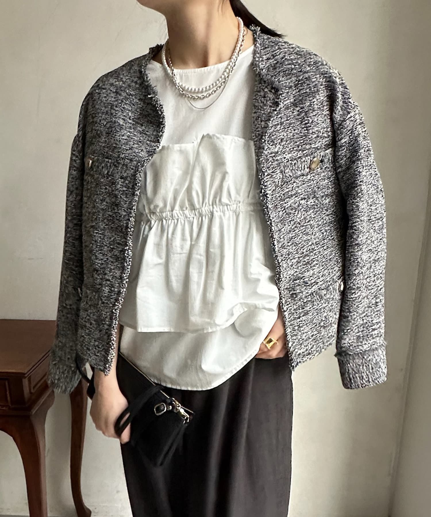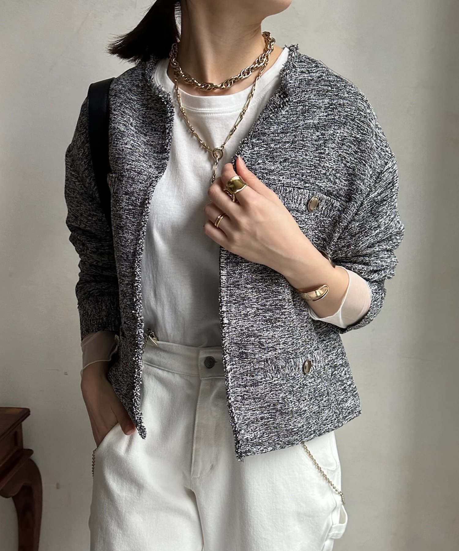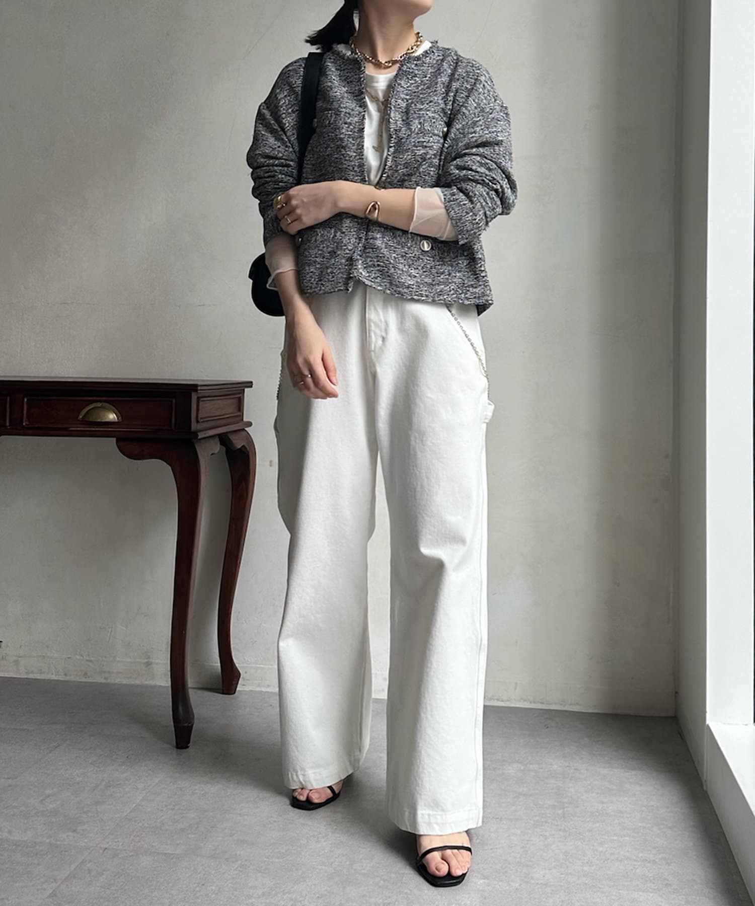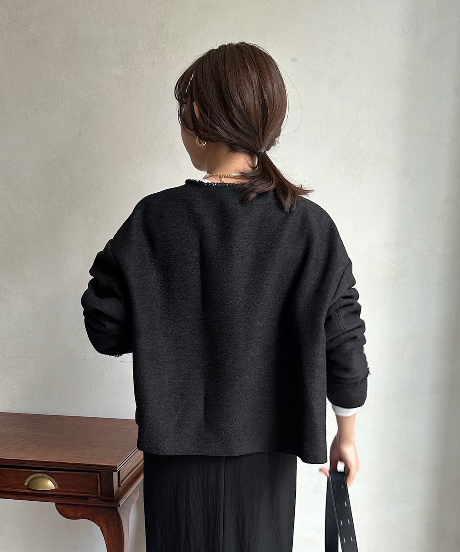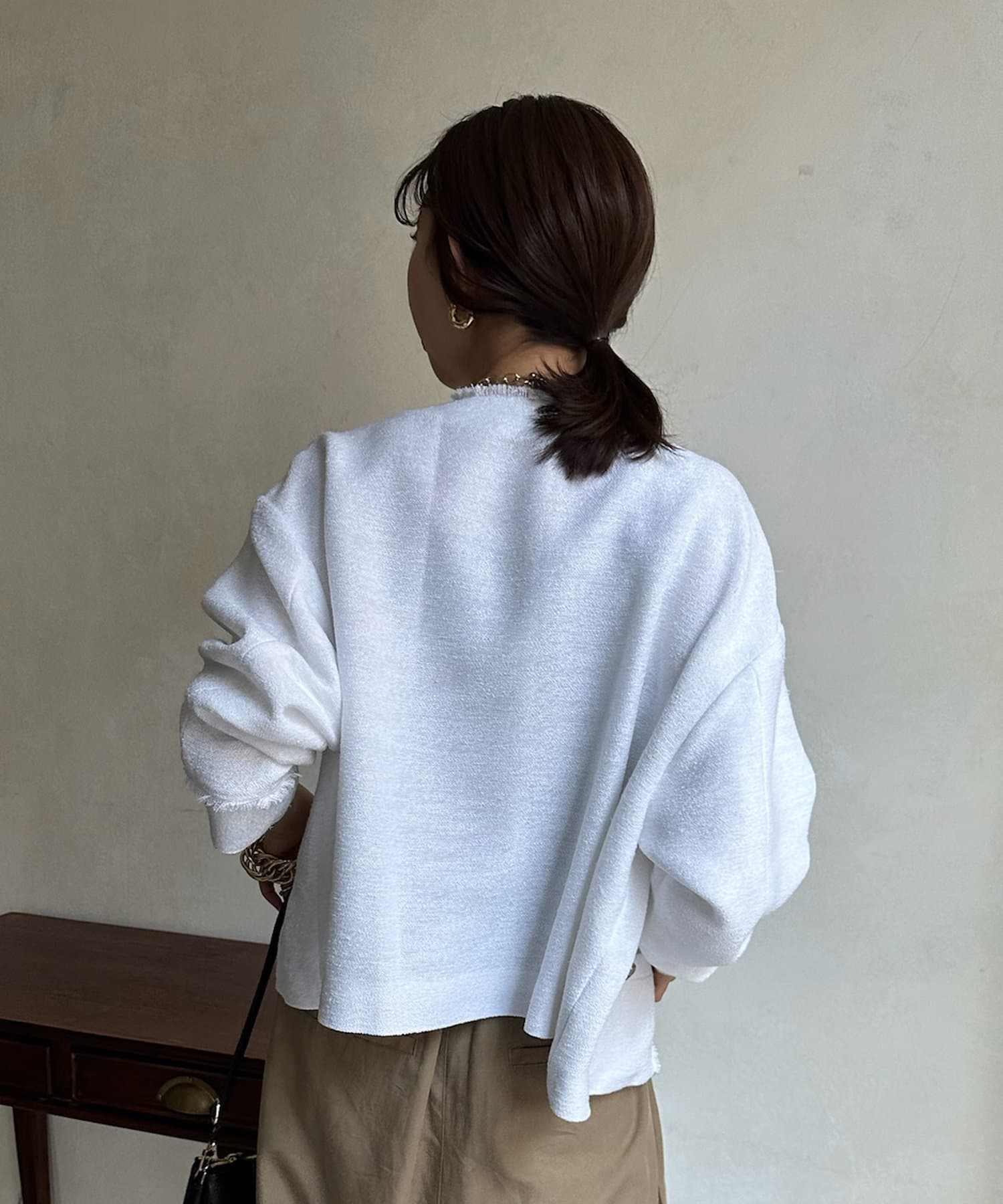 少し薄手の素材で仕上げ、カーディガンのように軽くさっと羽織れる1着。