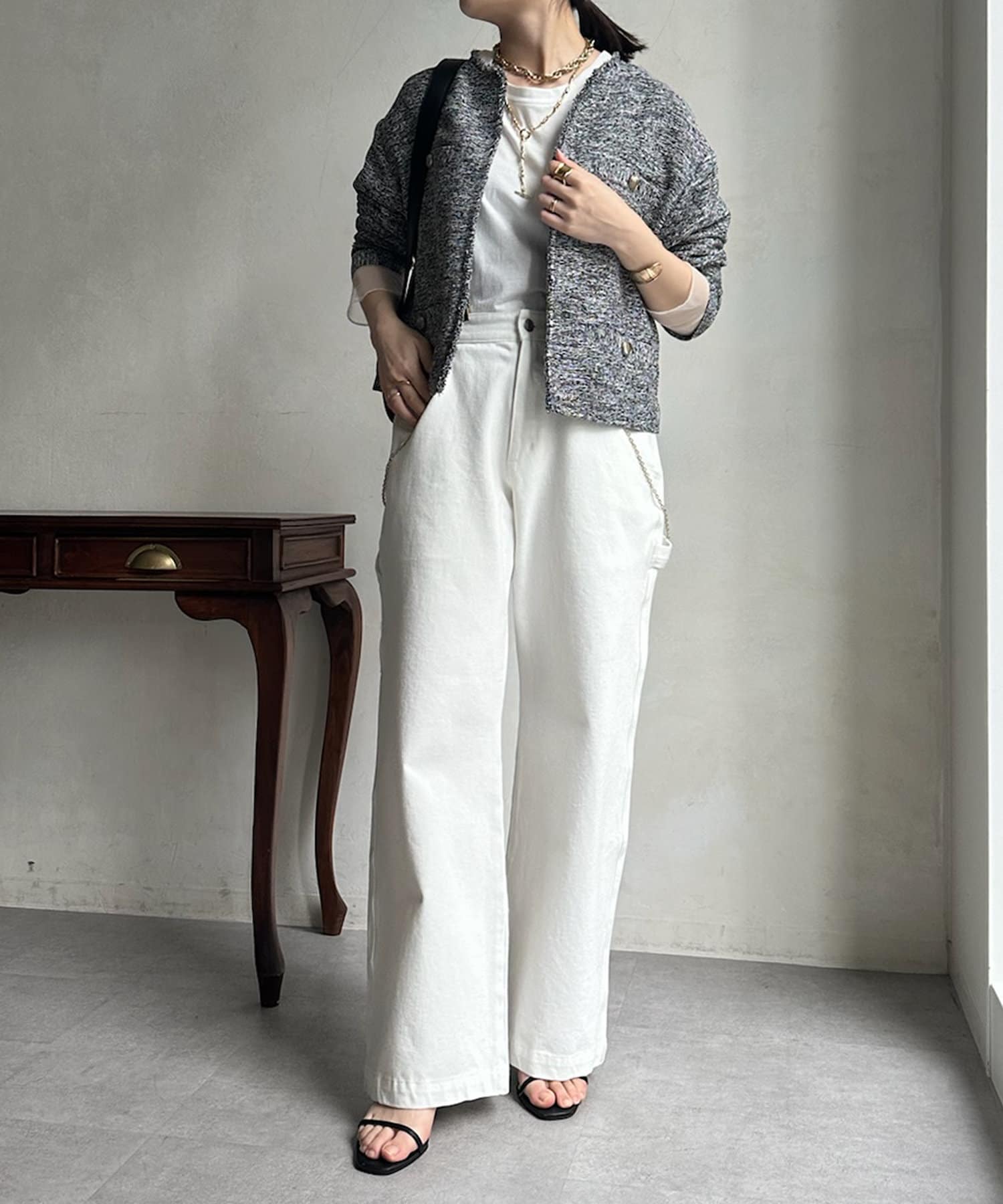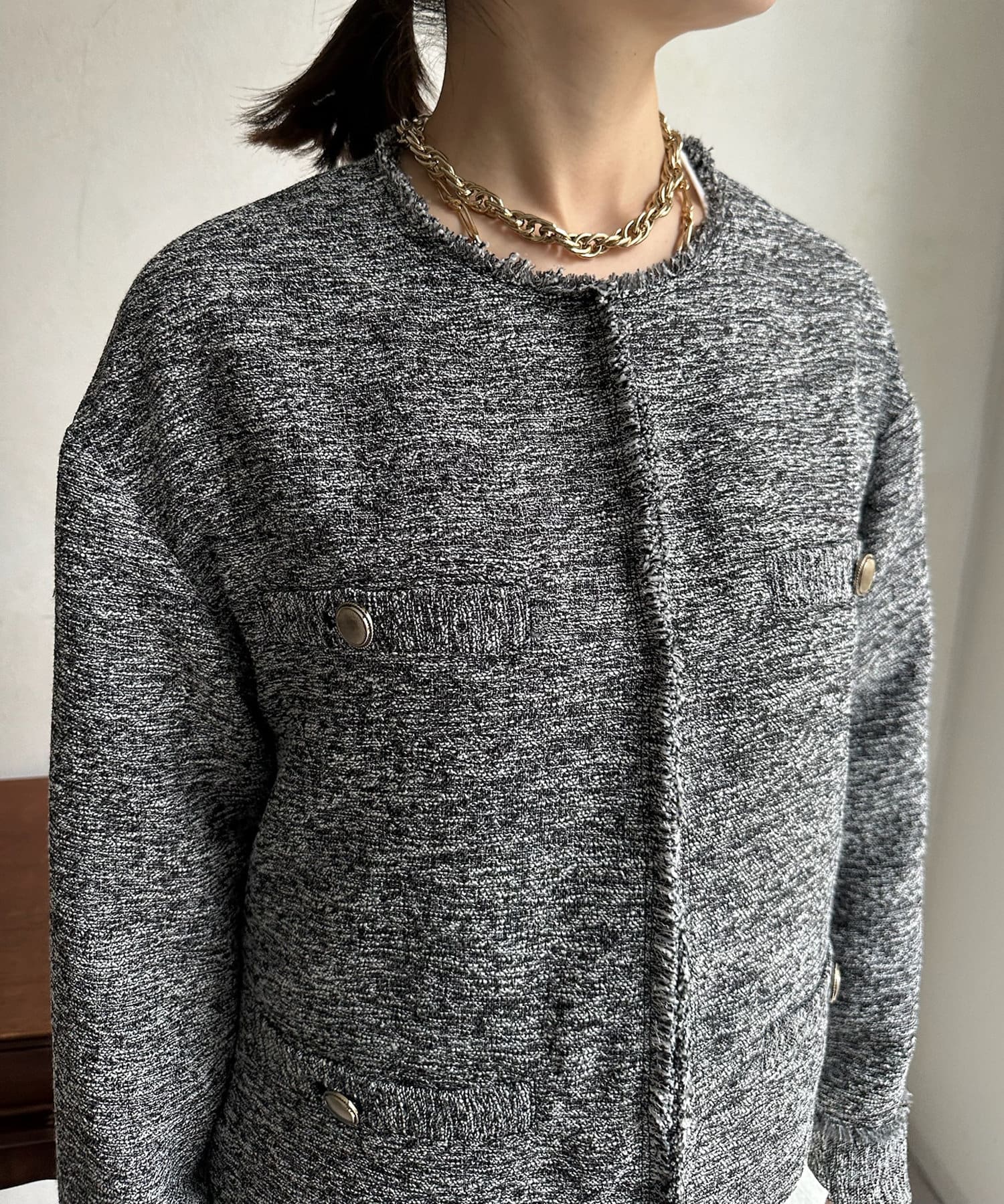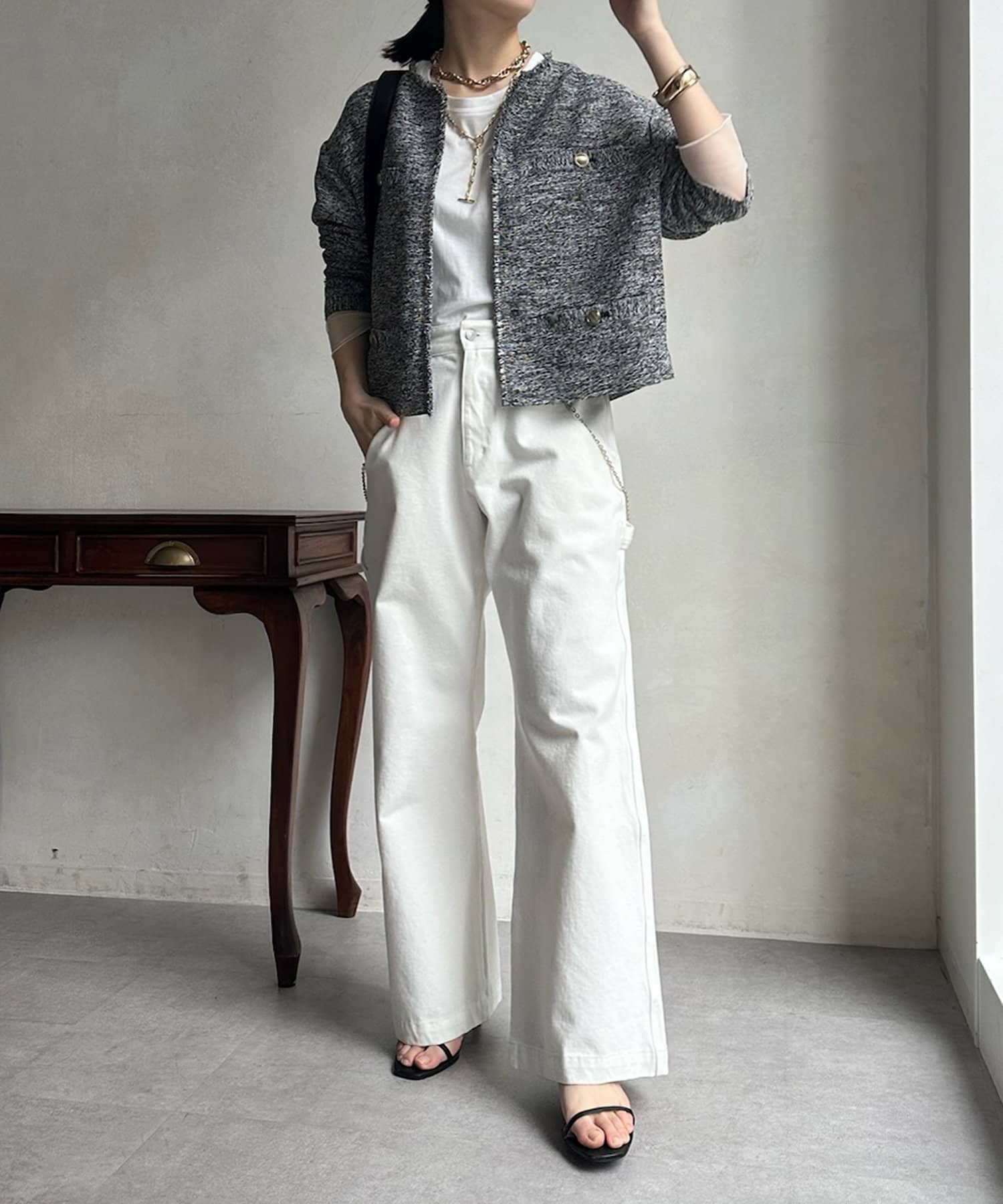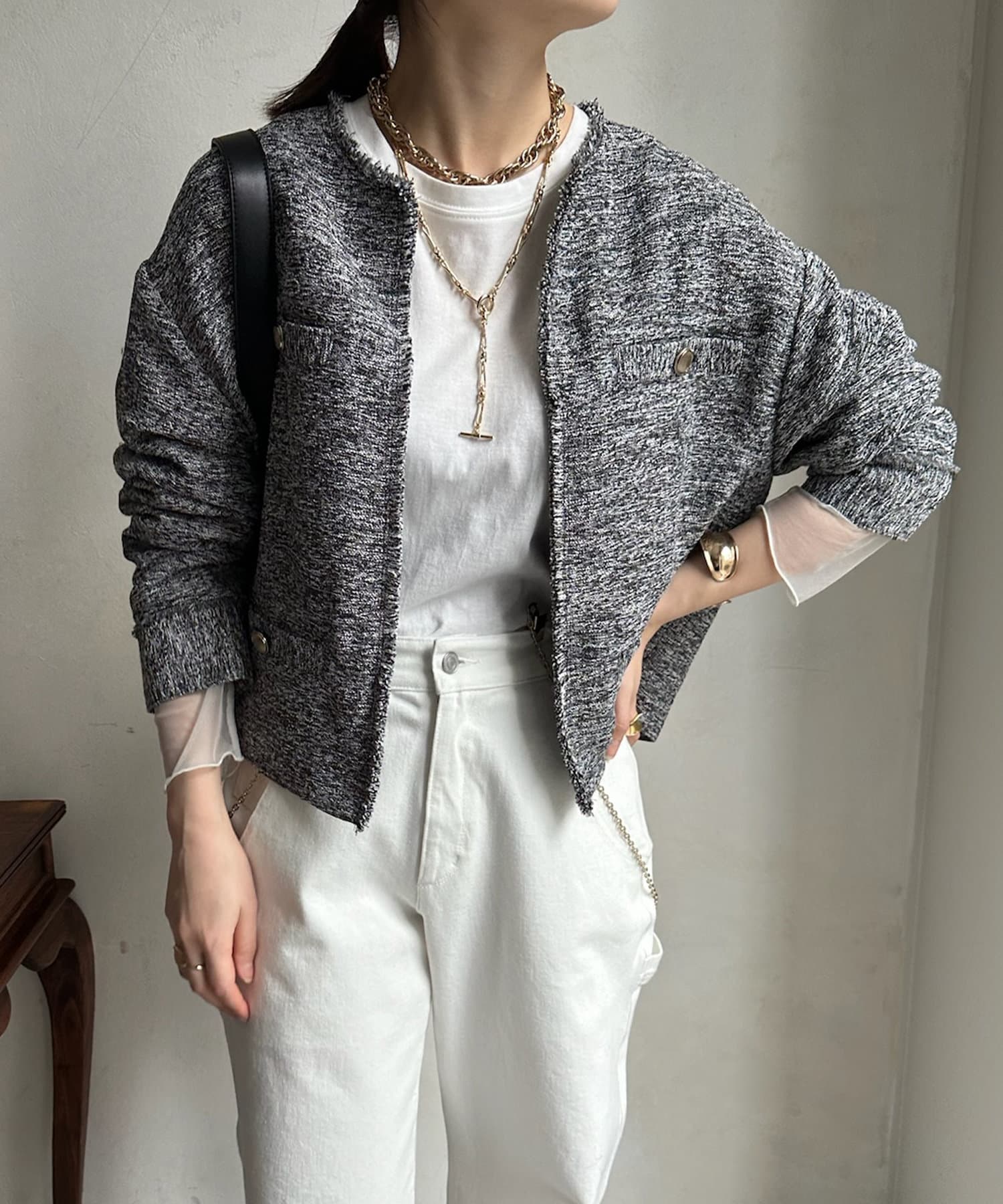 少し薄手の素材で仕上げ、カーディガンのように軽くさっと羽織れる1着。
