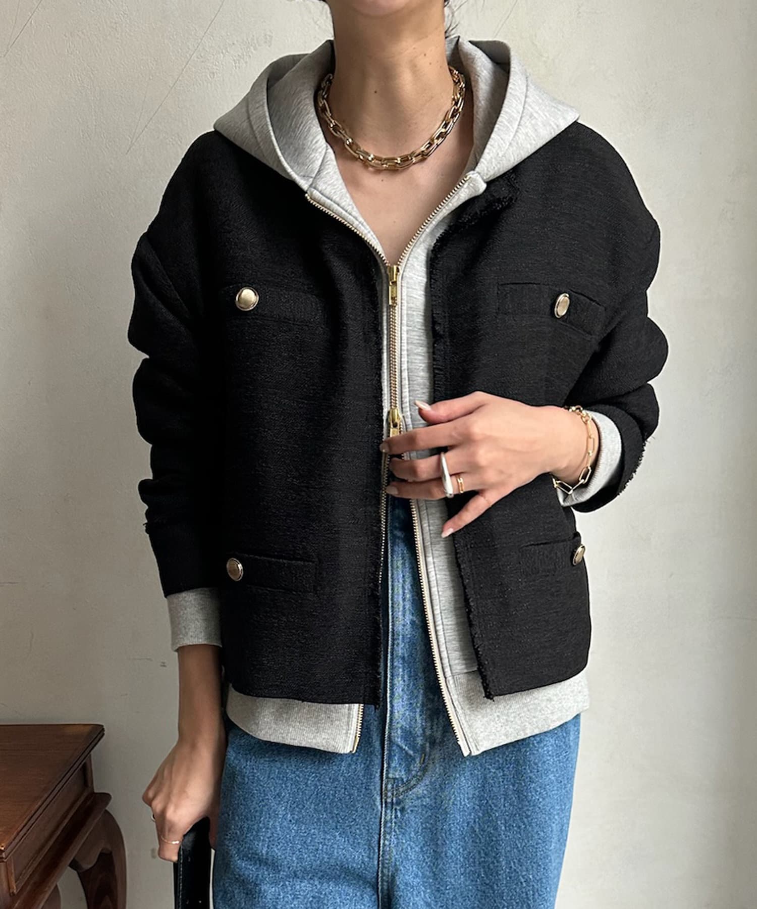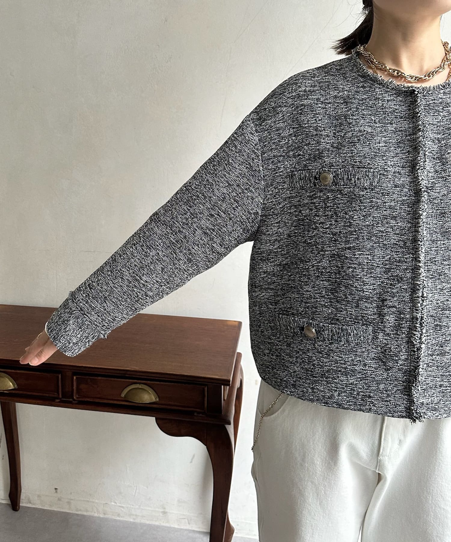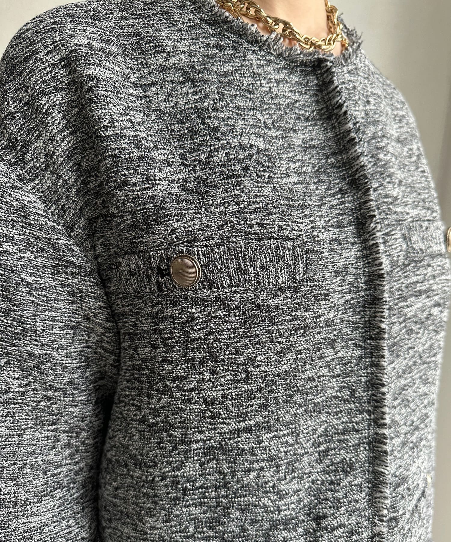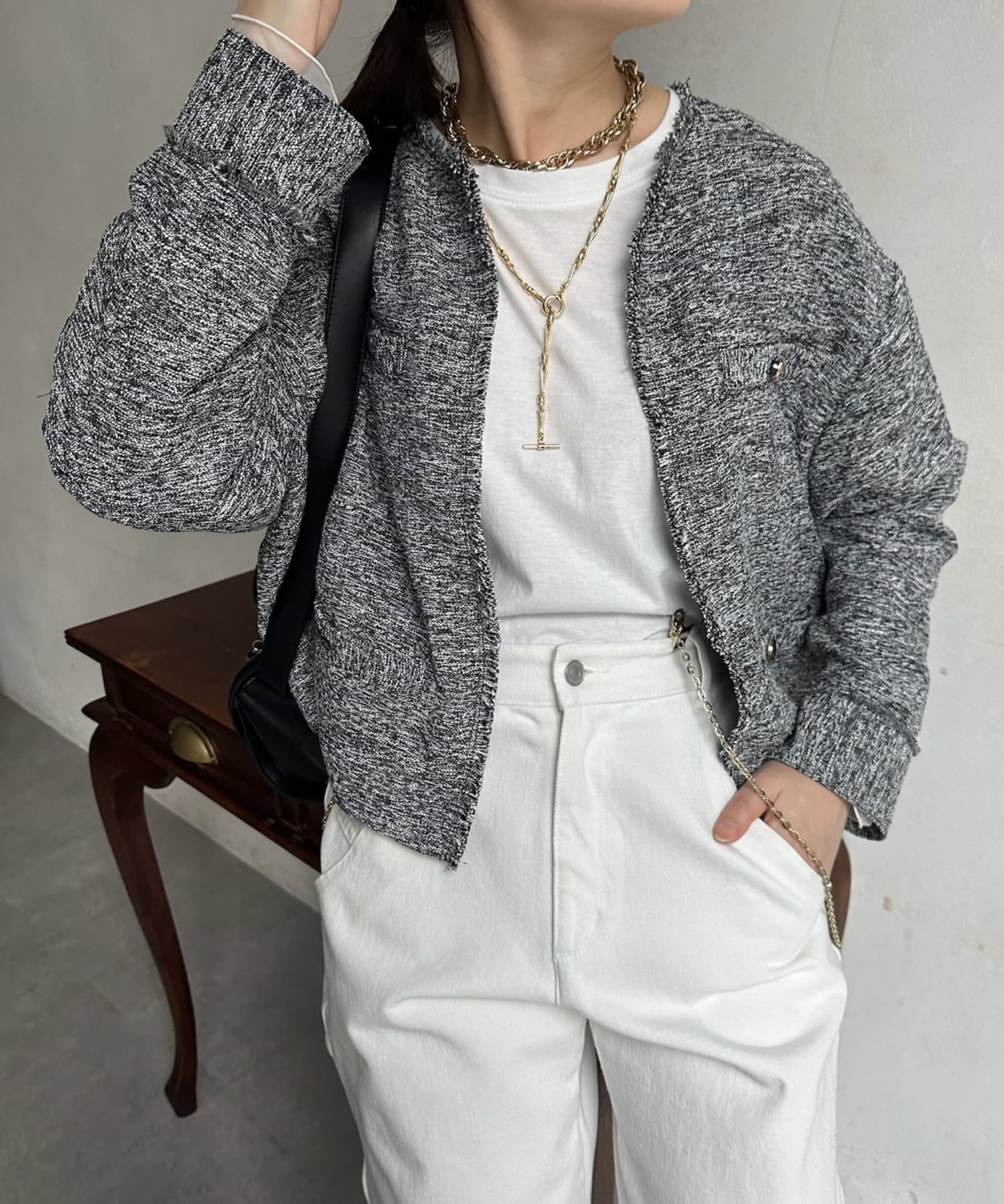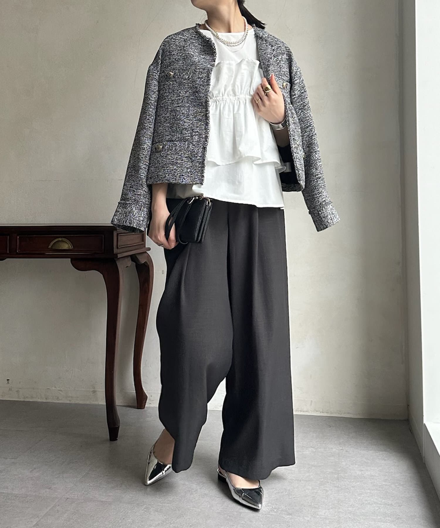 少し薄手の素材で仕上げ、カーディガンのように軽くさっと羽織れる1着。