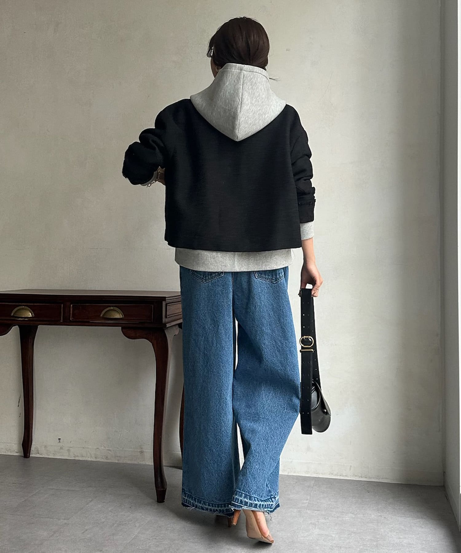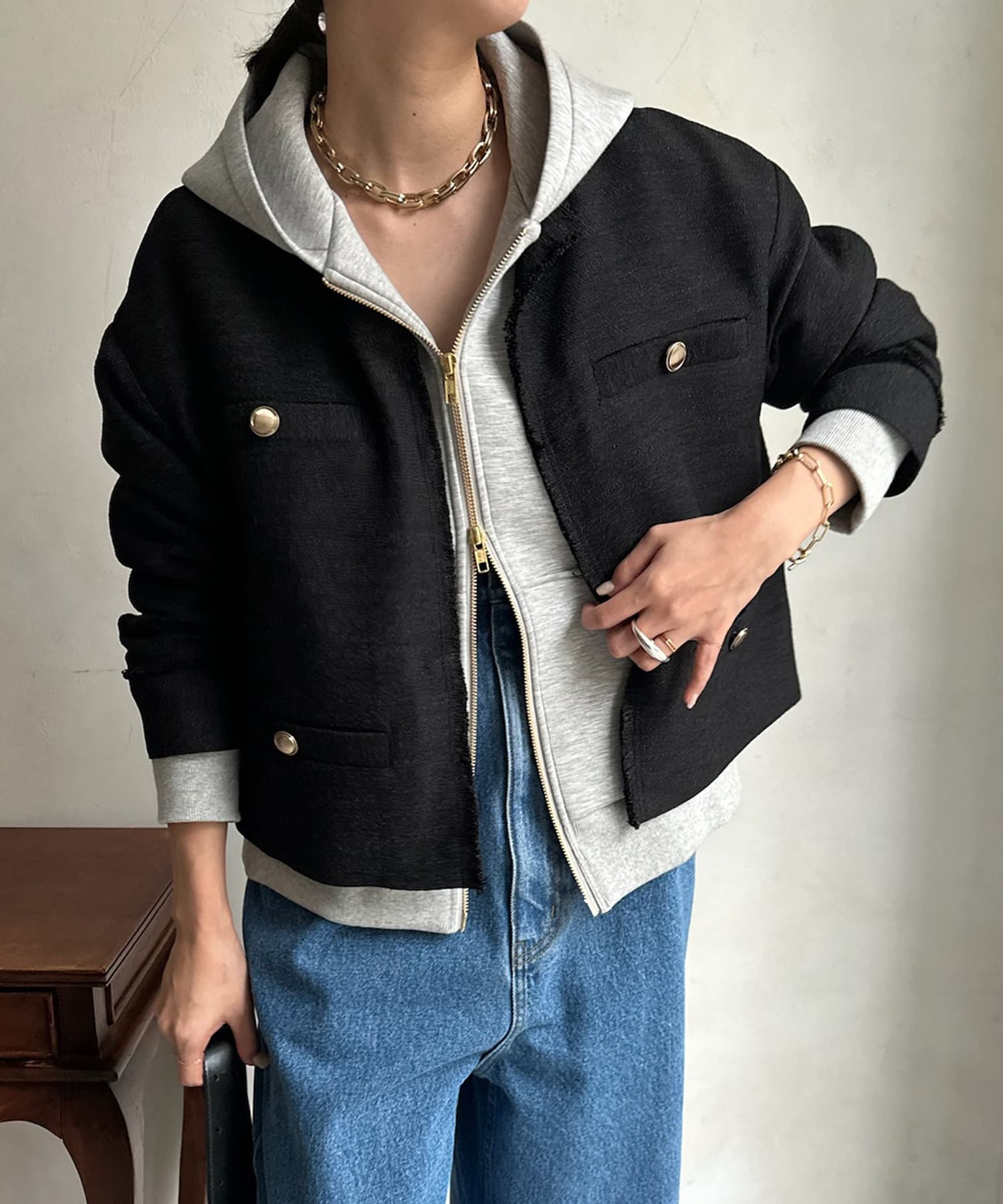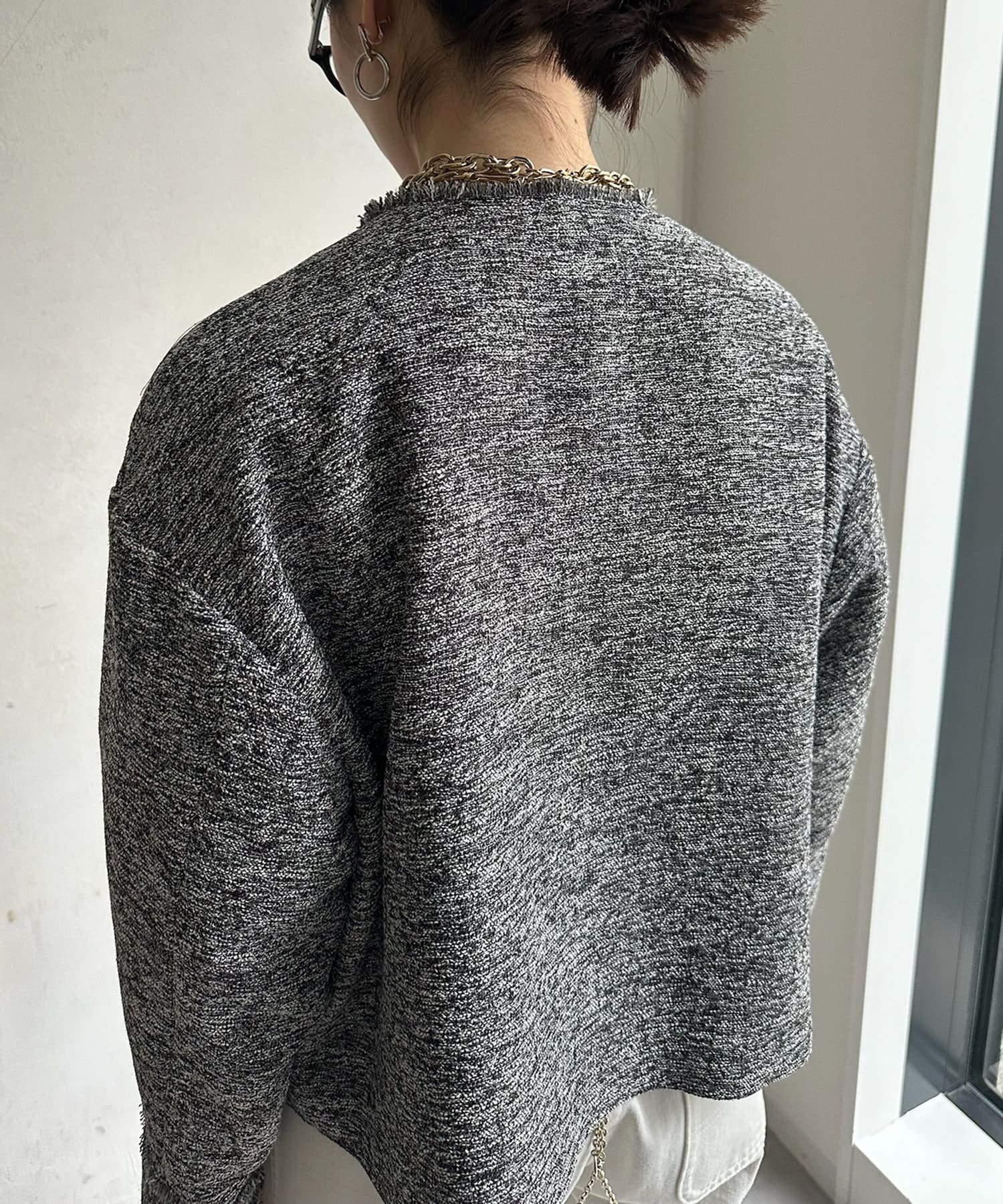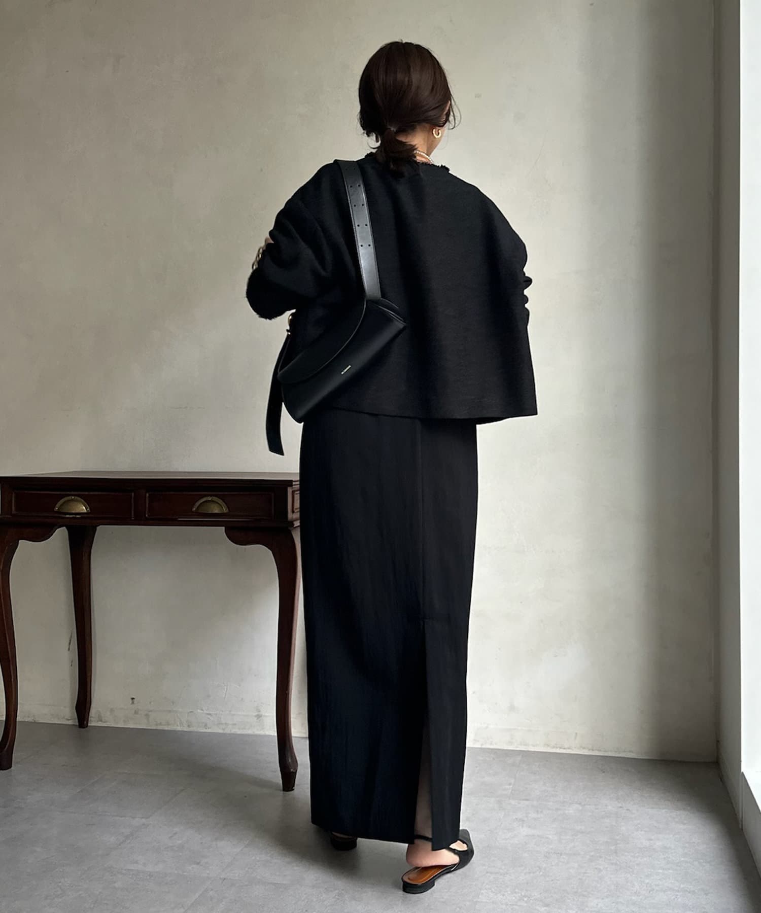 少し薄手の素材で仕上げ、カーディガンのように軽くさっと羽織れる1着。