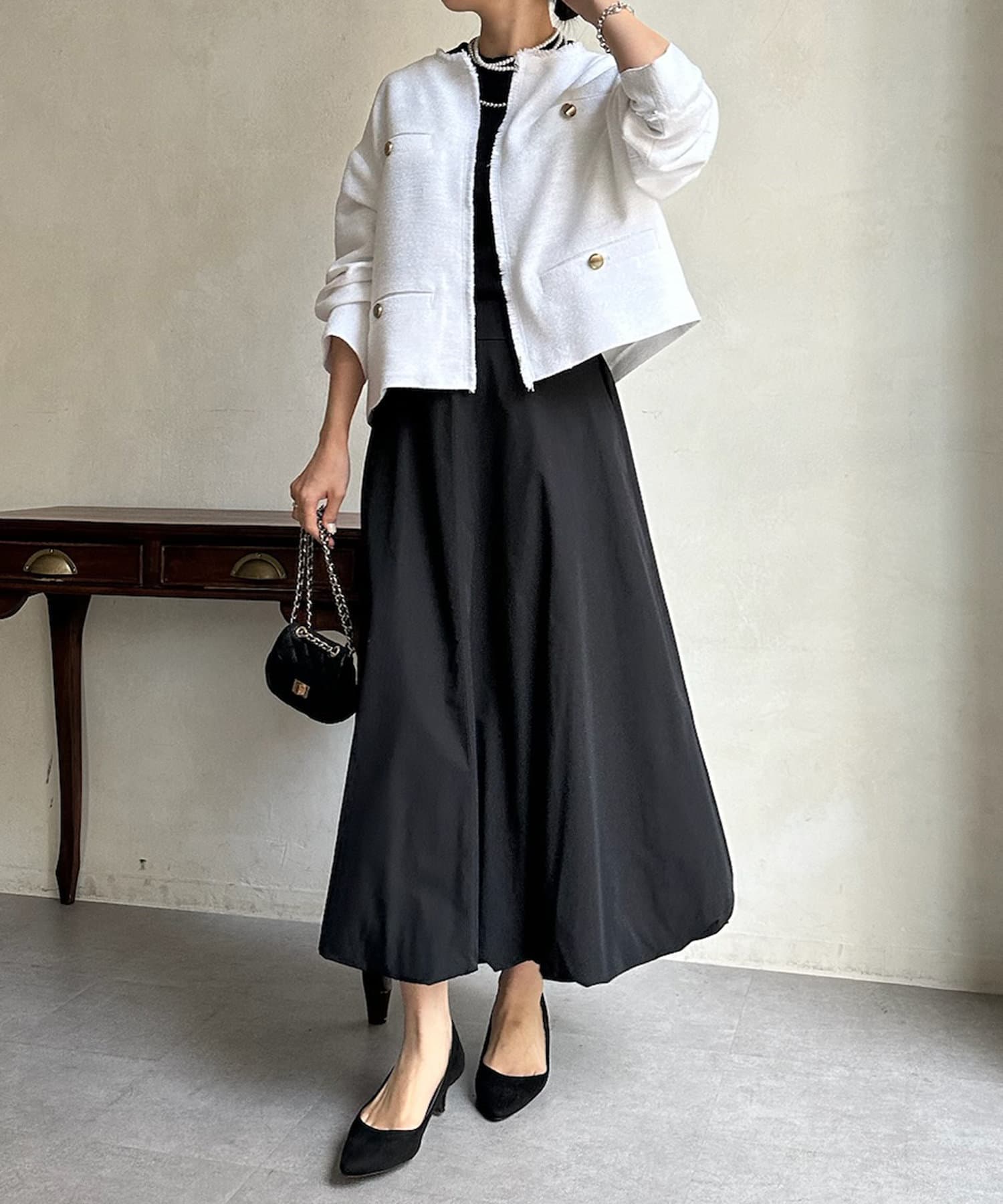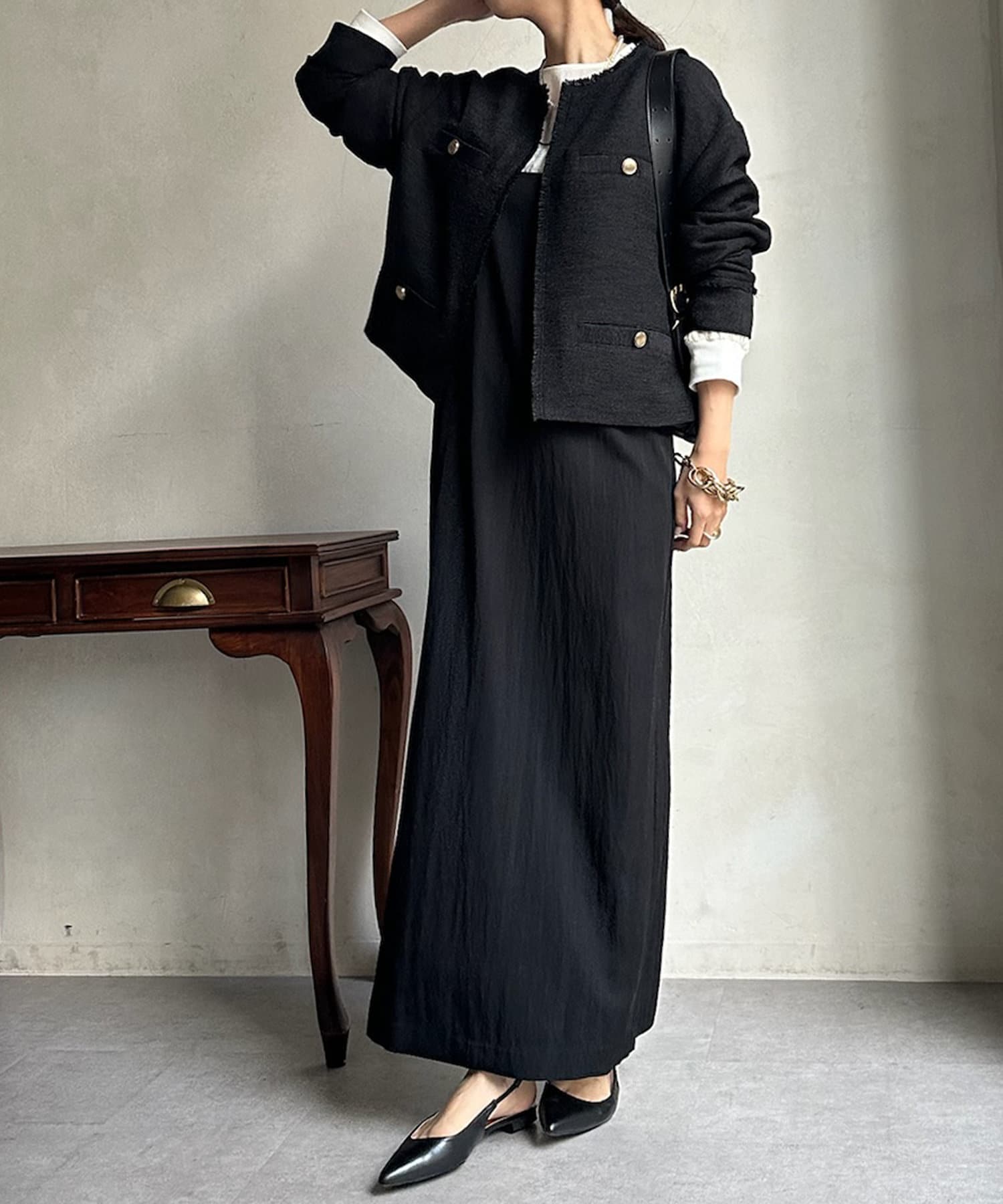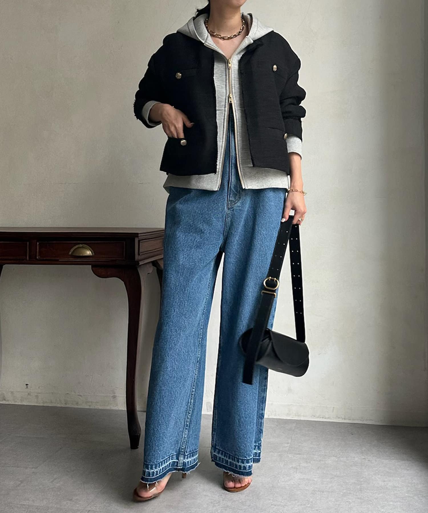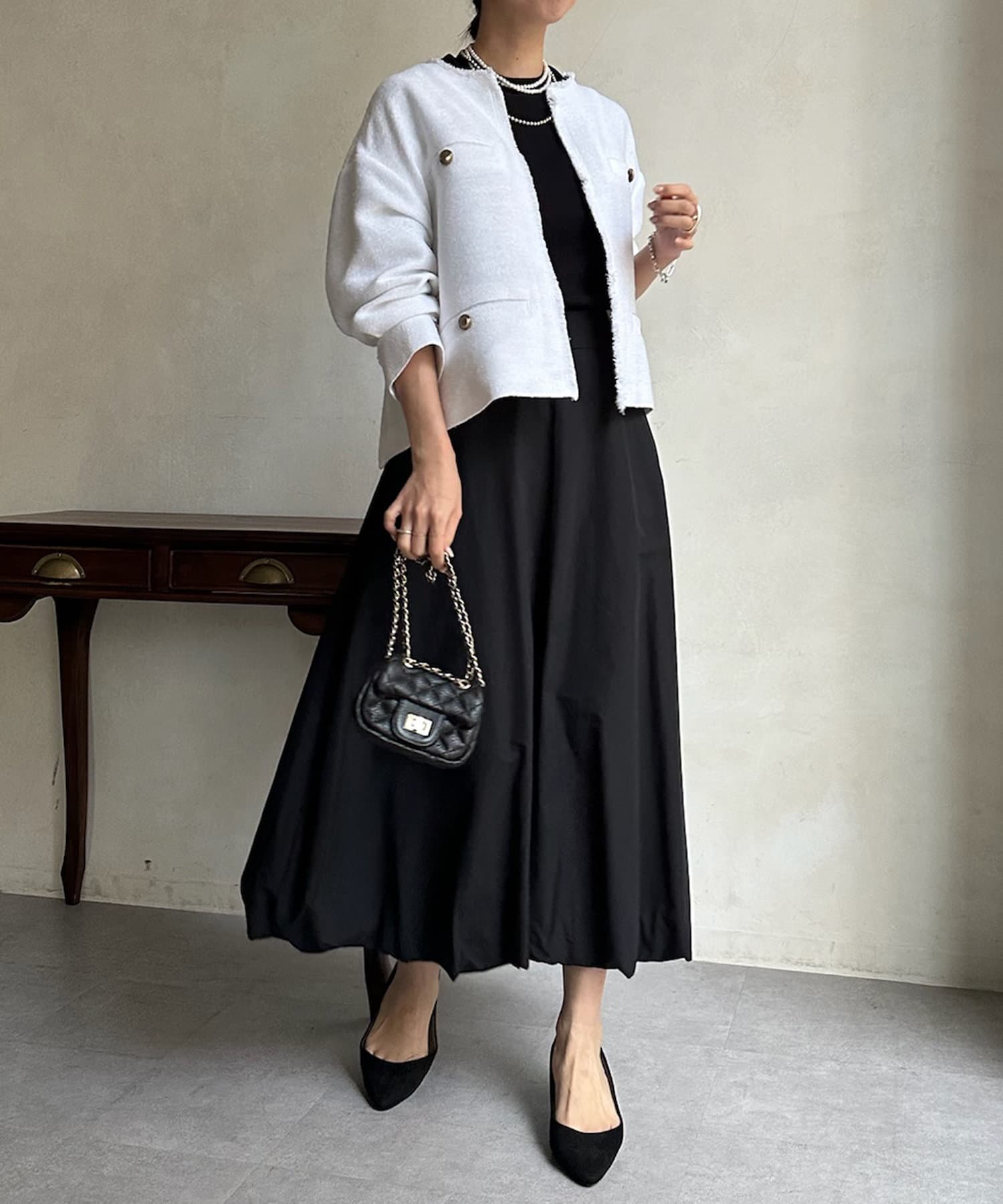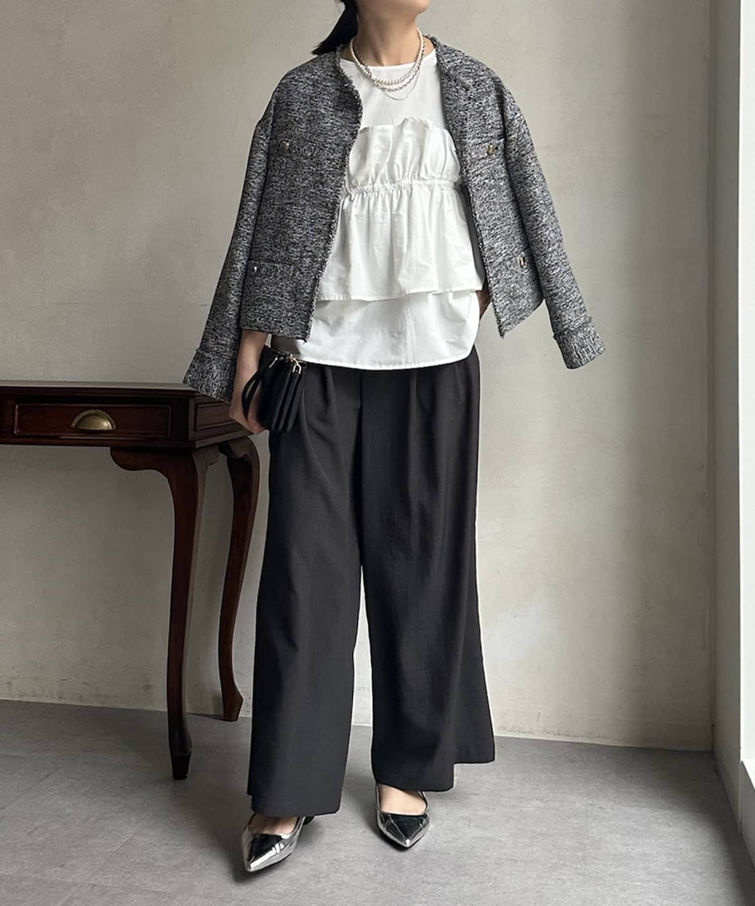 少し薄手の素材で仕上げ、カーディガンのように軽くさっと羽織れる1着。