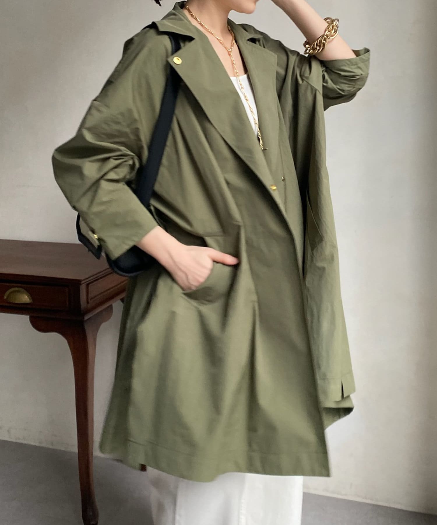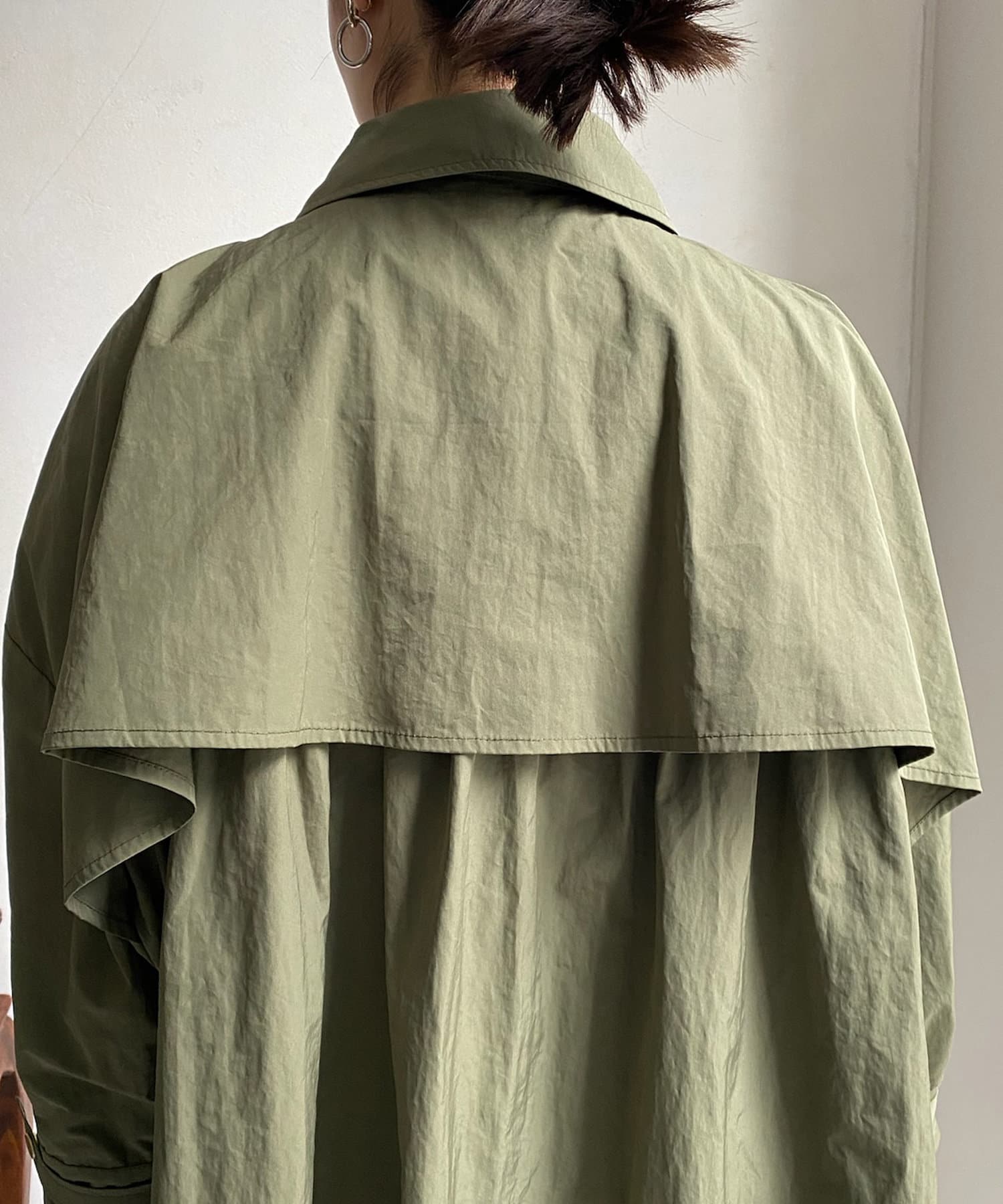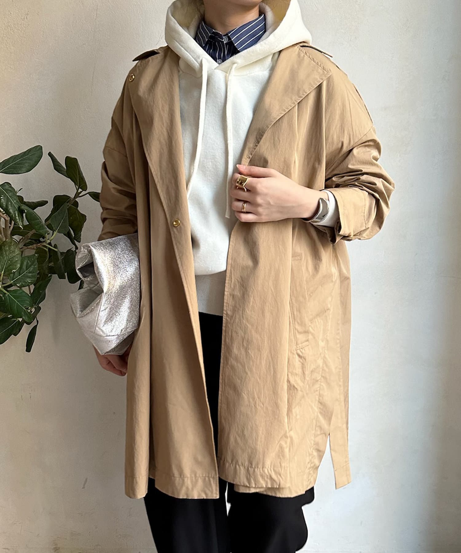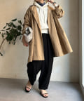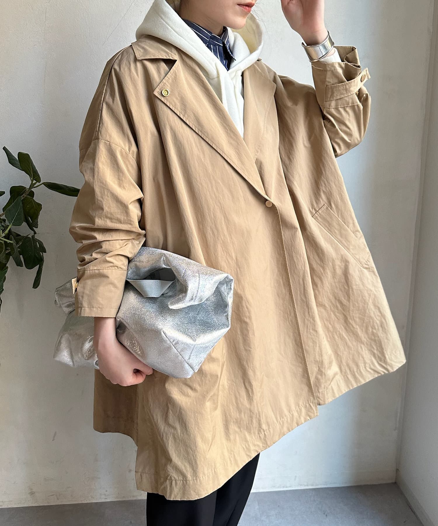 ゆったりと余裕感のあるポンチョのようなシルエットで、楽に着られる軽コートです。