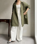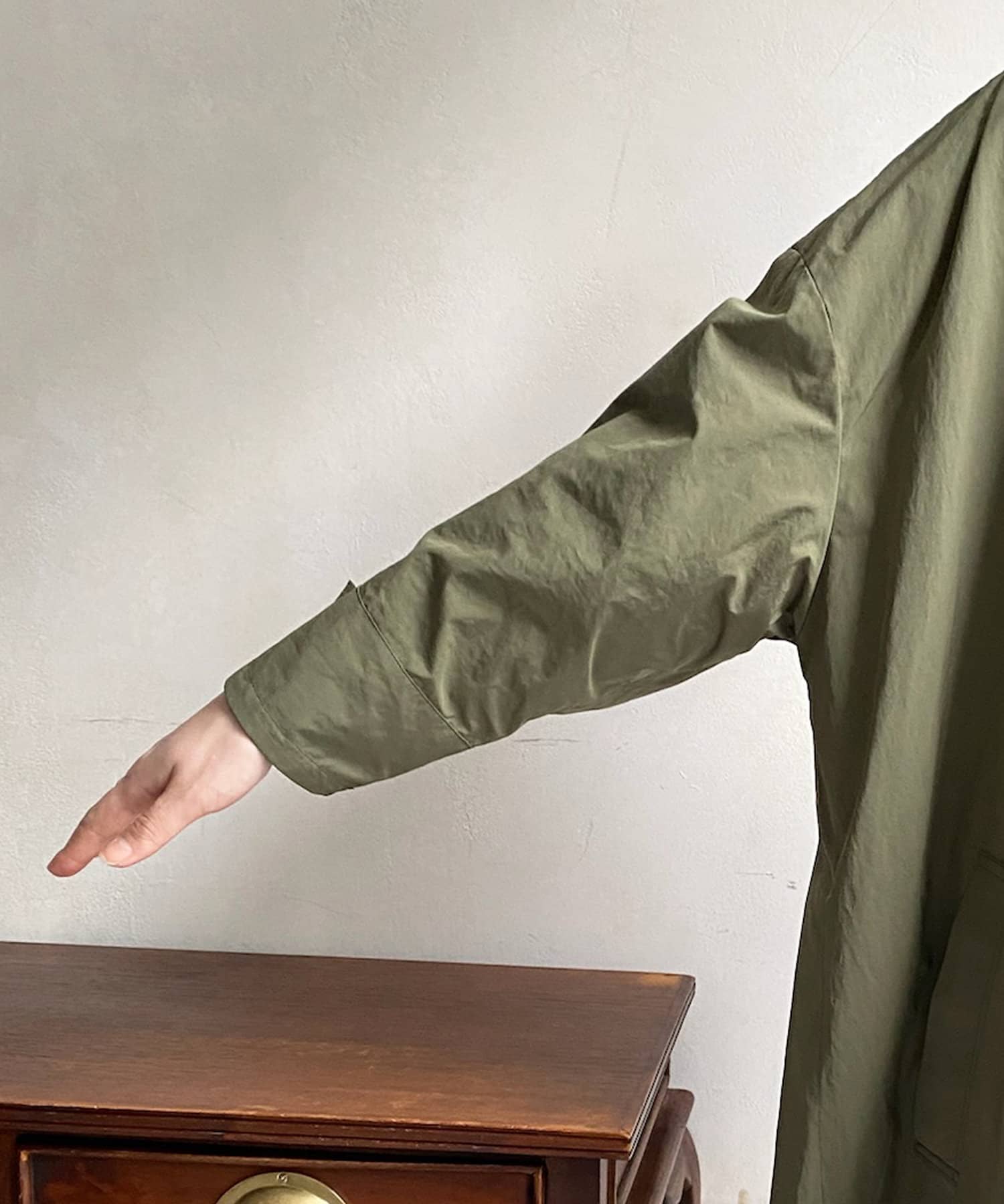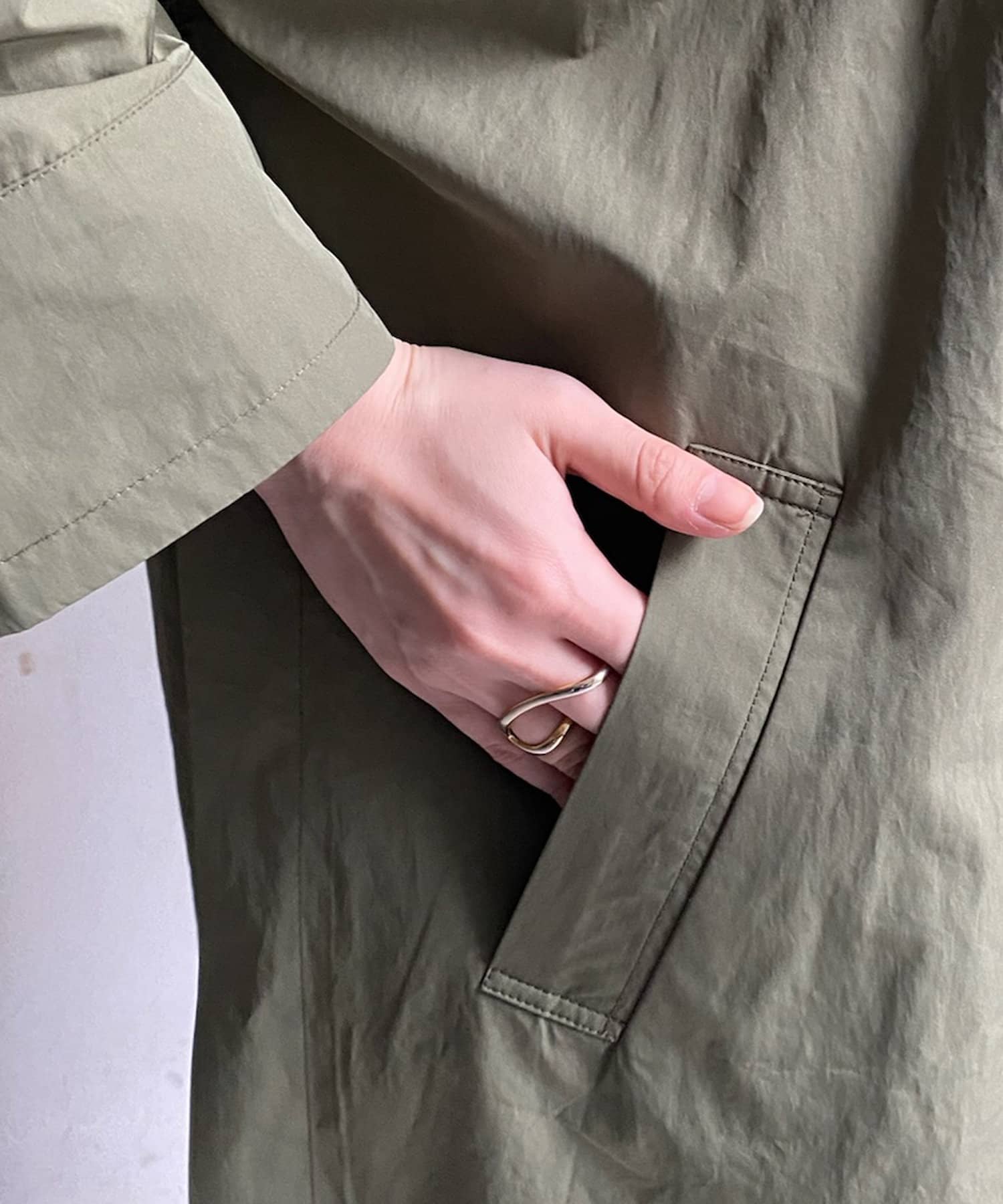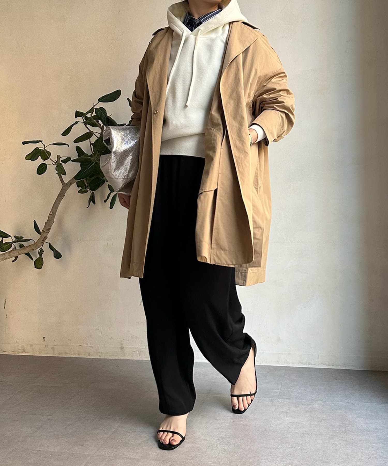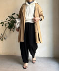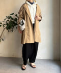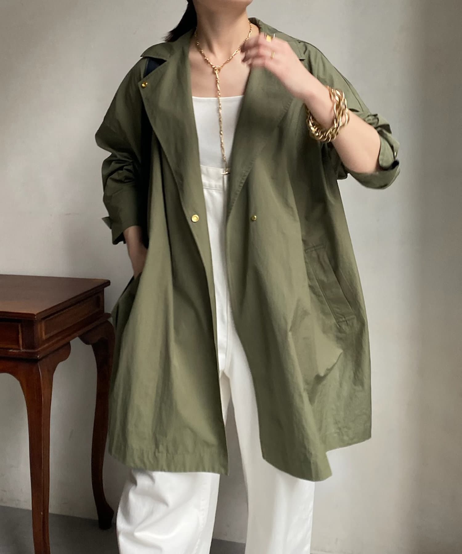 ゆったりと余裕感のあるポンチョのようなシルエットで、楽に着られる軽コートです。