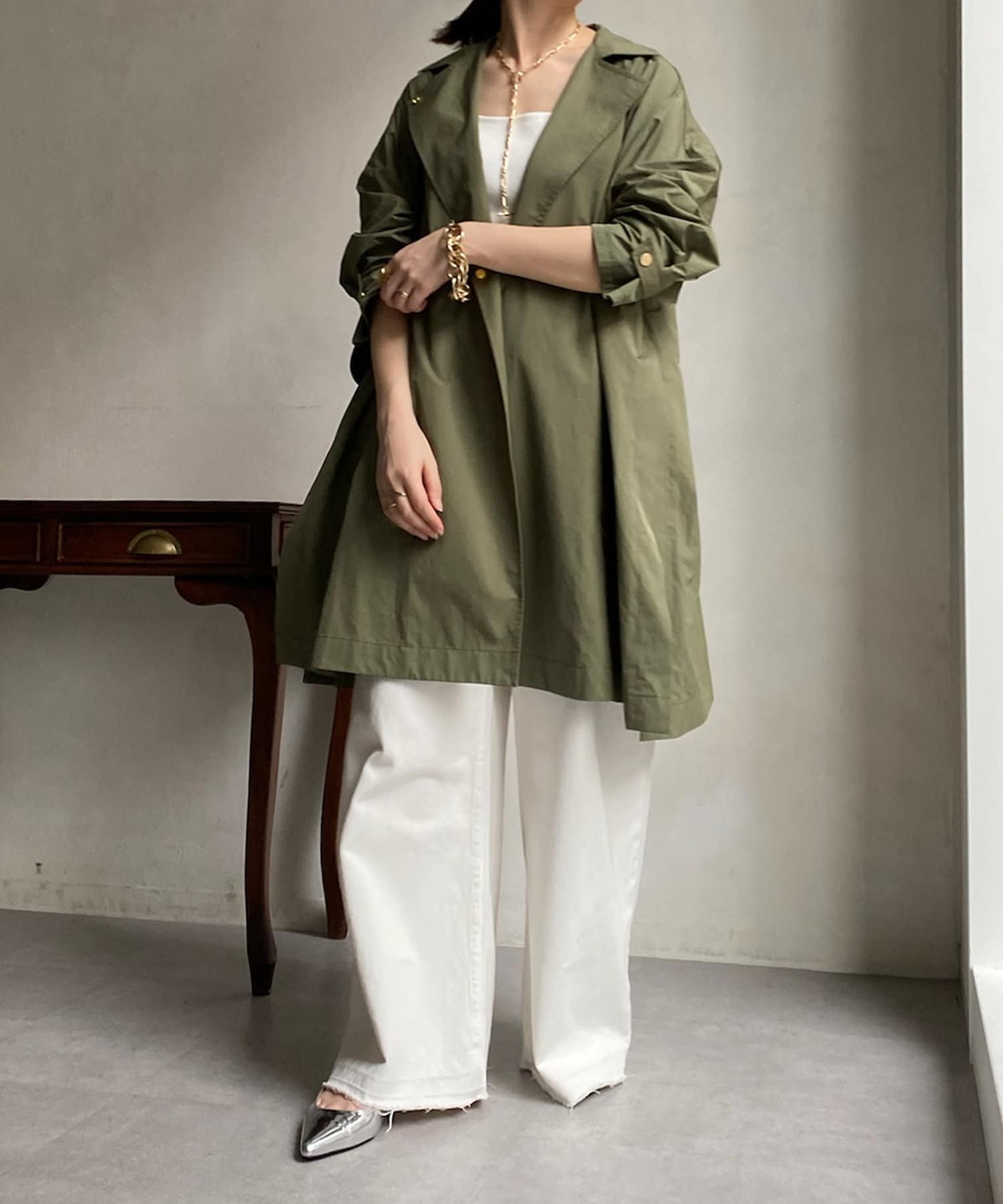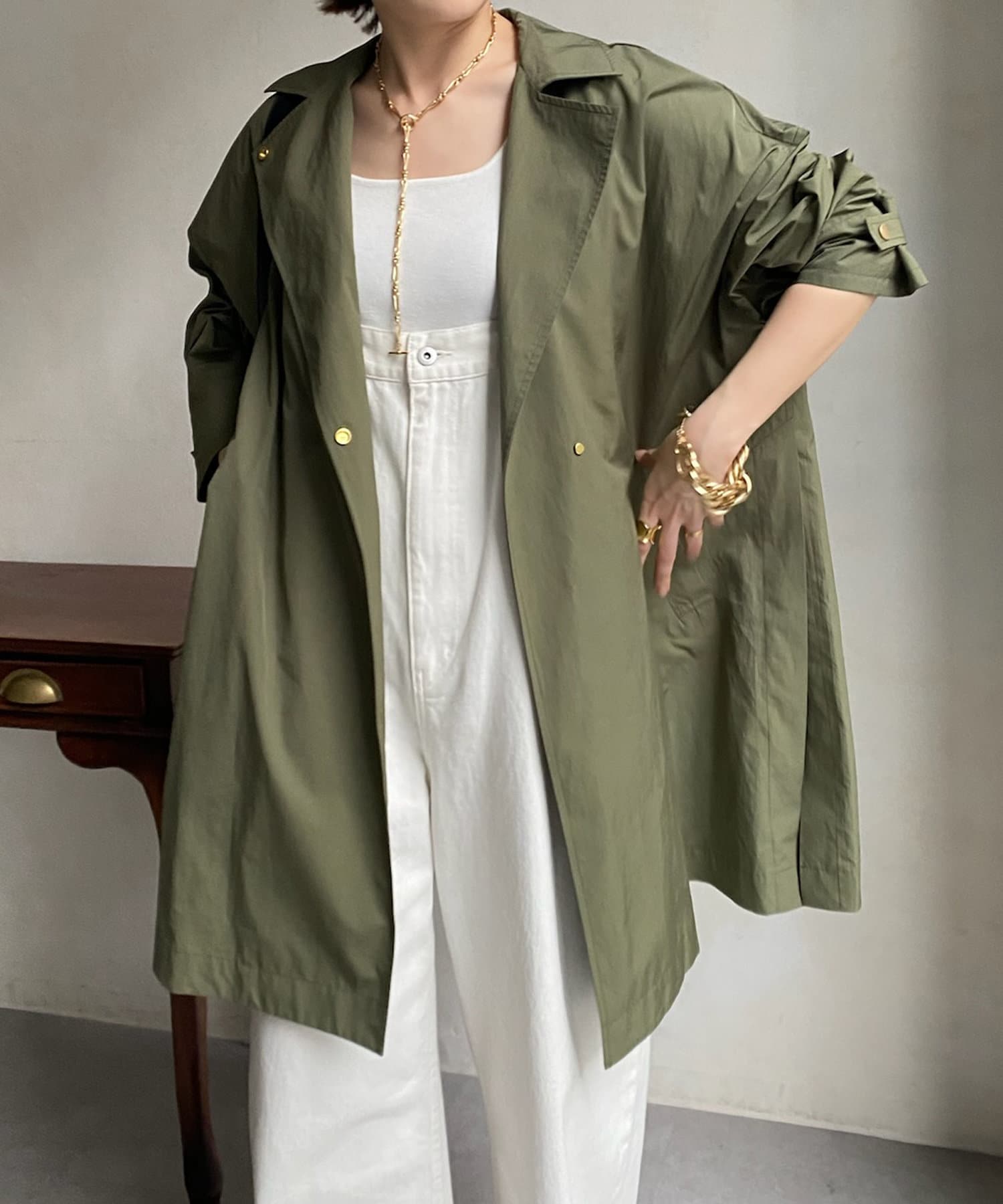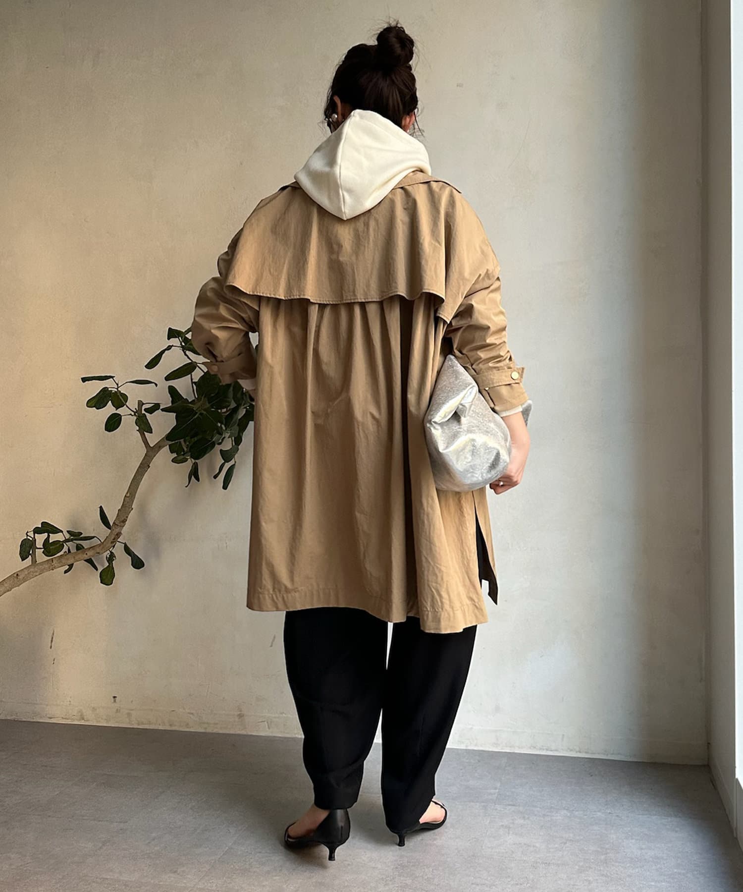 トレンチコートのシルエットをベースにアレンジしたデザイン。