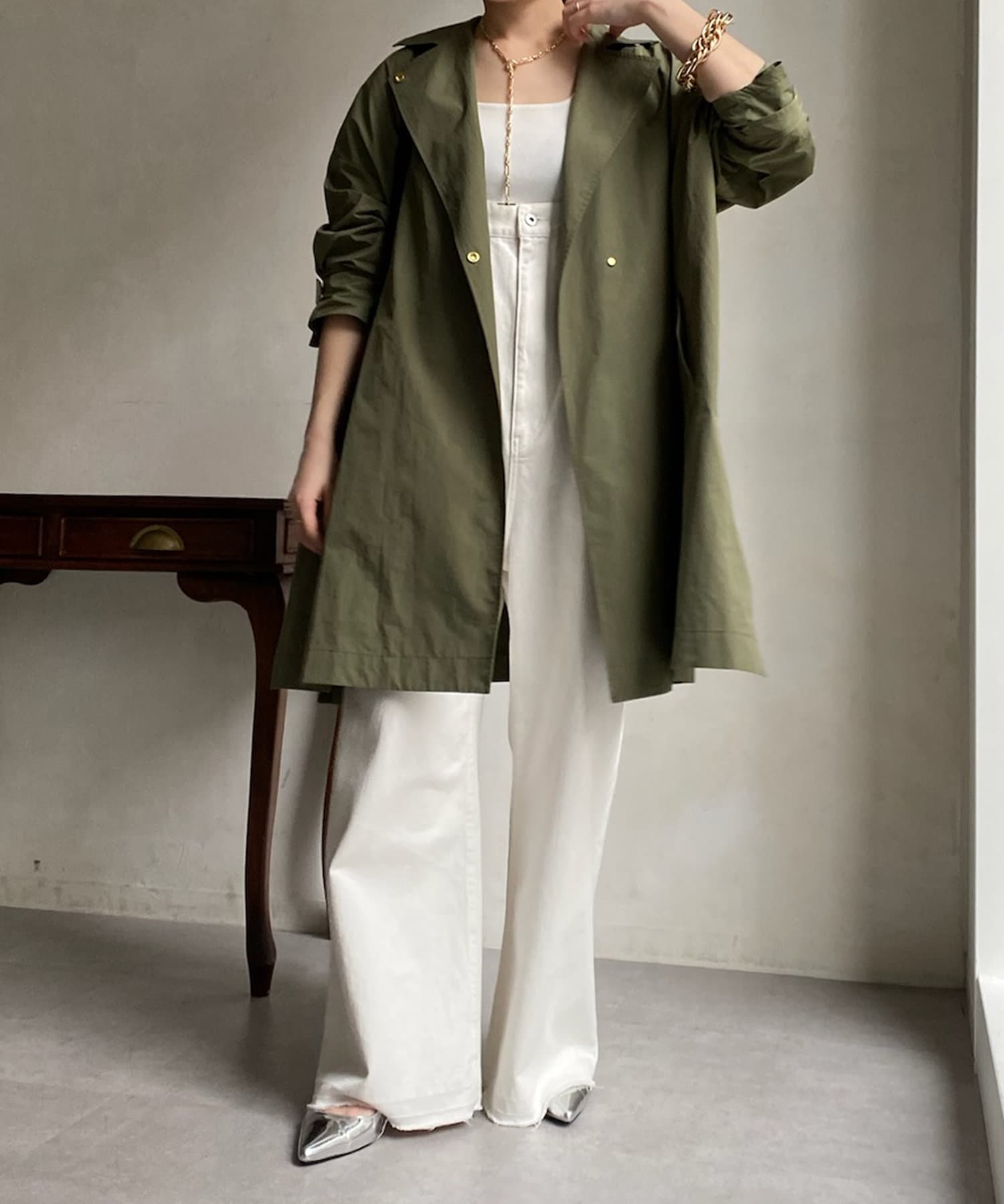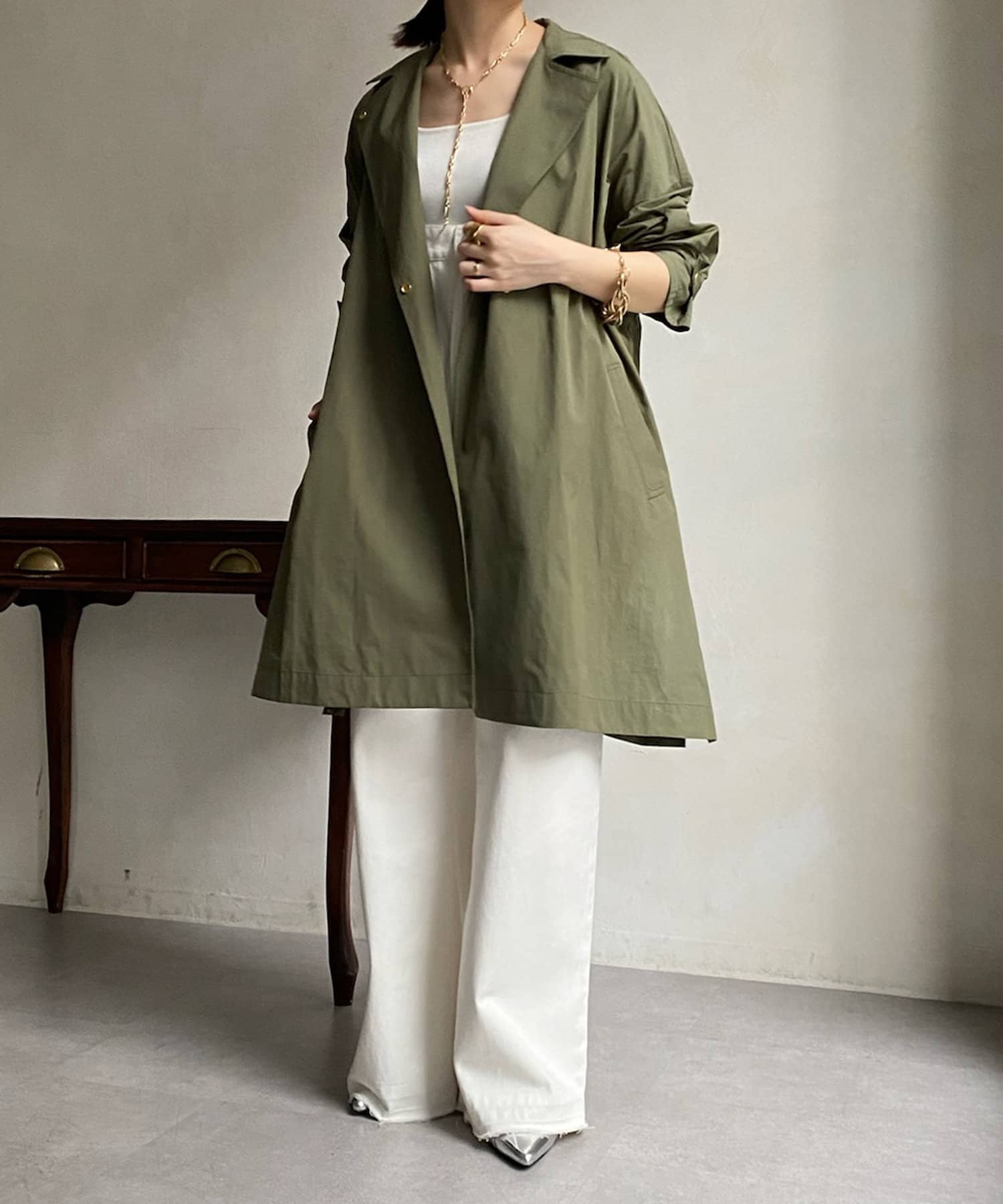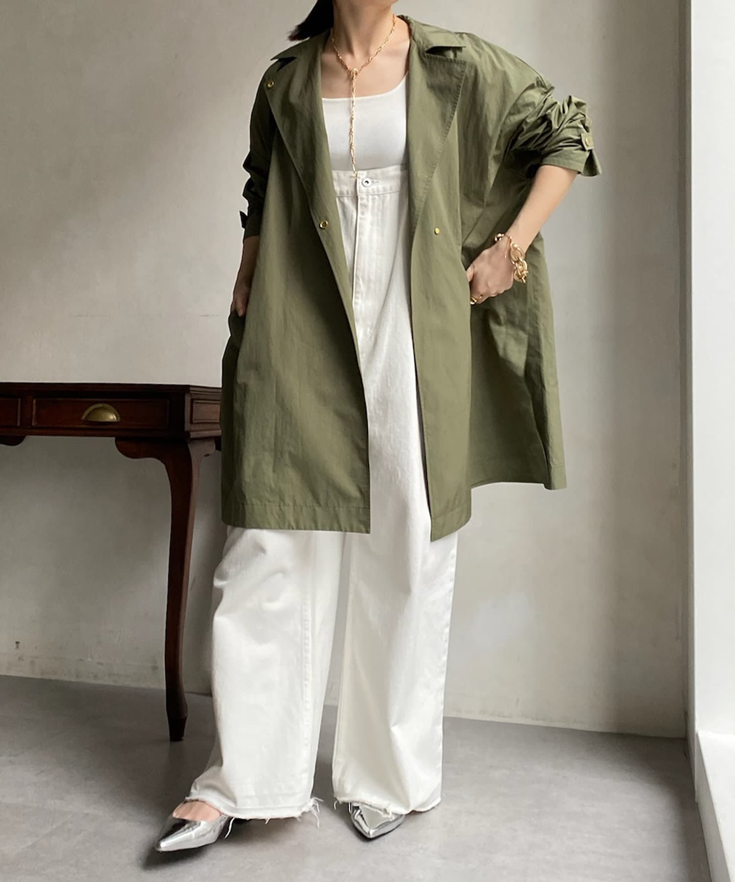 トレンチコートのシルエットをベースにアレンジしたデザイン。