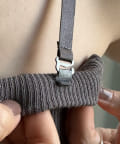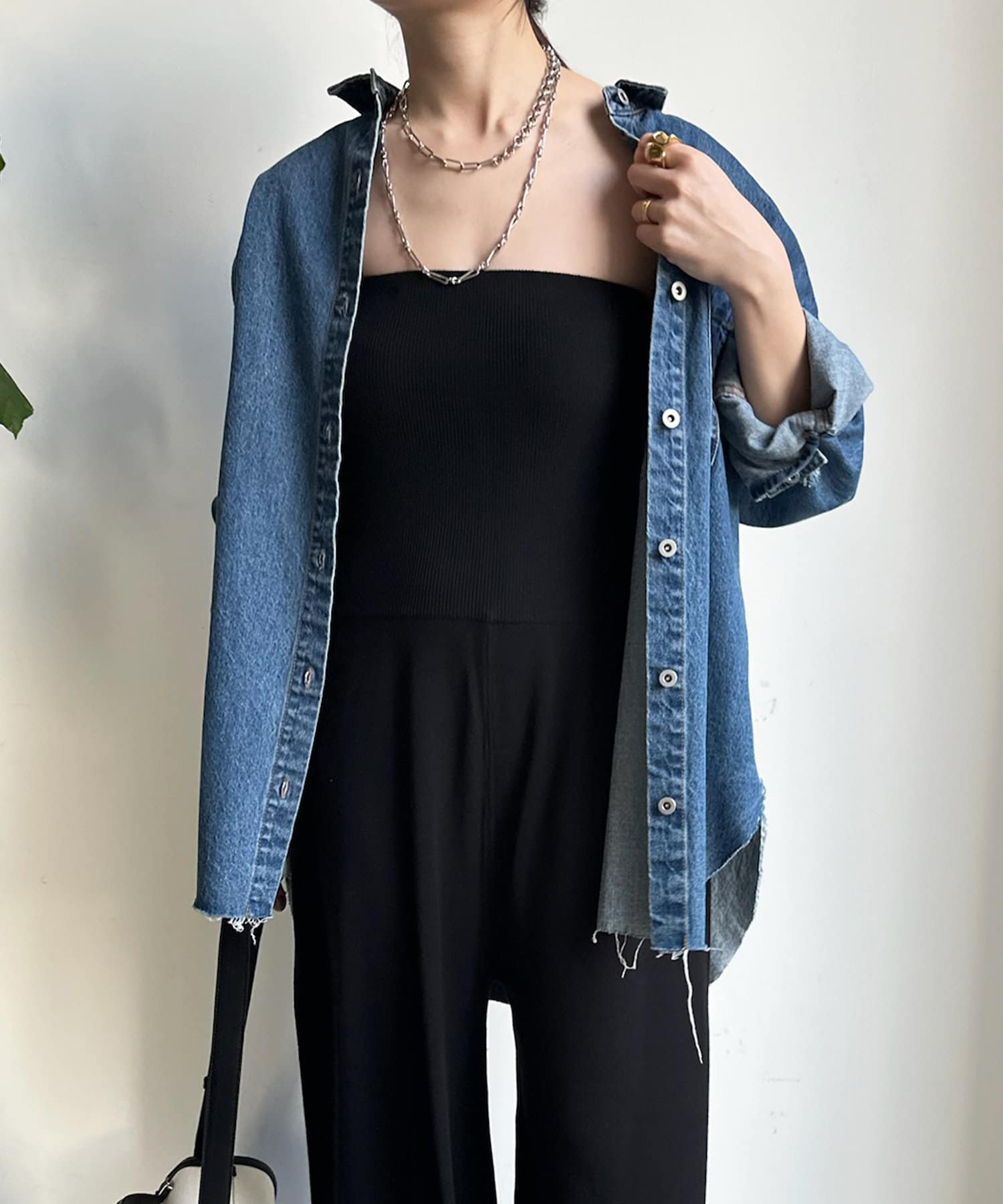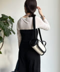 取り外し可能の肩ひも付きで、簡単に着こなしに変化を付けられるのがうれしいポイント。