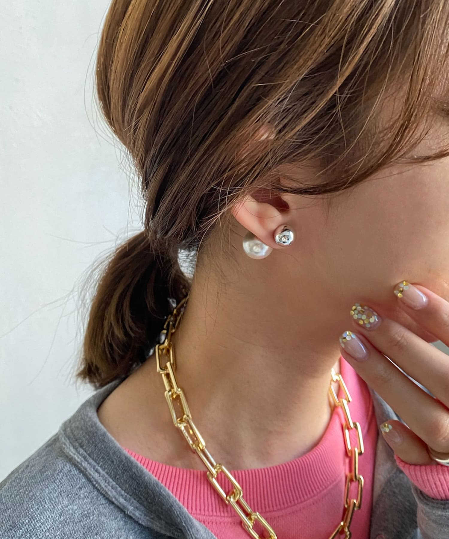 ゴールド、シルバーサイドとパールサイド前後2WAYで使用可能な万能ピアス!