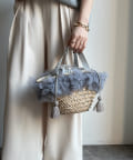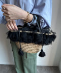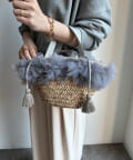 シンプルなカゴバッグにたくさんのチュールとフリンジを