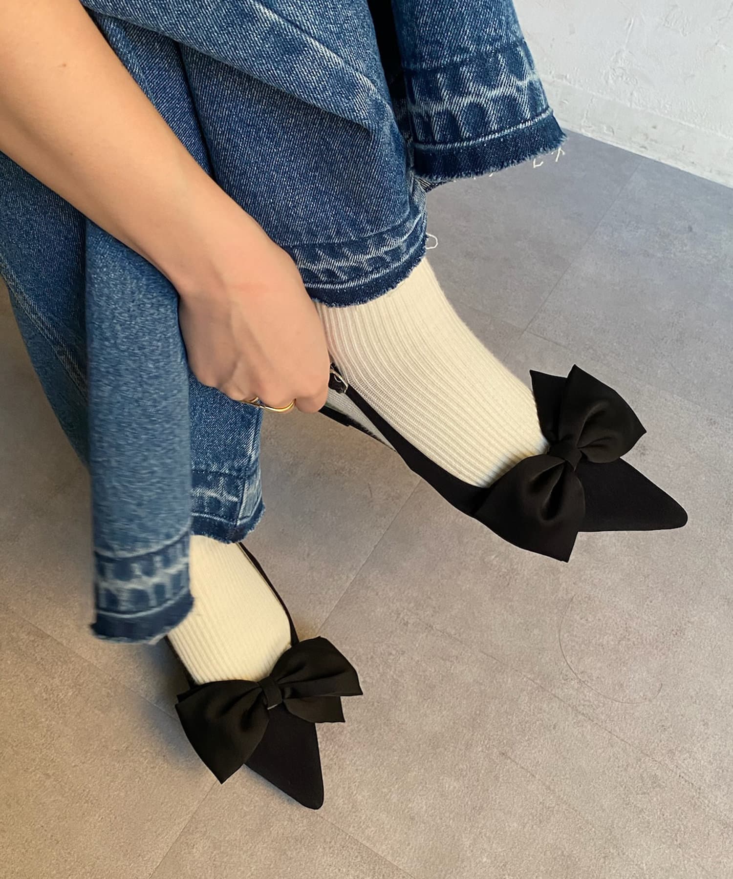 リボンを外せばON/OFF問わず使用可能なのが嬉しいポイントで、バックストラップがあるので、履き心地も抜群◎