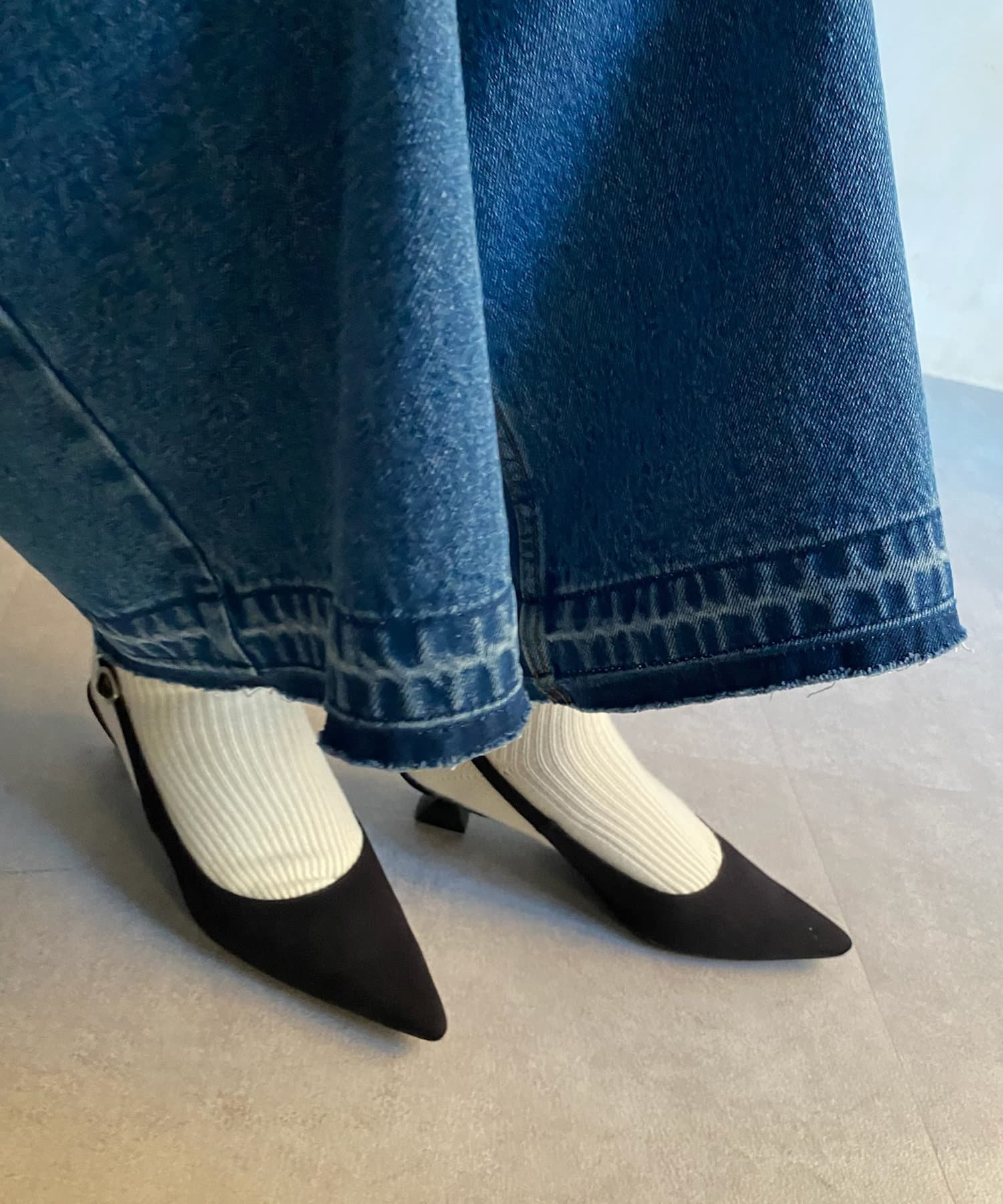 ポインテッドトゥが足元をスッキリと綺麗に見せてくれて、女性らしさを演出してくれます。