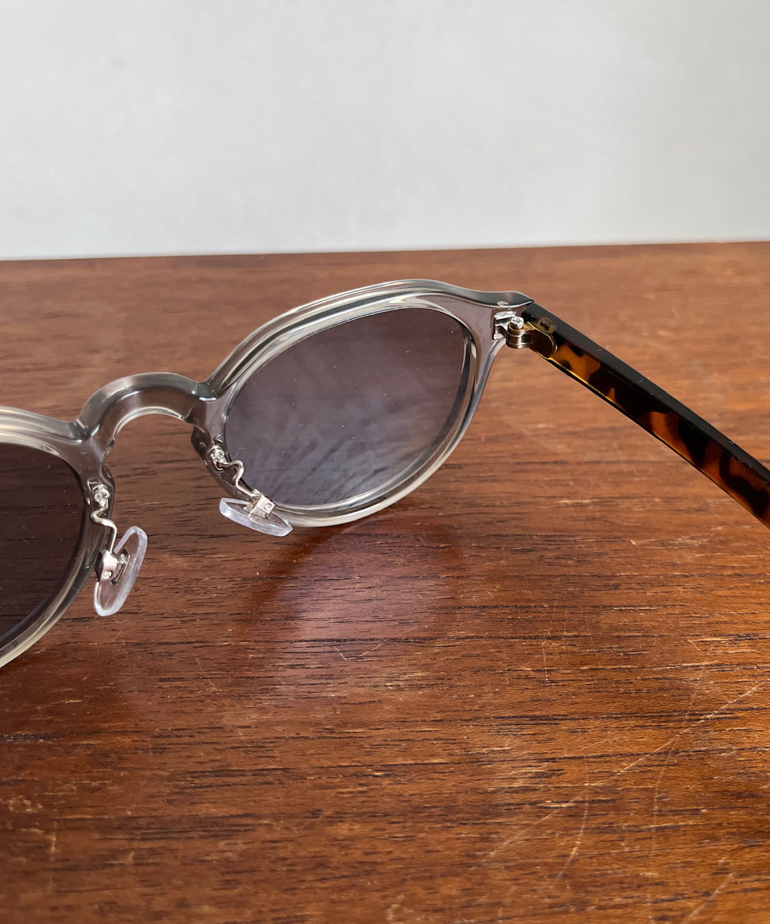 顔に自然に馴染み、取り入れやすいクリアフレームが魅力のメガネ。