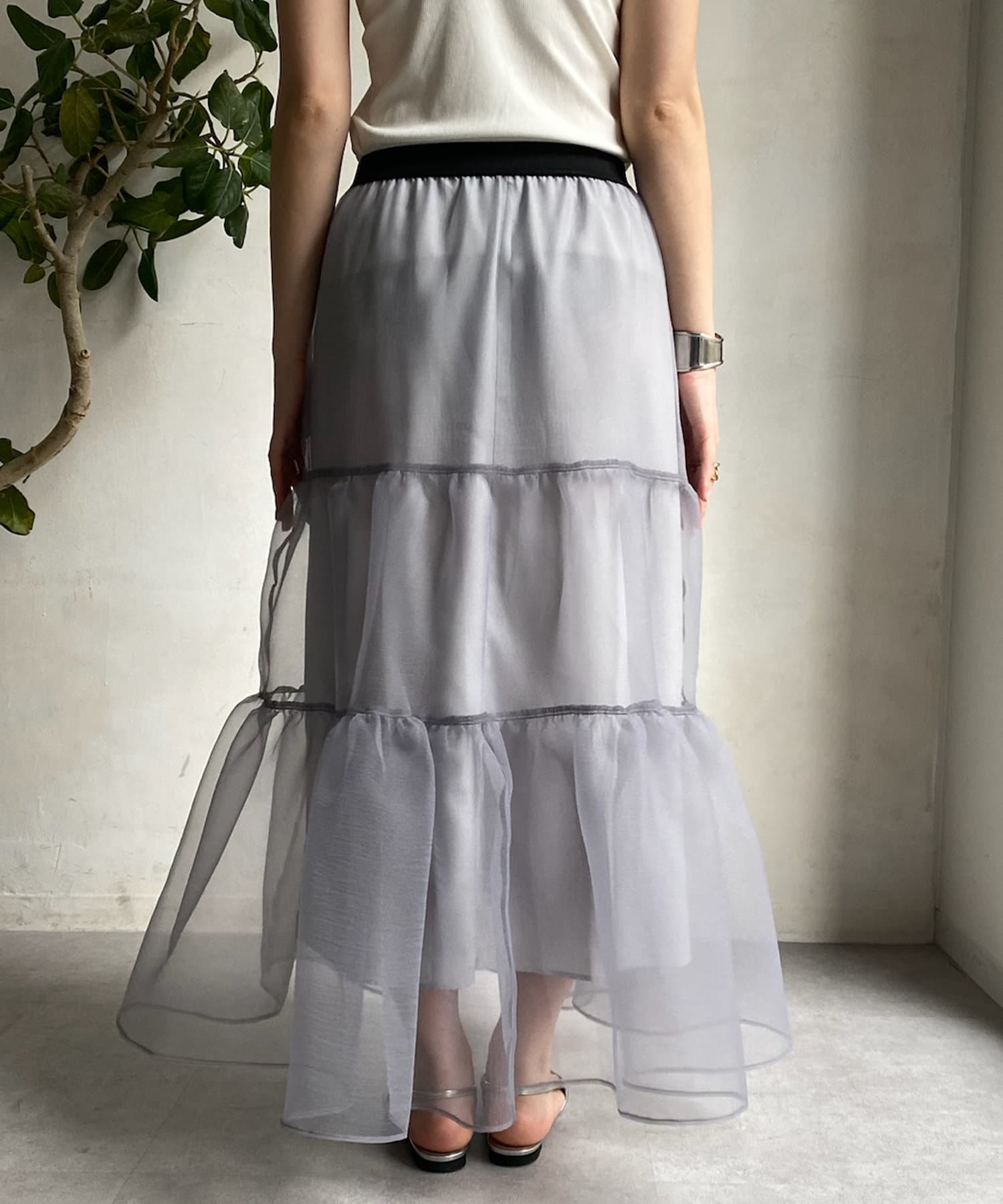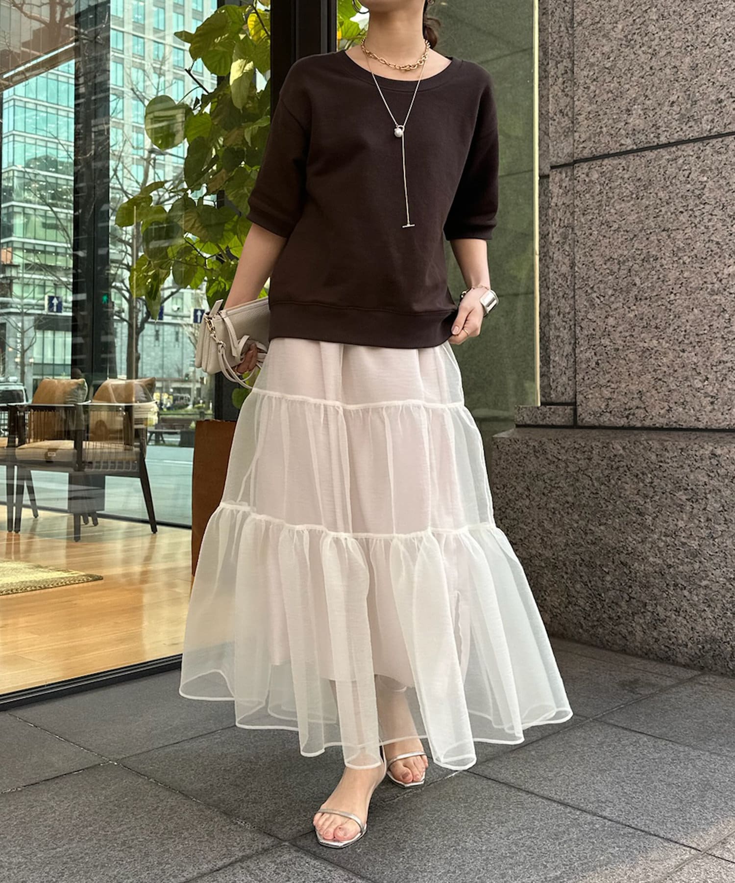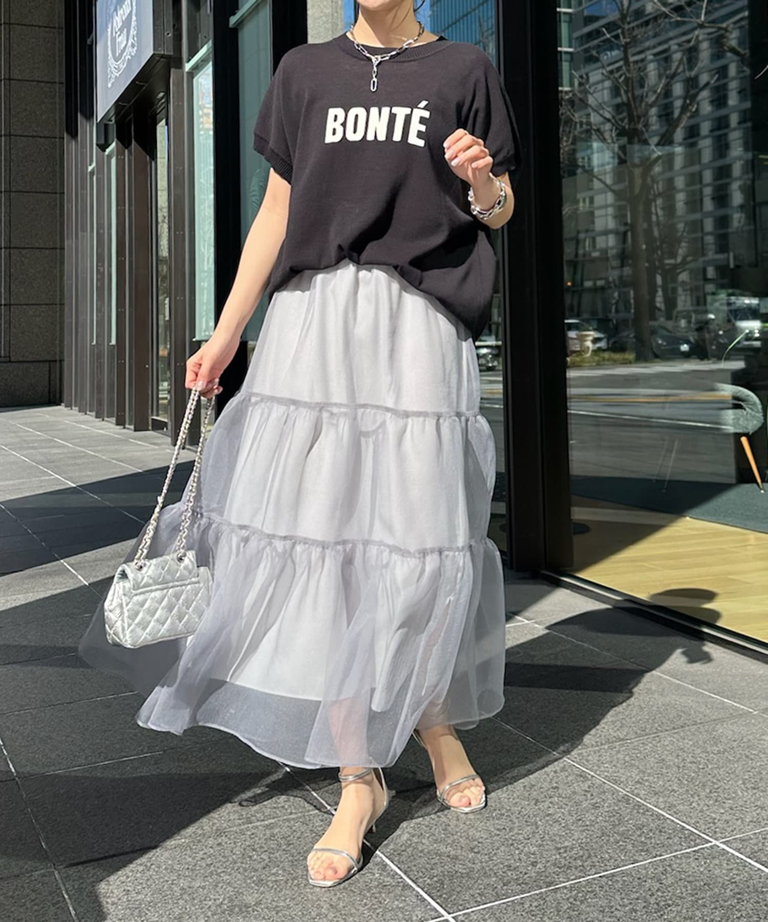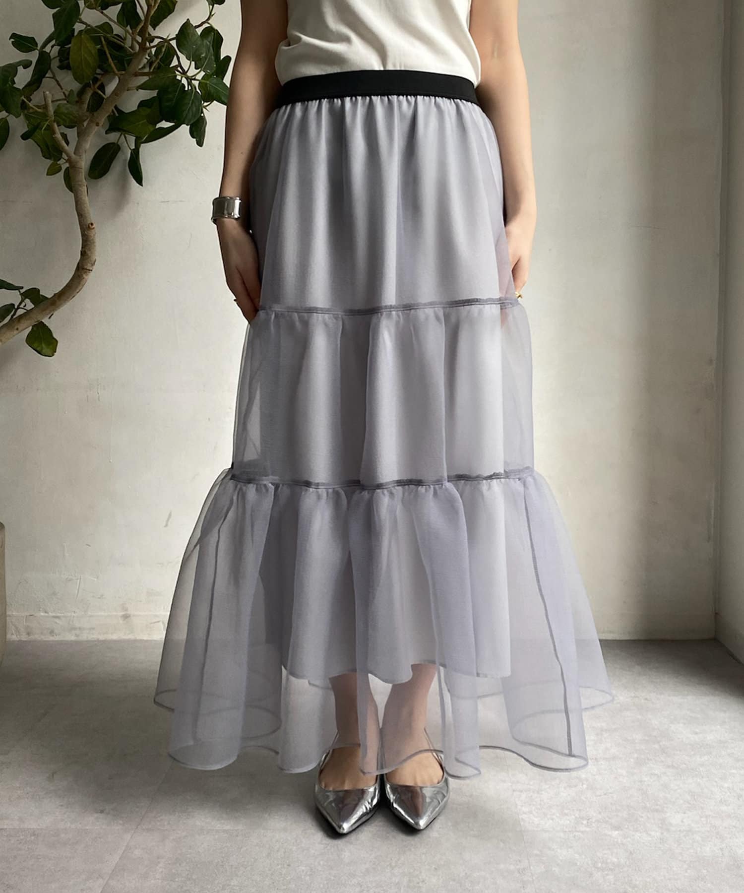 透け感がかわいいオーガンジー素材に、ティアードシルエットで今年らしさをたっぷりとプラス。