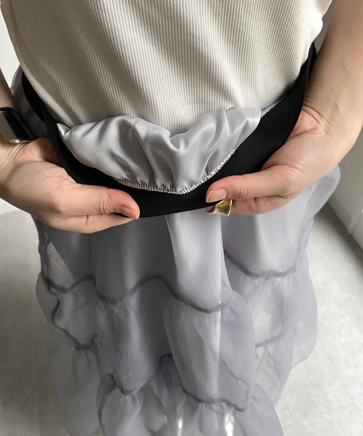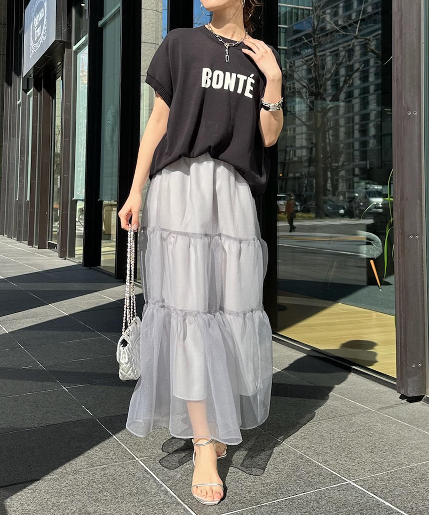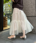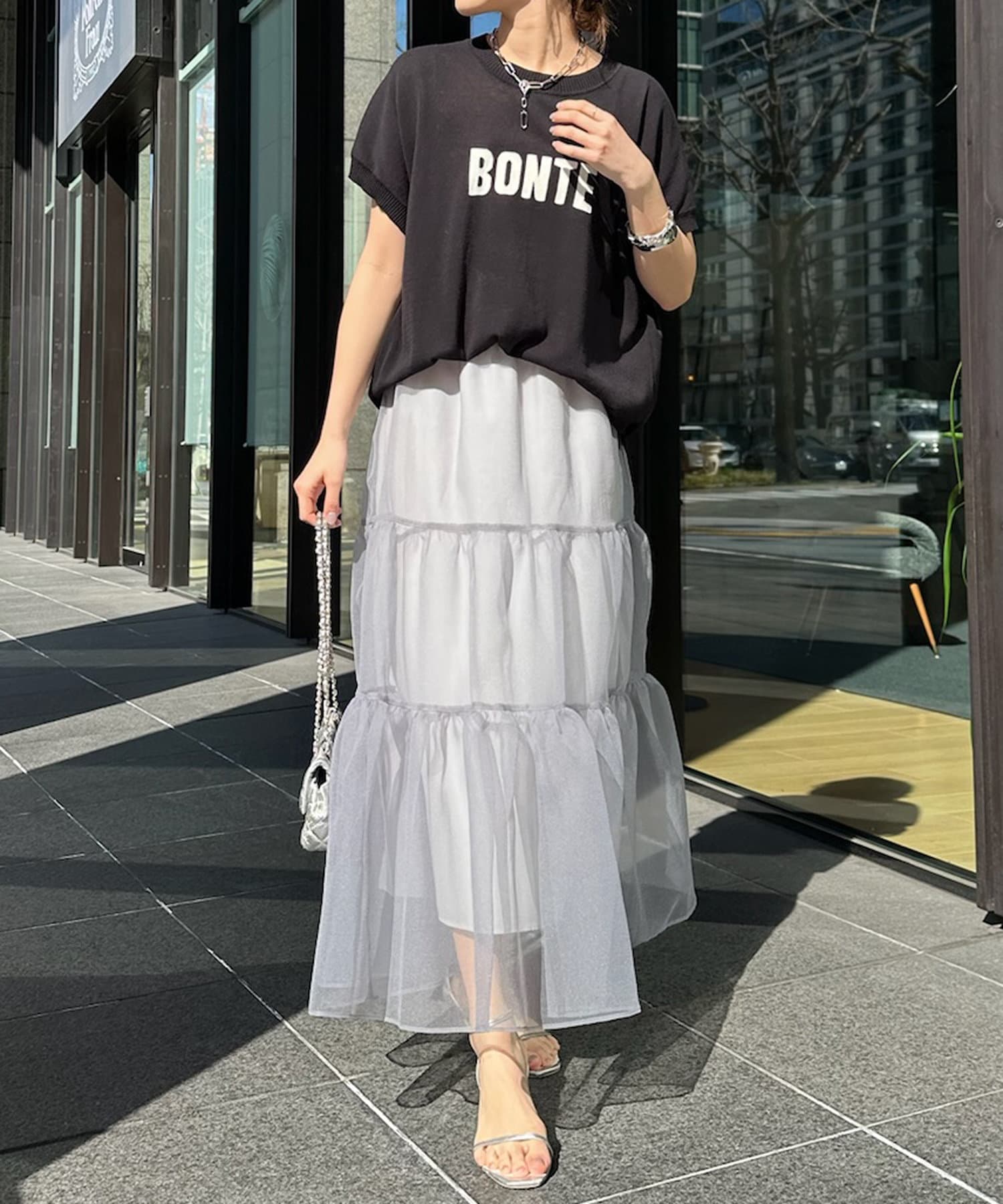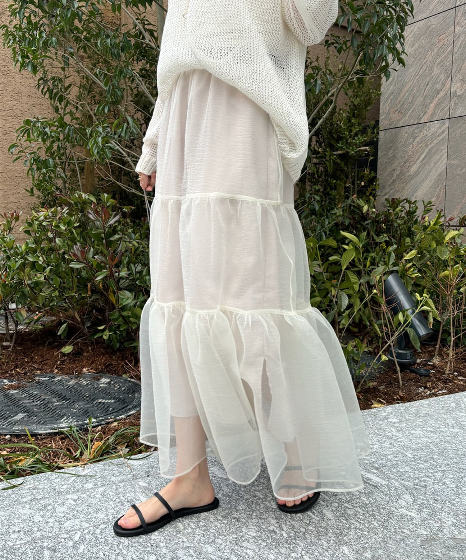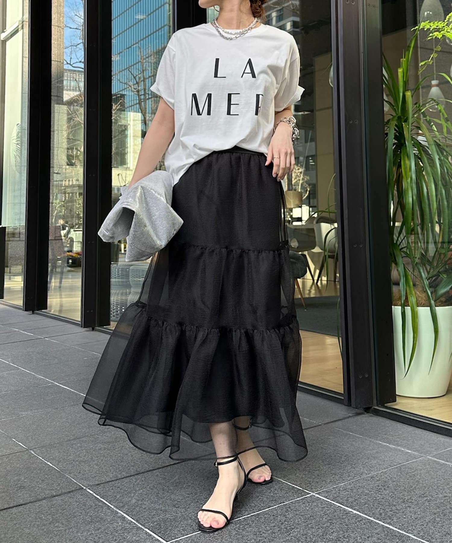 透け感がかわいいオーガンジー素材に、ティアードシルエットで今年らしさをたっぷりとプラス。