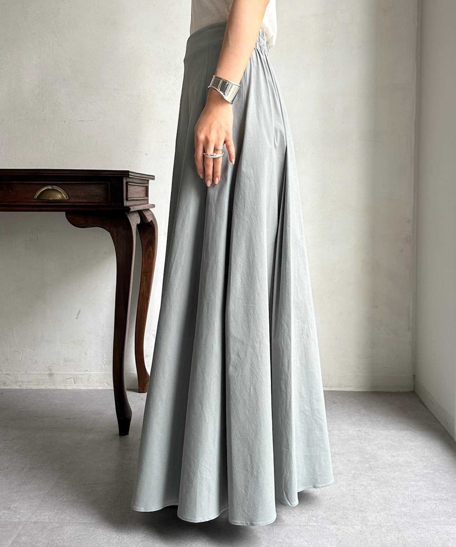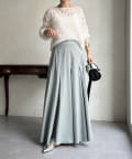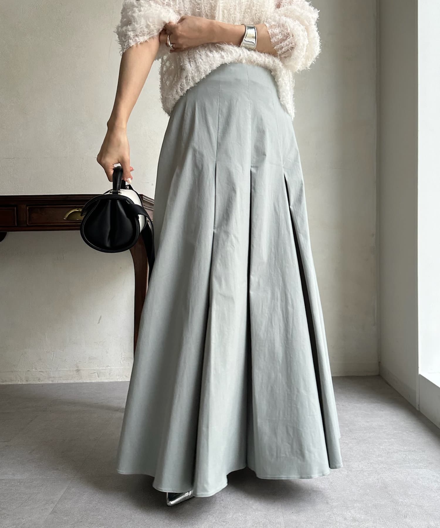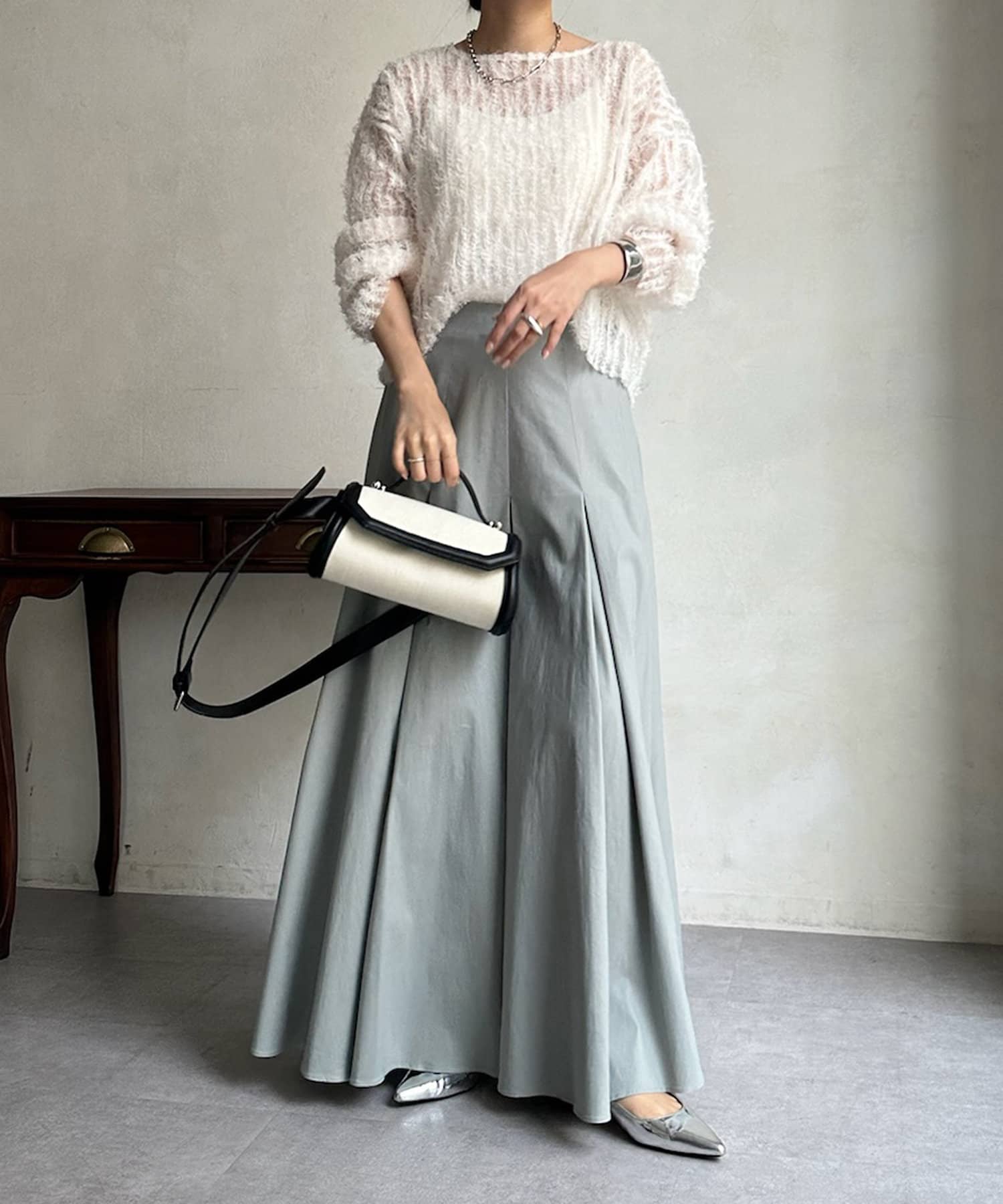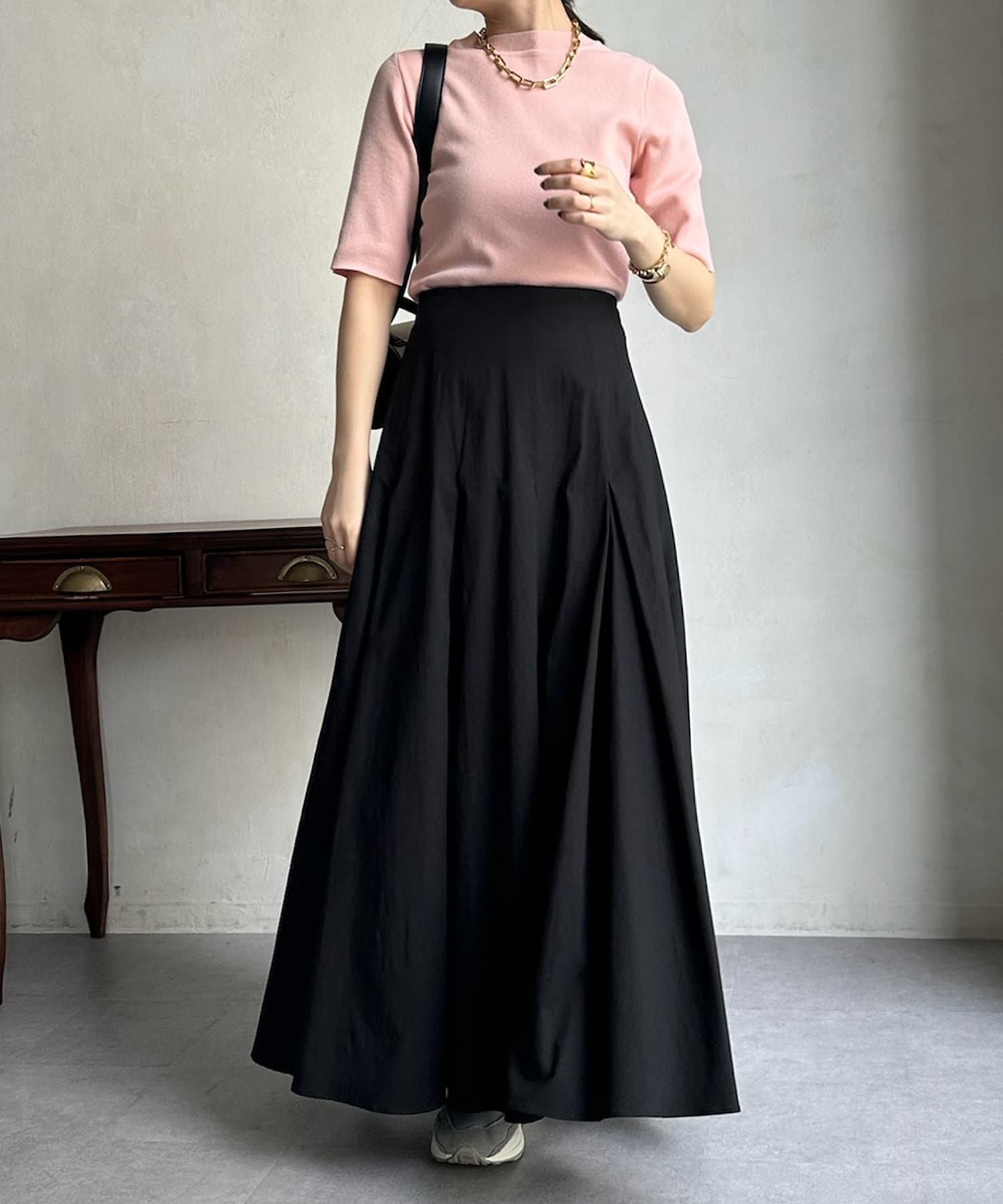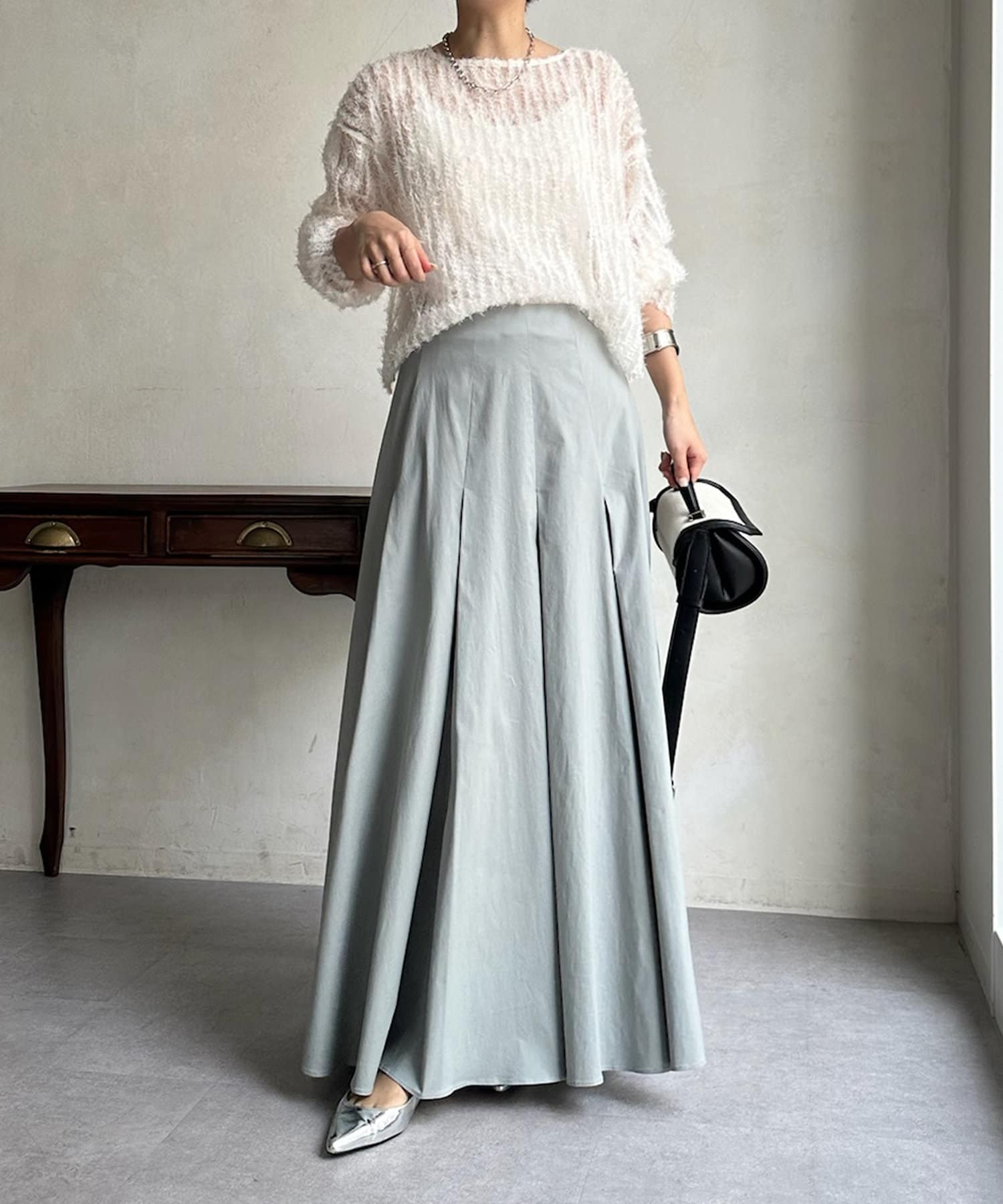 生地をふんだんに使い、タックを入れることで生まれるフレアシルエットが最大の魅力です。