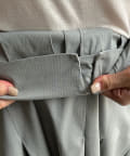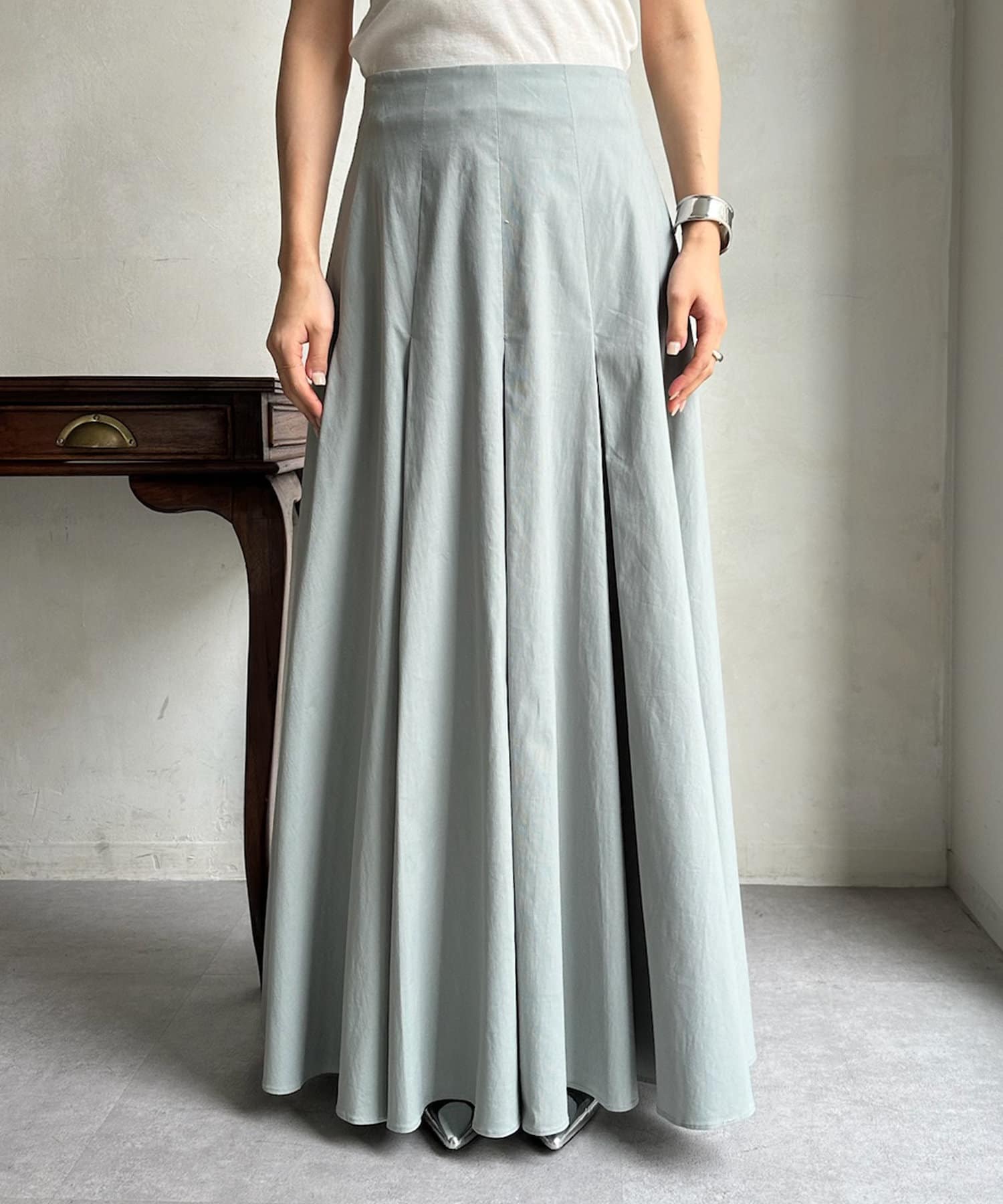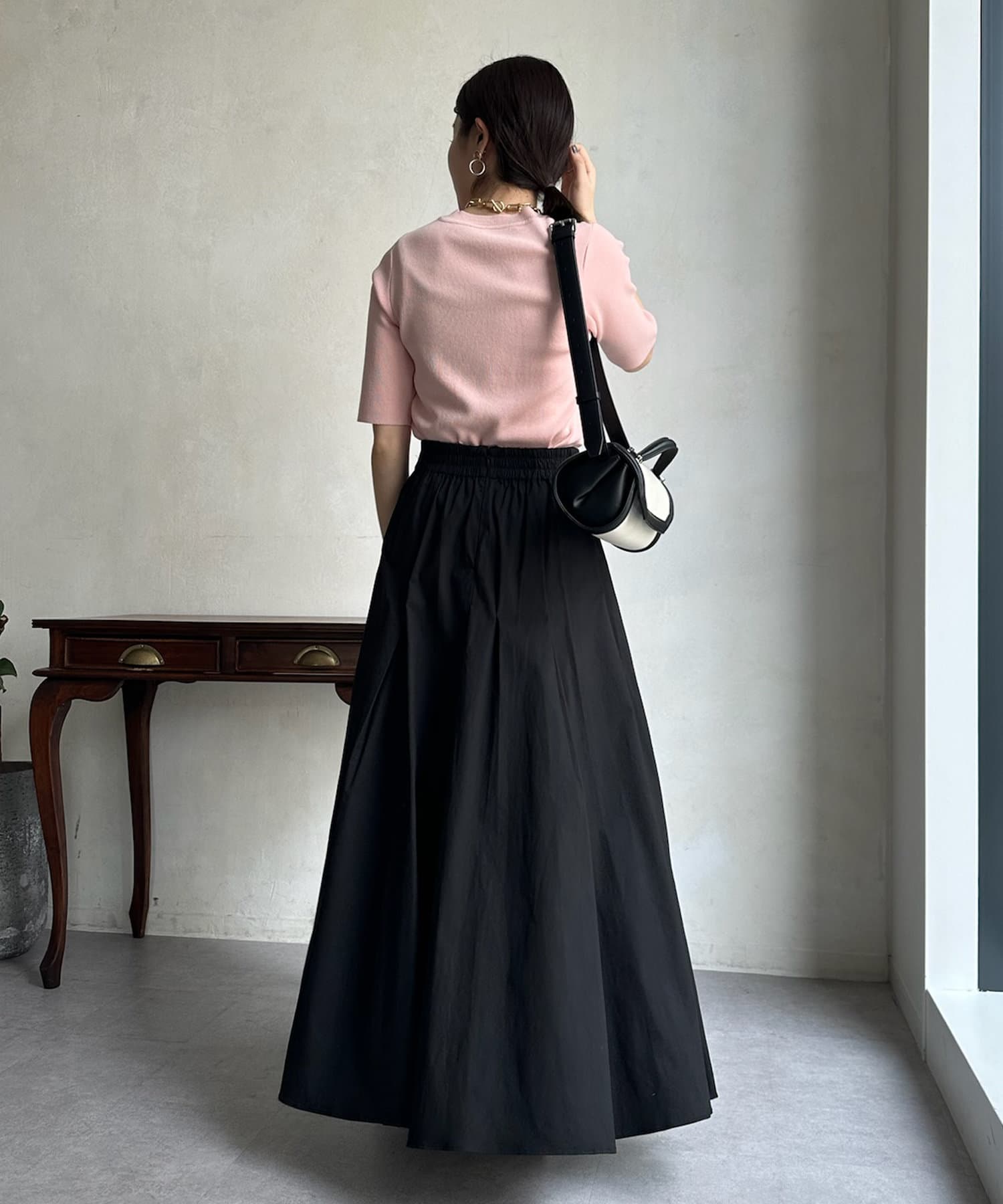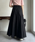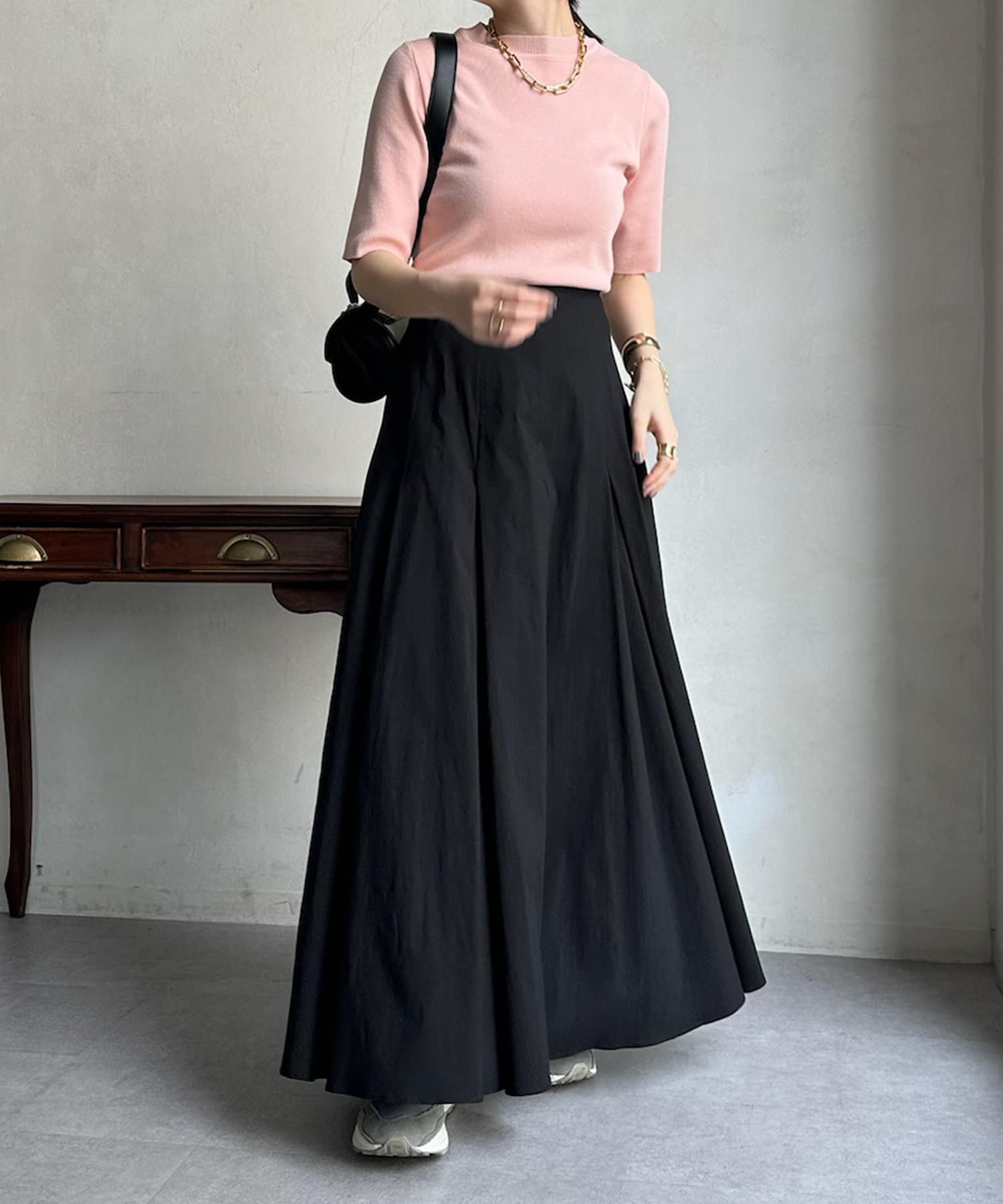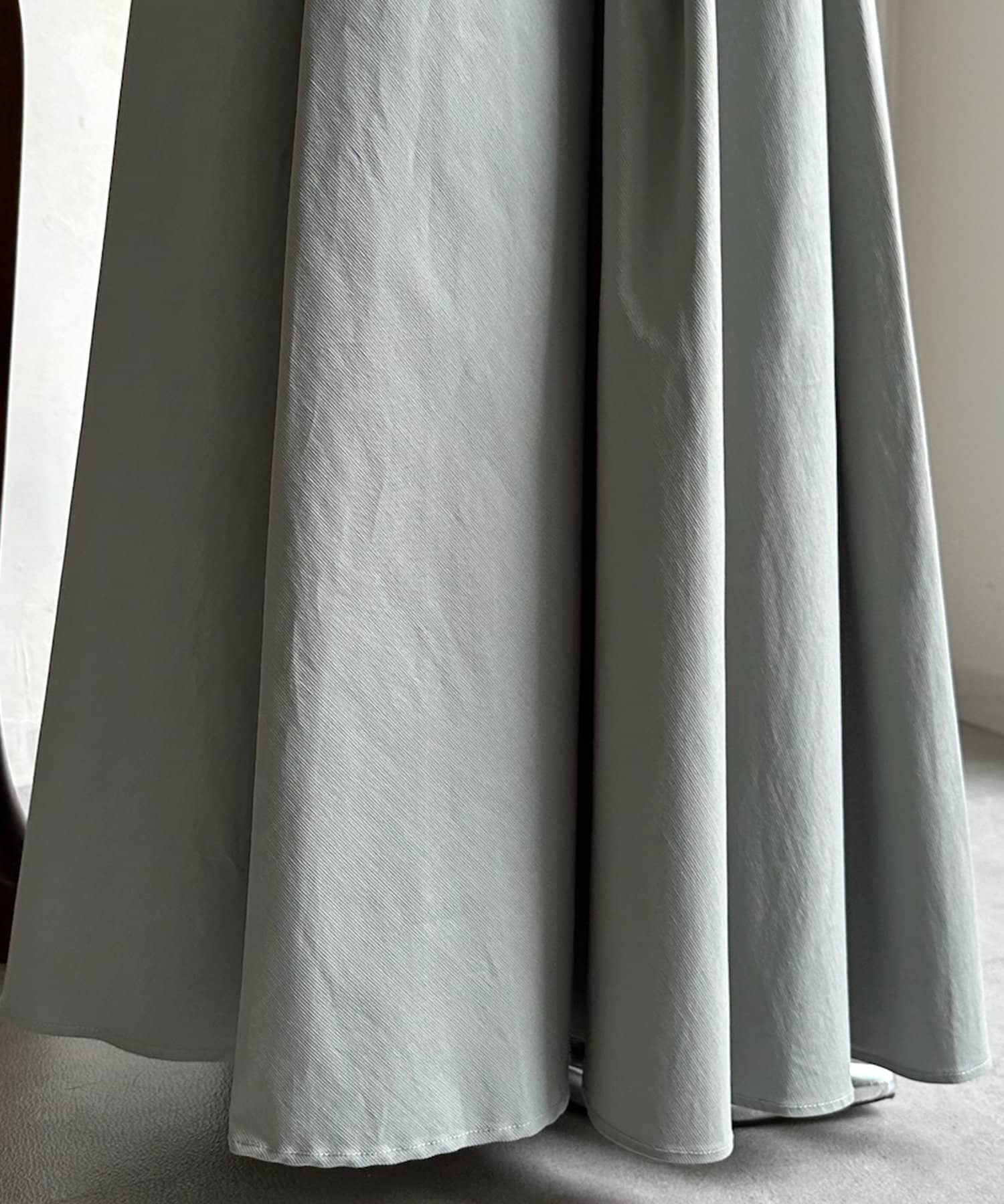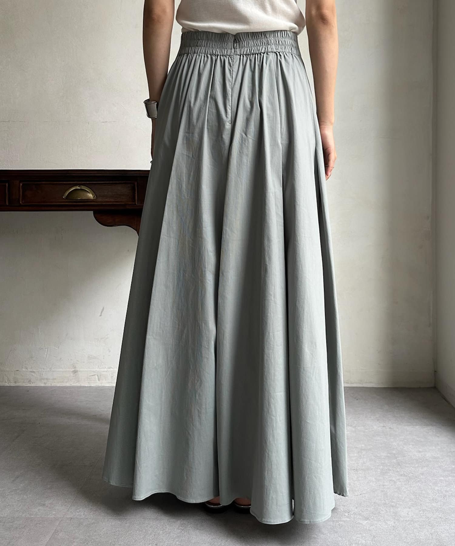生地をふんだんに使い、タックを入れることで生まれるフレアシルエットが最大の魅力です。
