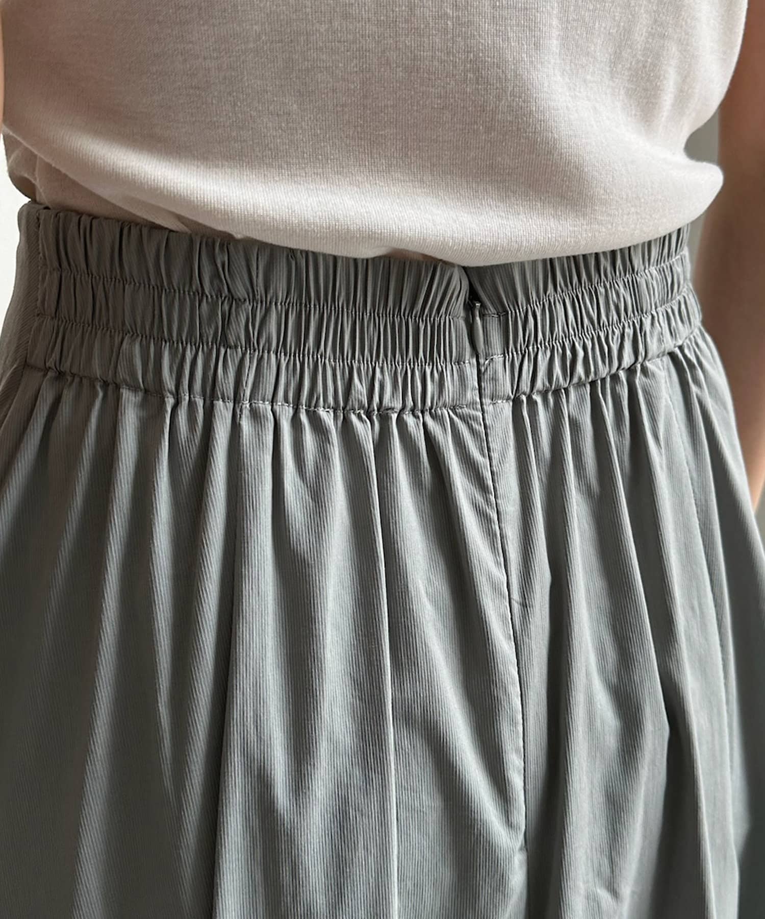 ハイウエストのデザインで腰回りをスリムにすっきりと見せてくれる1着。