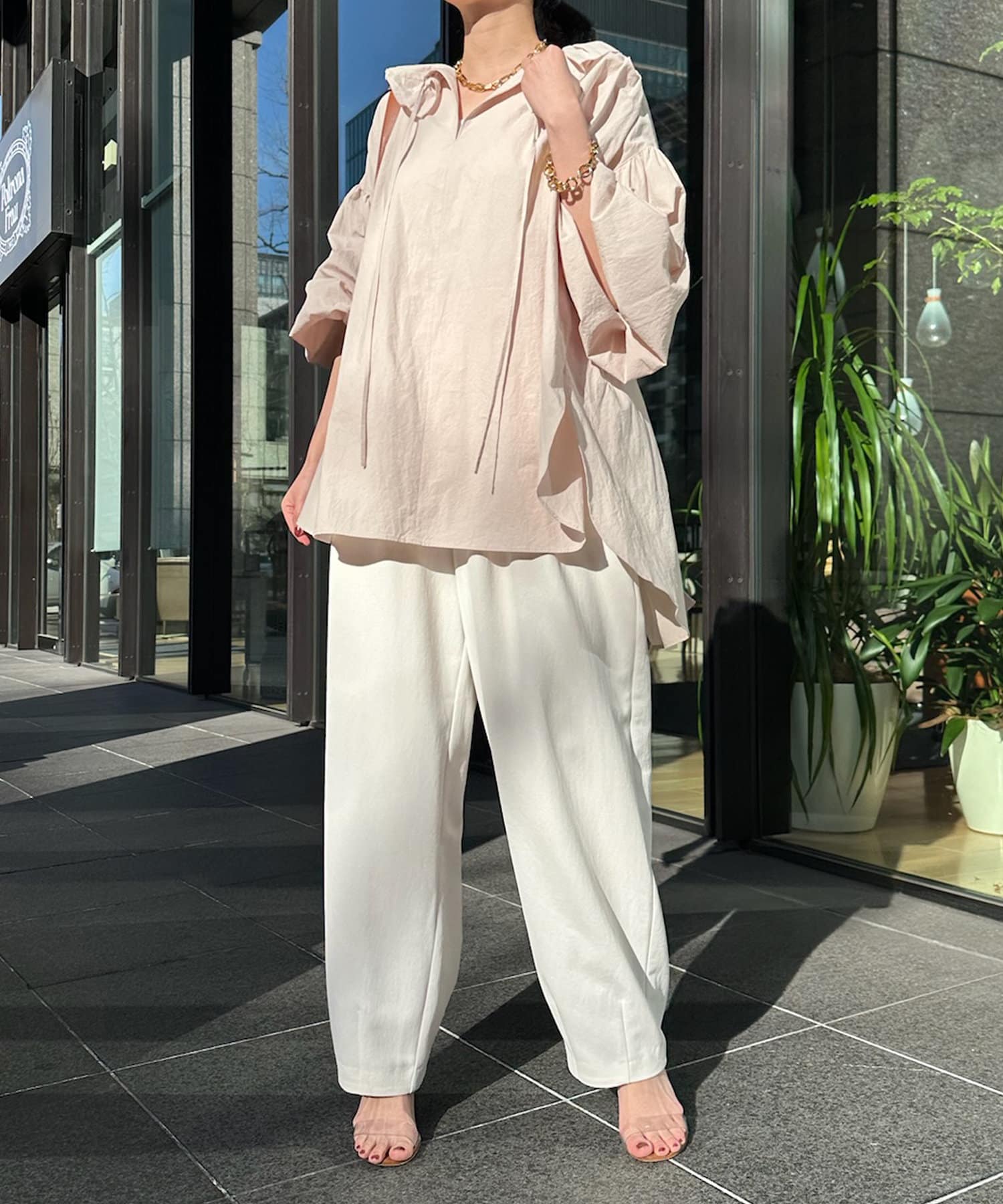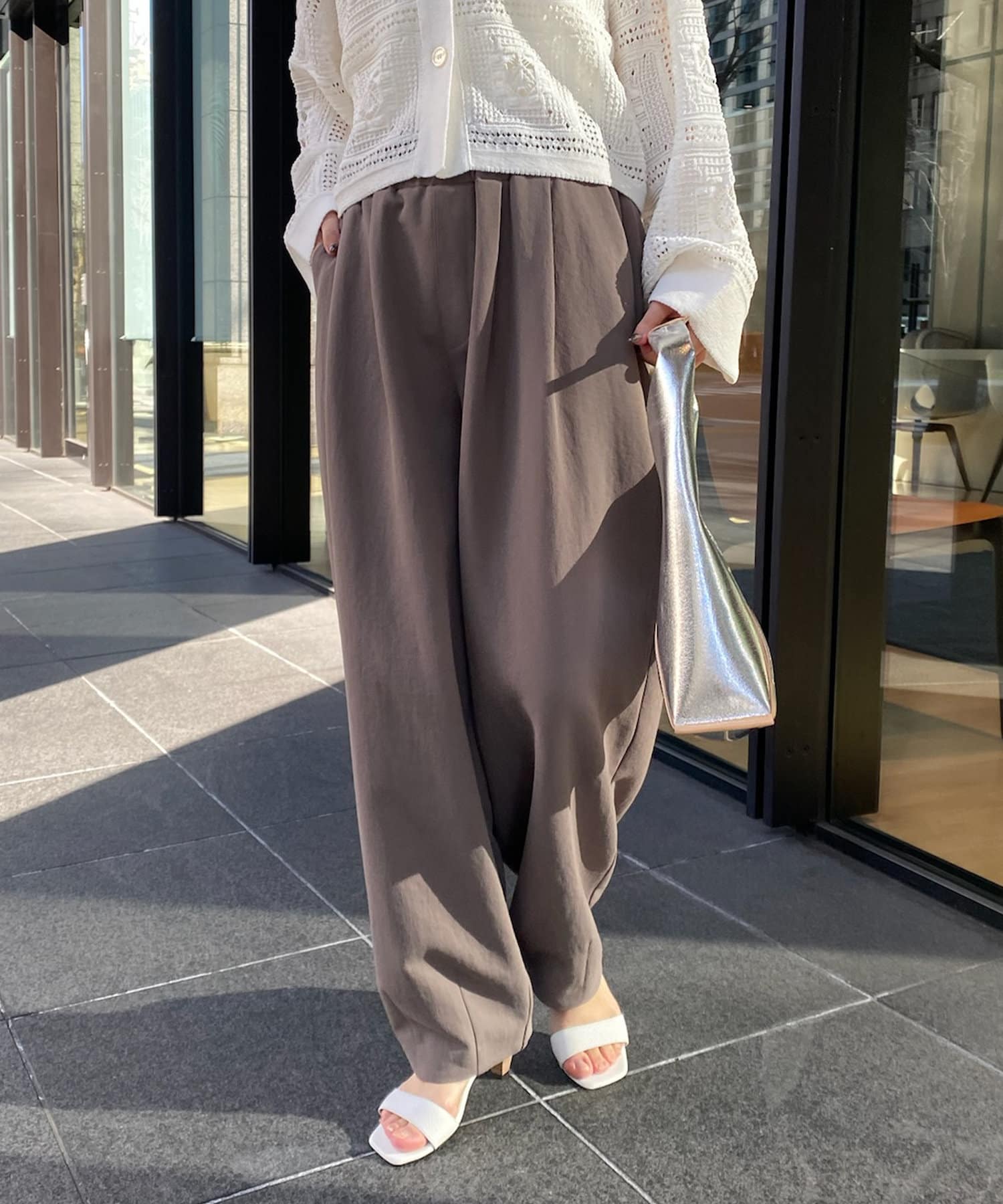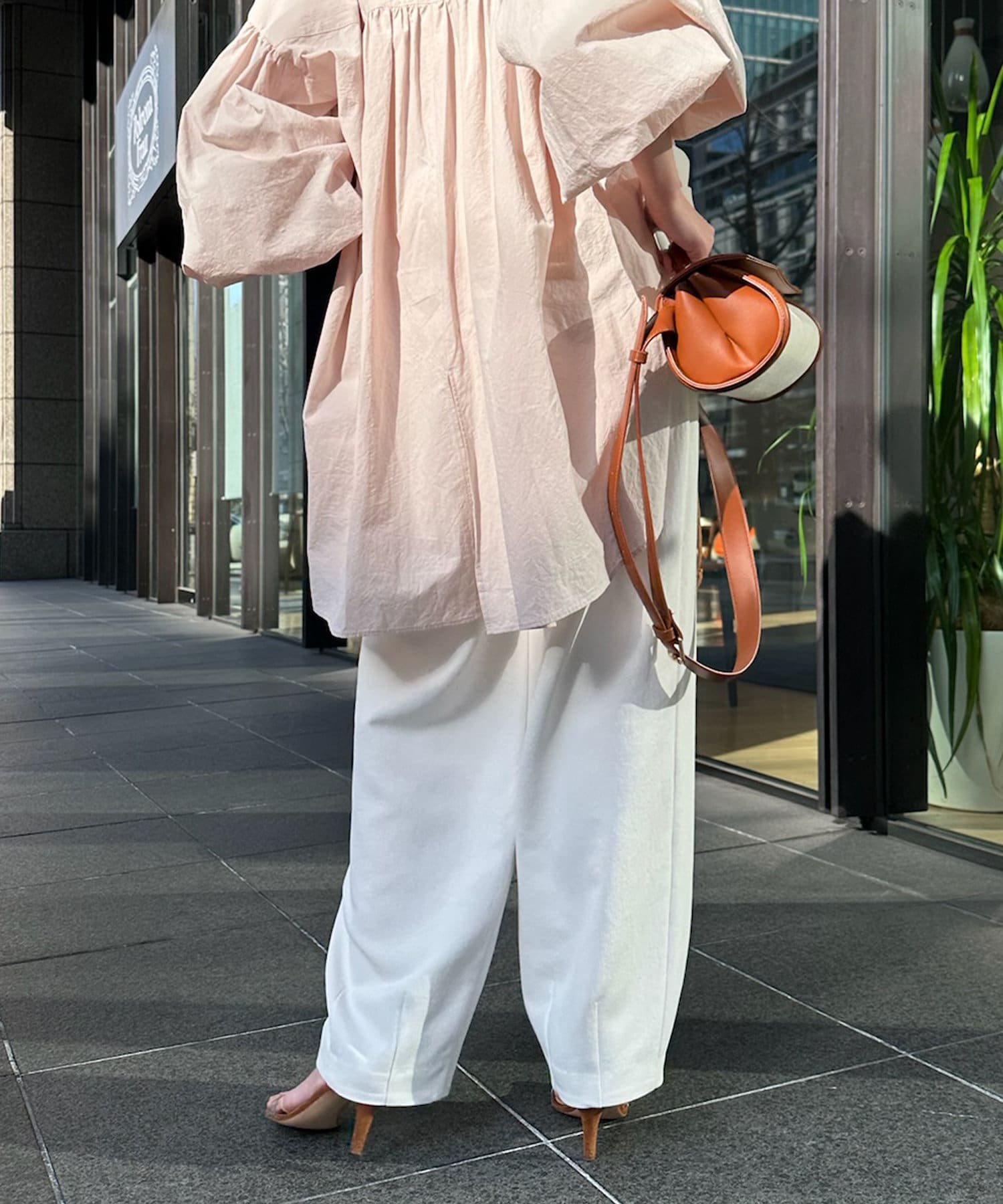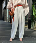 ヒップラインや脚のラインなど、気になる部分をカバーしながら裾にかけて細身になるバルーンシルエットに。