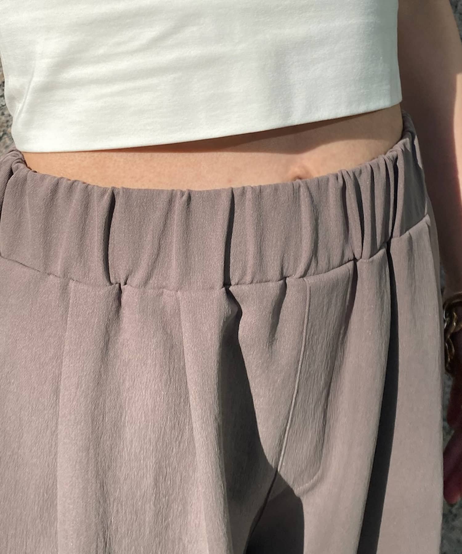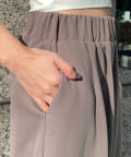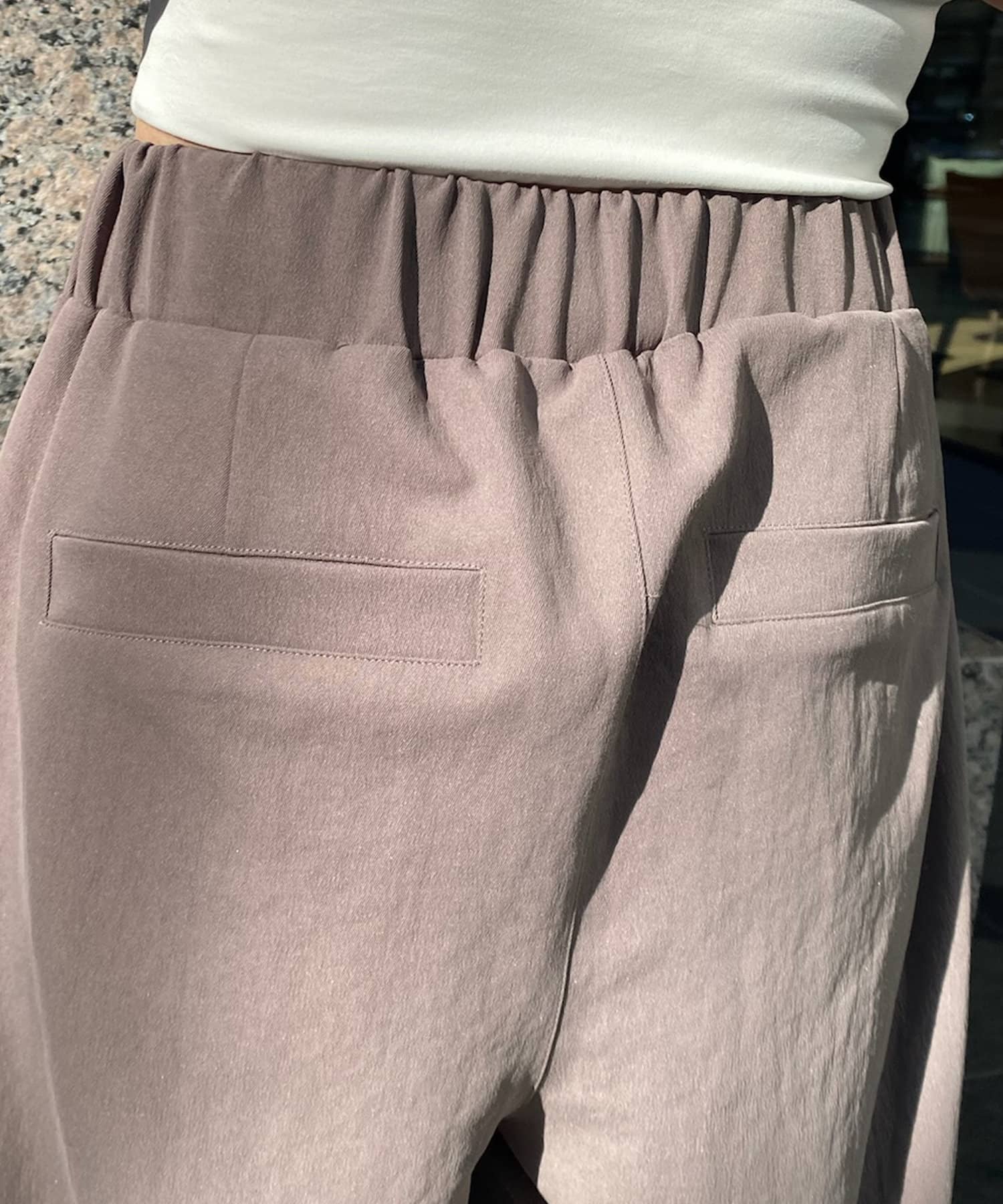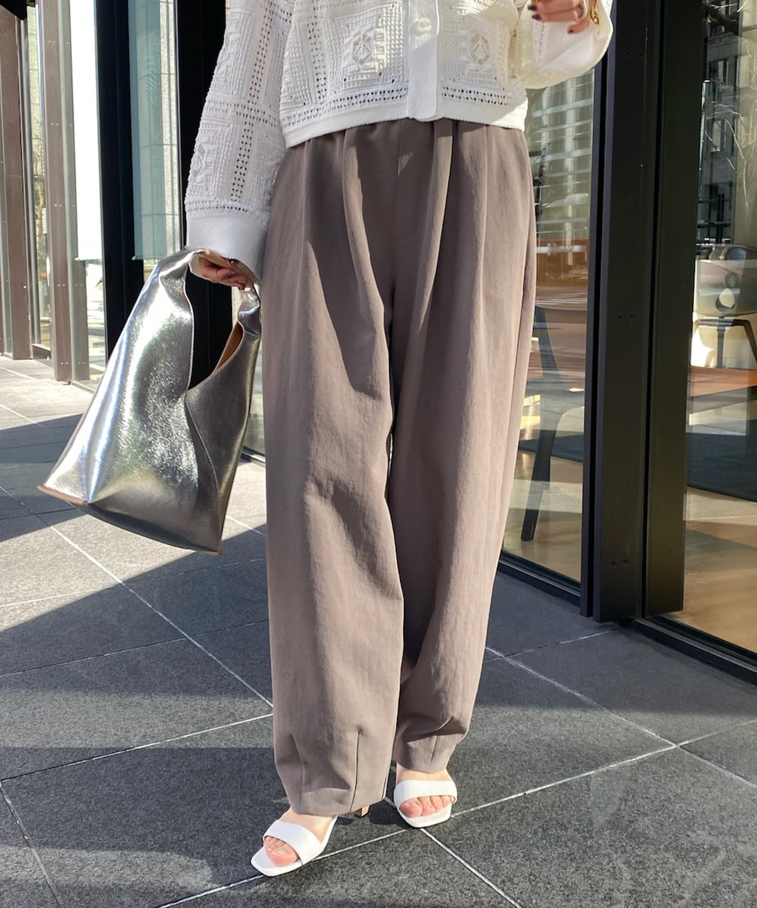 ヒップラインや脚のラインなど、気になる部分をカバーしながら裾にかけて細身になるバルーンシルエットに。
