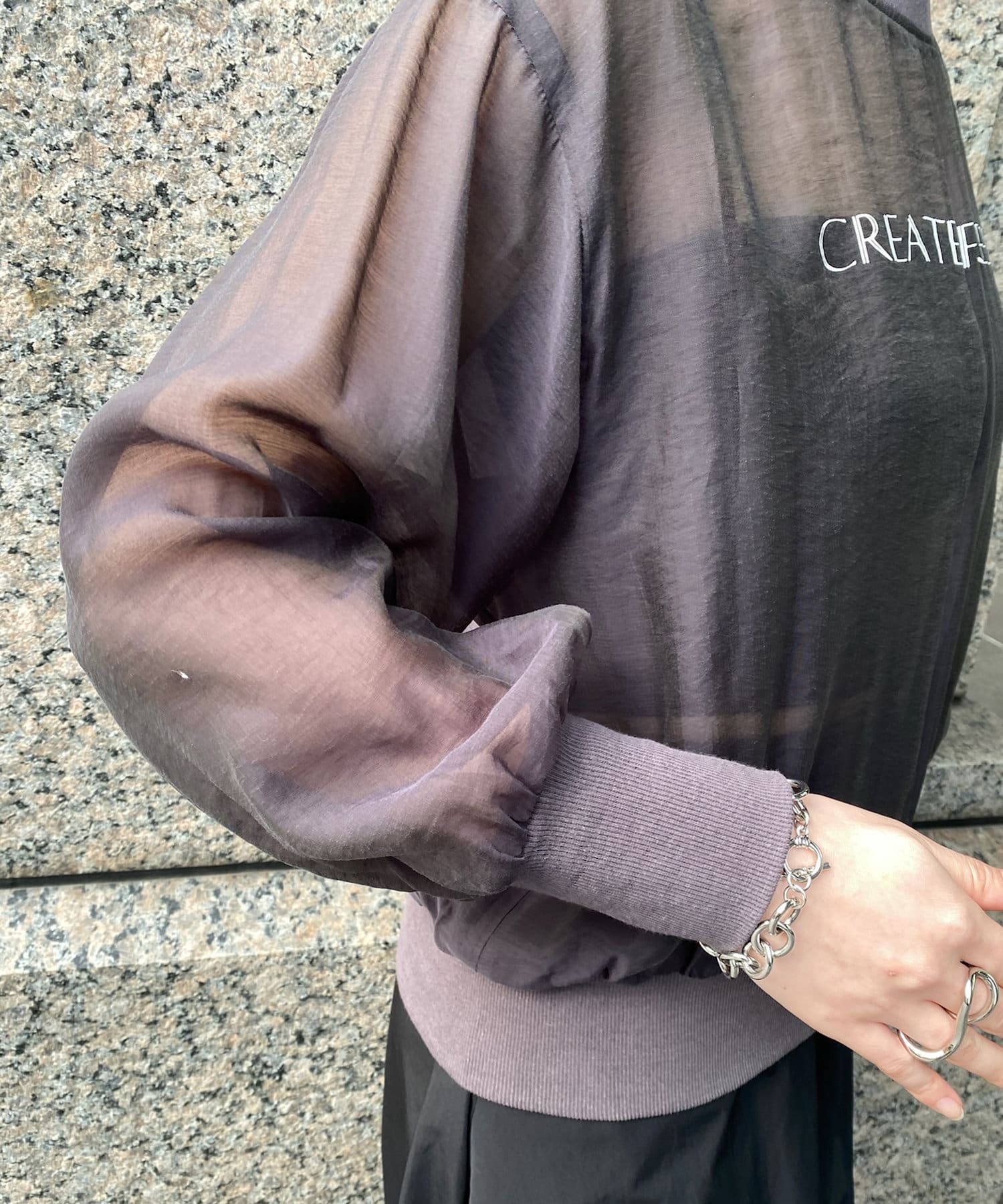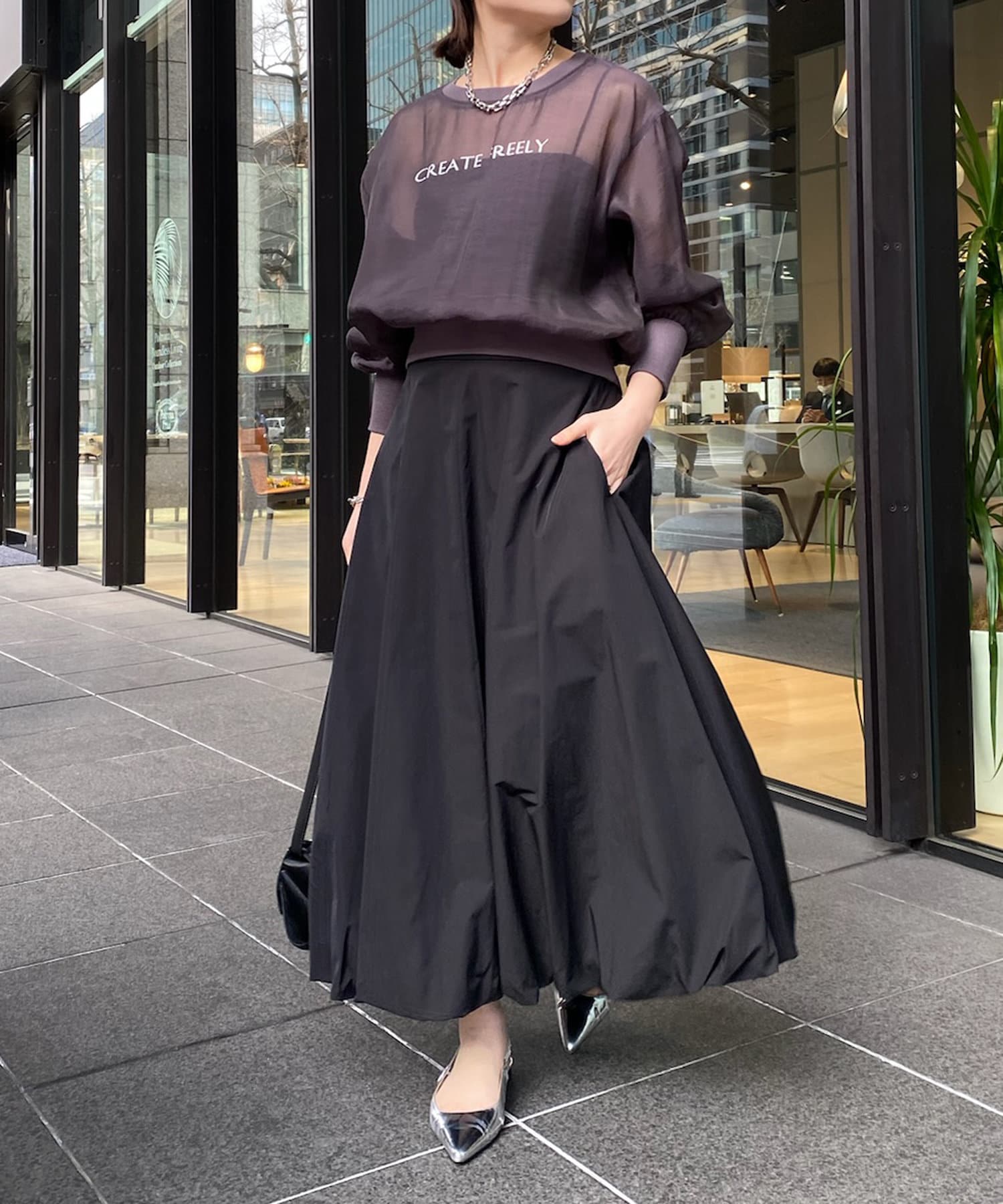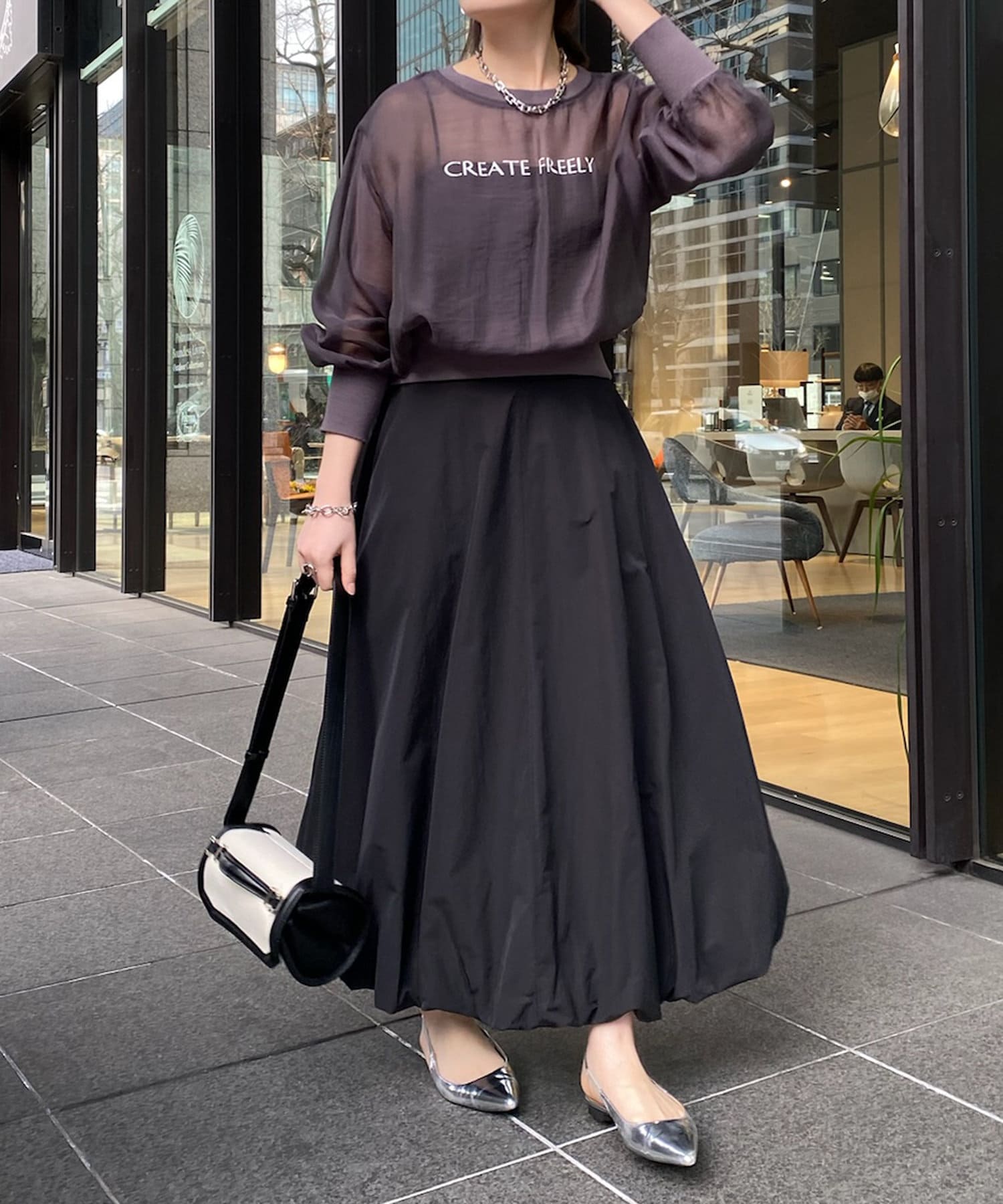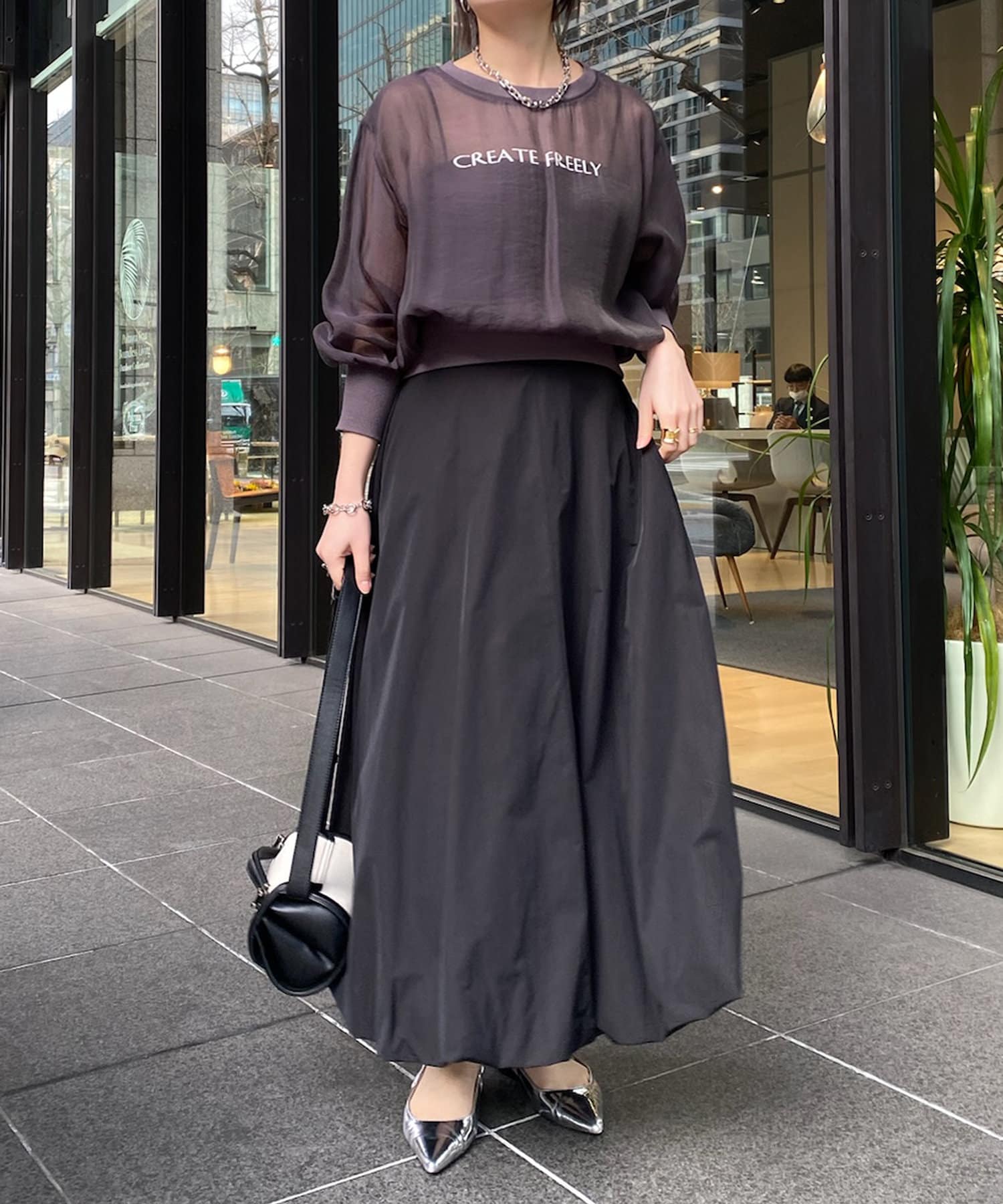 カジュアルになりすぎないシアーの素材が大人の女性をさりげなくプラスしてくれます。
