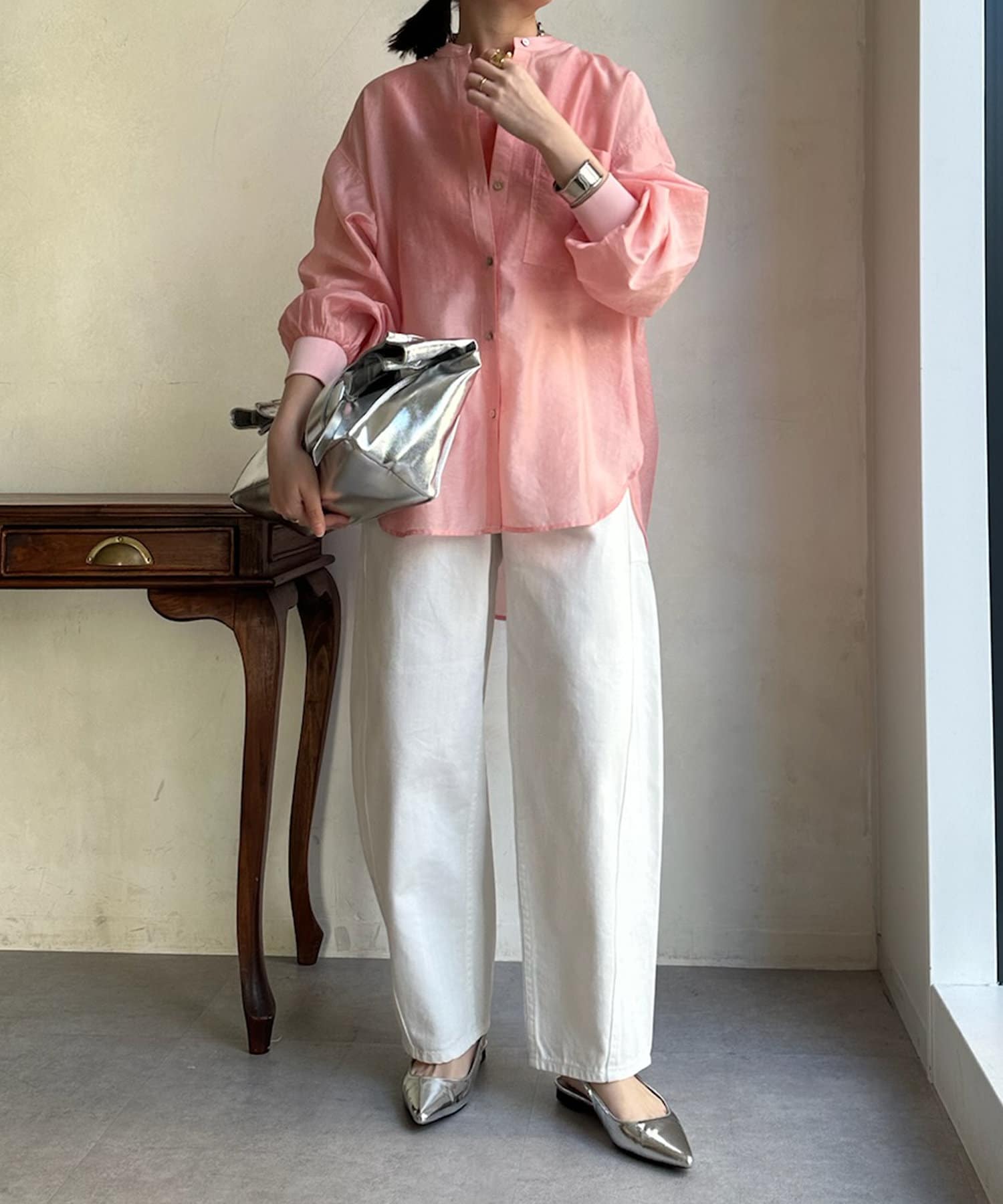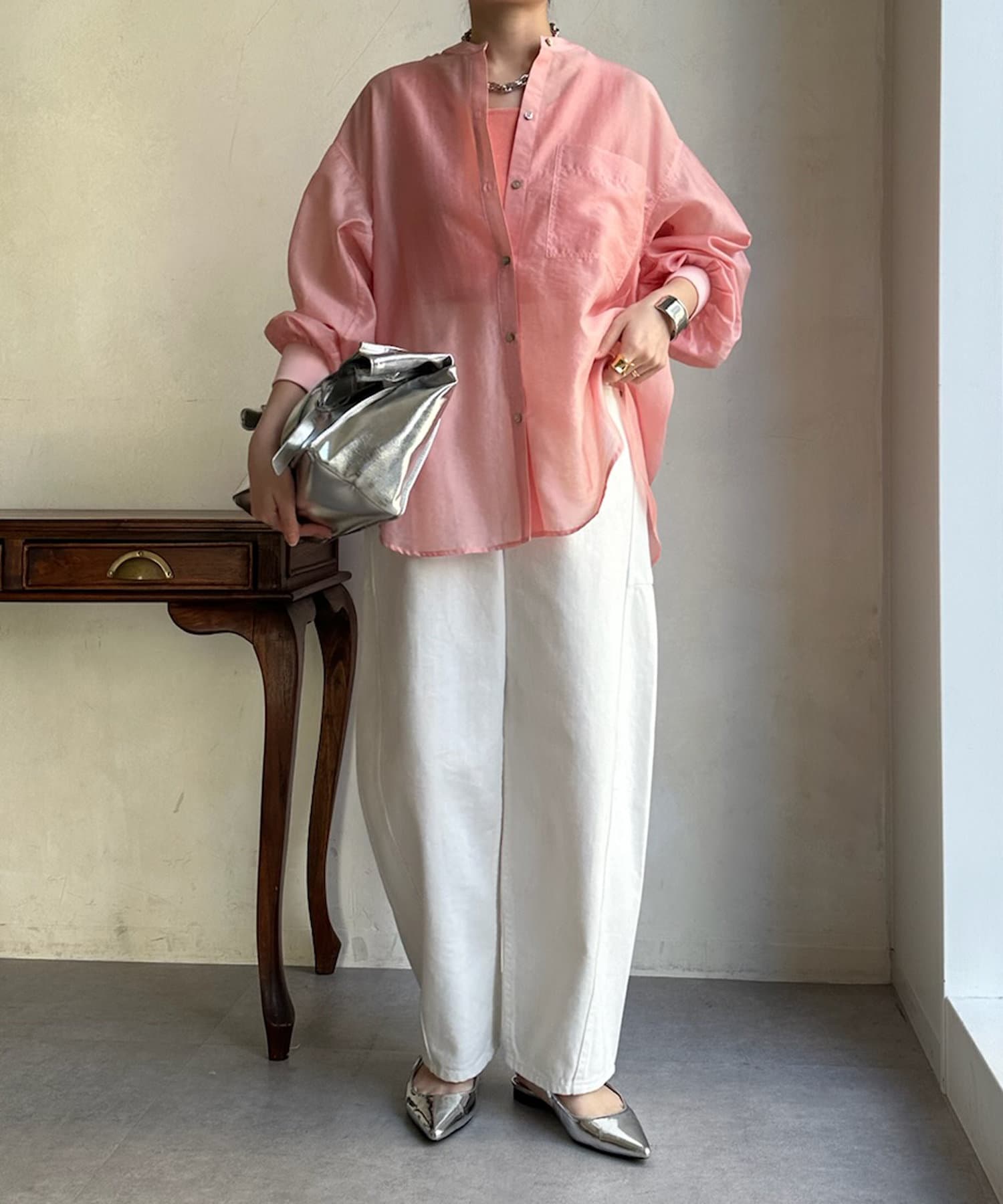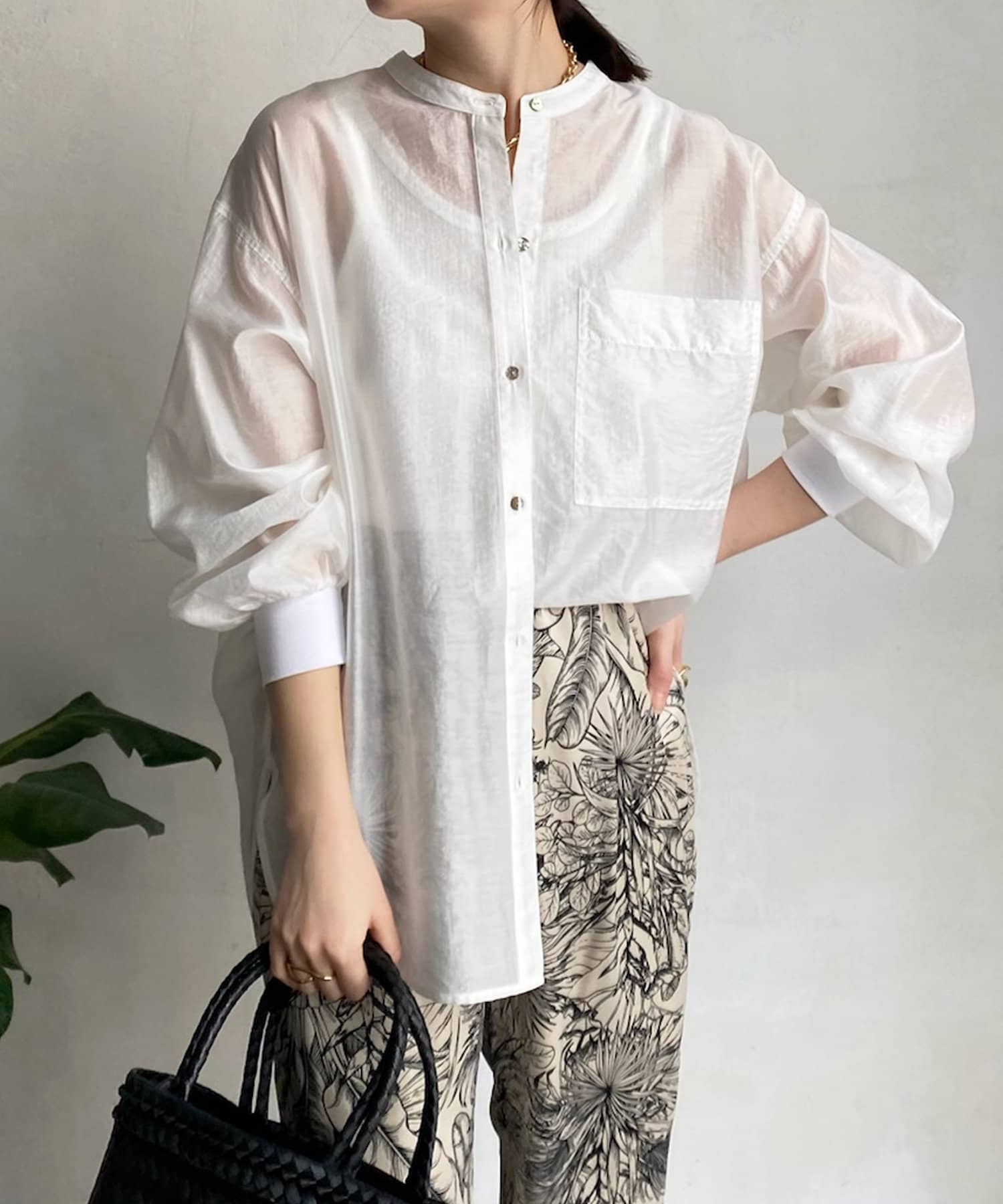 羽織としても、フロントボタンを閉じてブラウスとしても着て頂けるので春~夏にかけて大活躍してくれること間違いなしです!