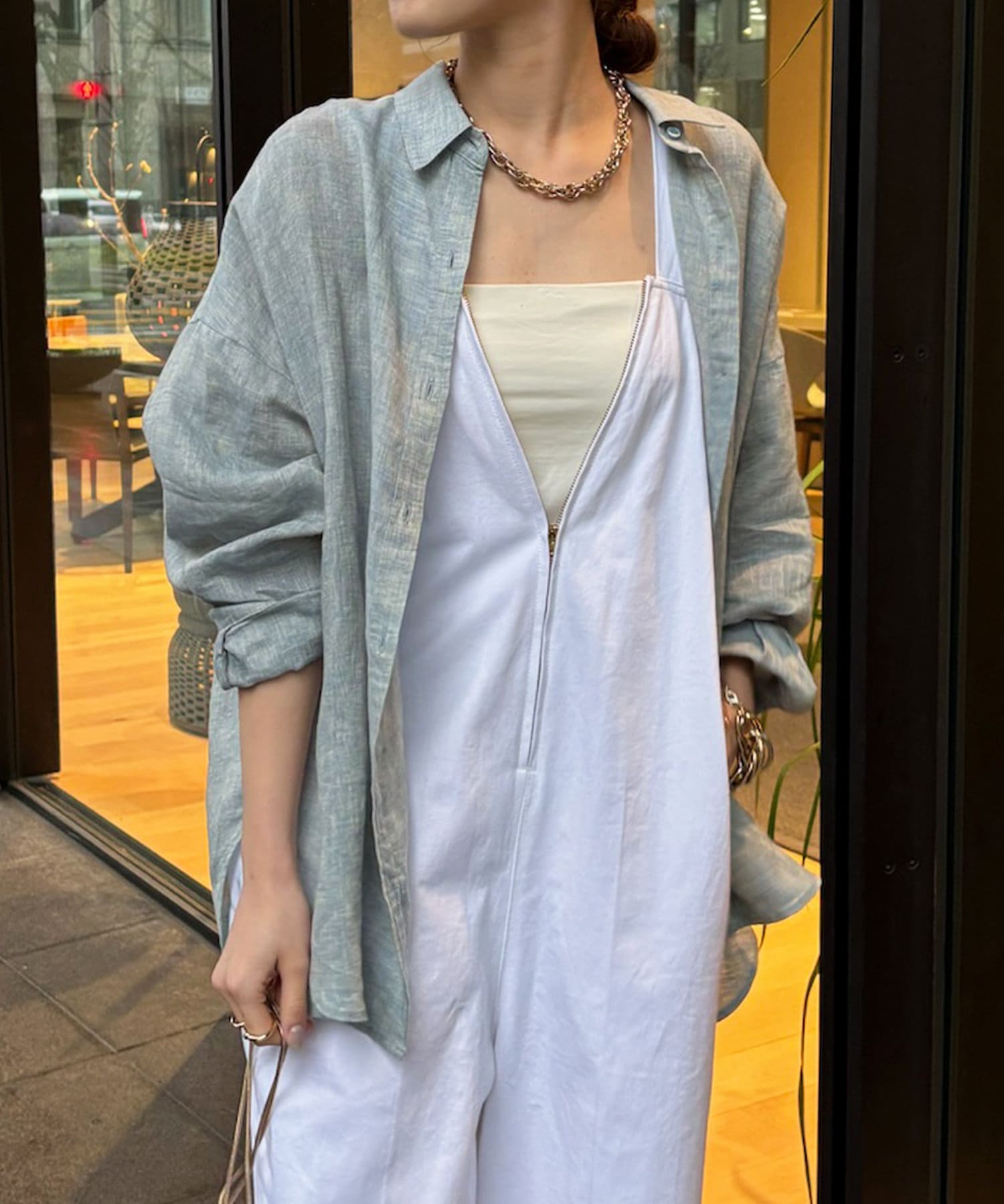 さらりと羽織れるディティールで、涼し気に決まる1枚です。