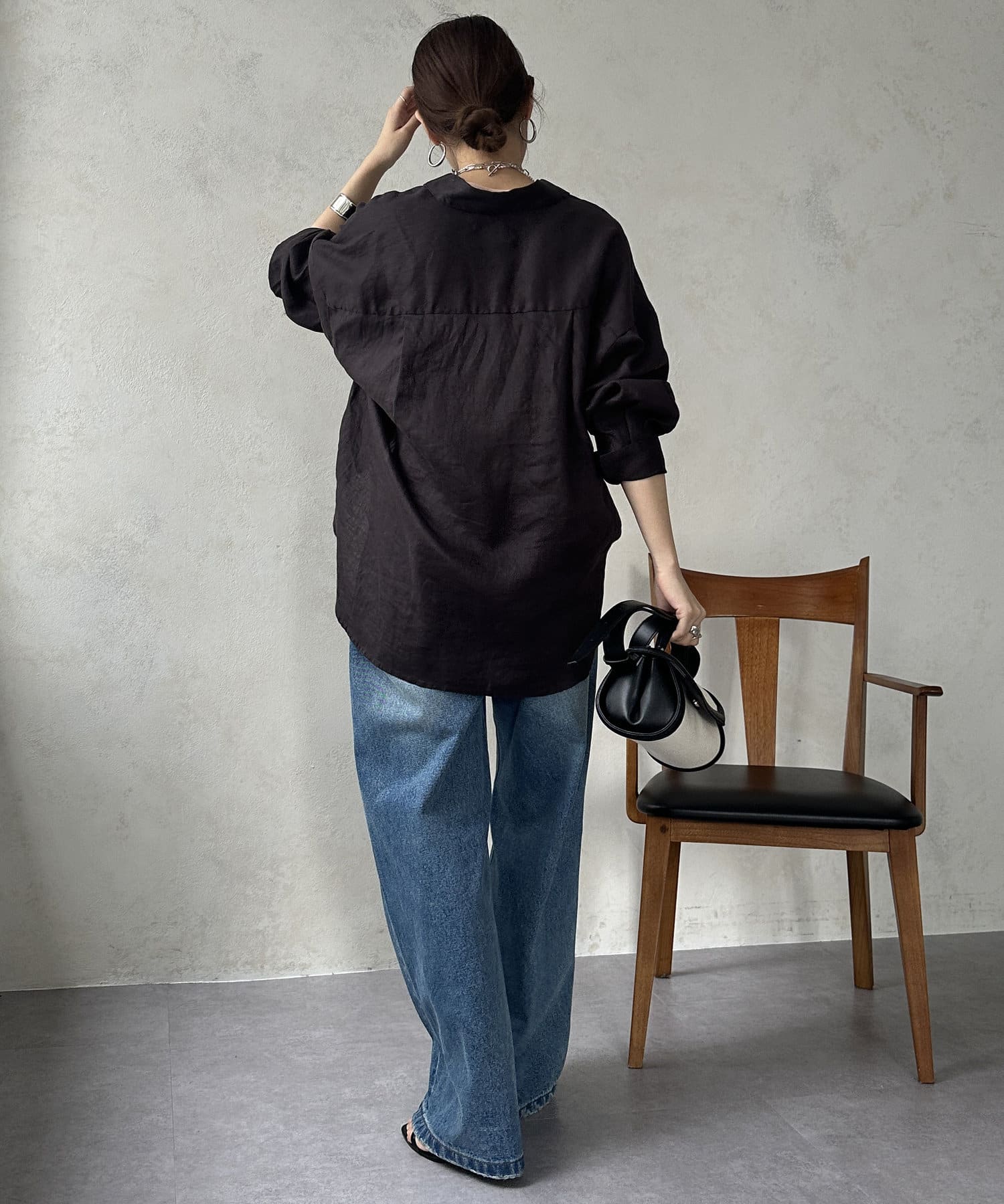 シンプルなデザインながらも、少しオーバーサイズに仕上げることでおしゃれな印象に。