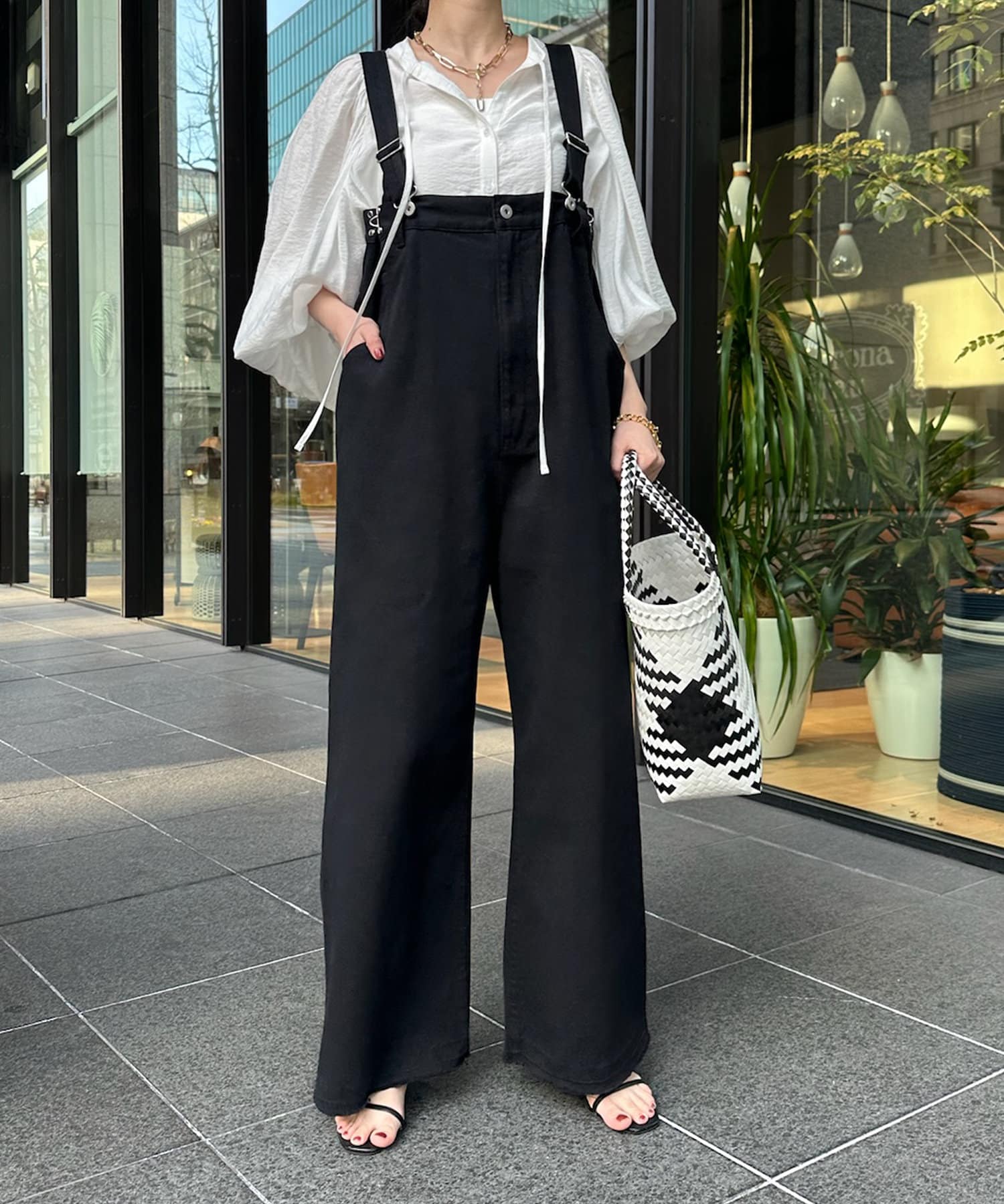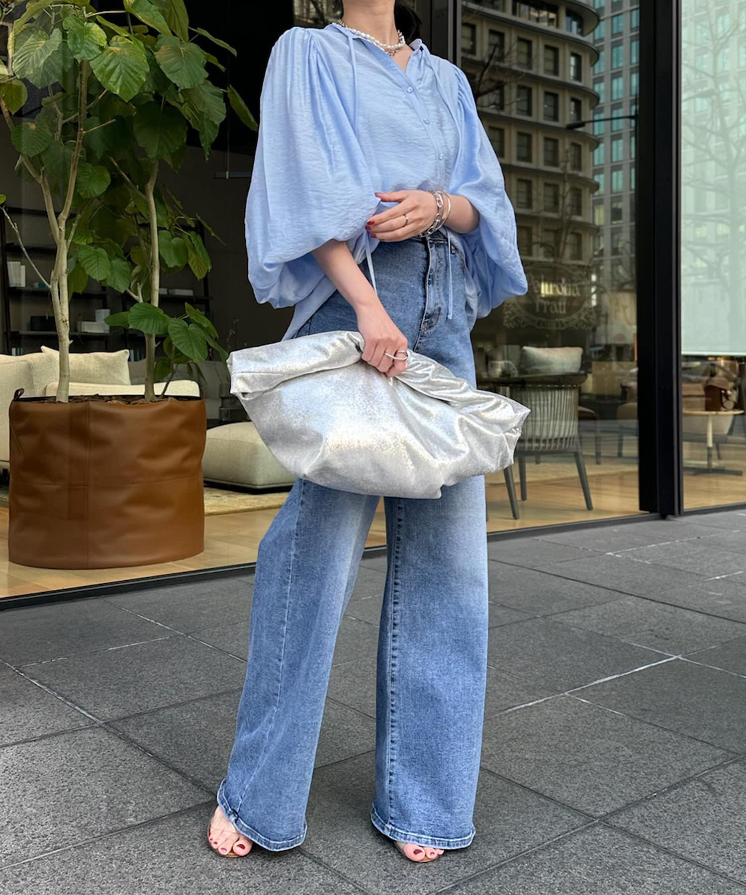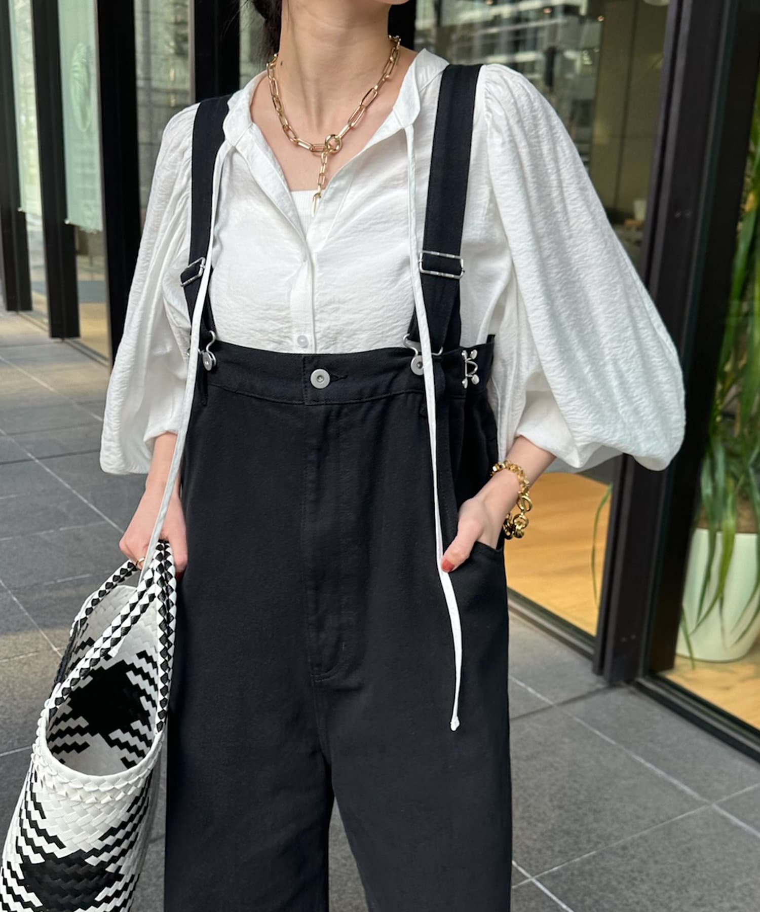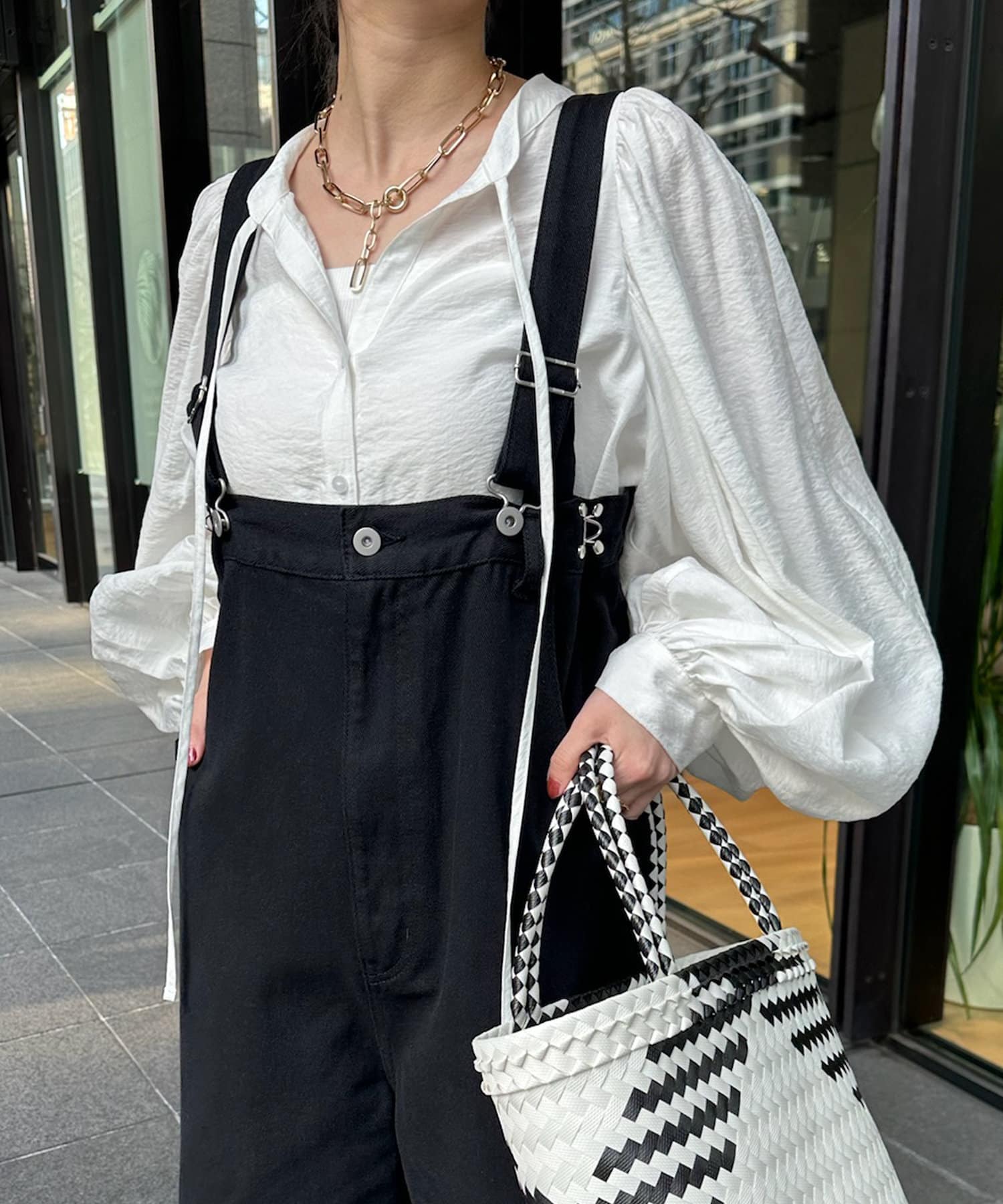 そして、お顔回りがすっきりと見えるスキッパーのデザインに、首元にはトレンド感のあるリボンをプラスしています。