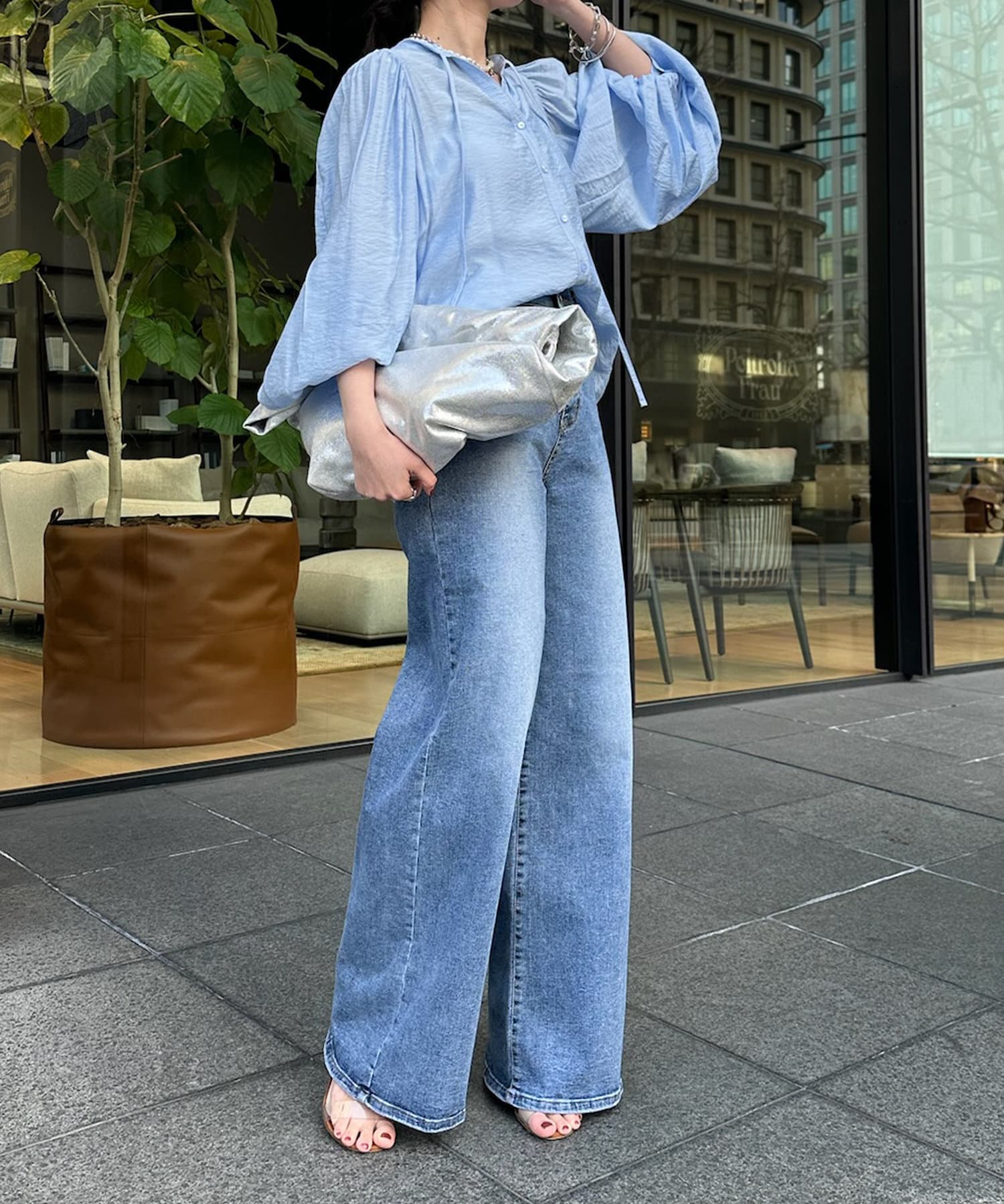 上品に透けるシアーの軽い印象がシーズンムードを与えてくれます。