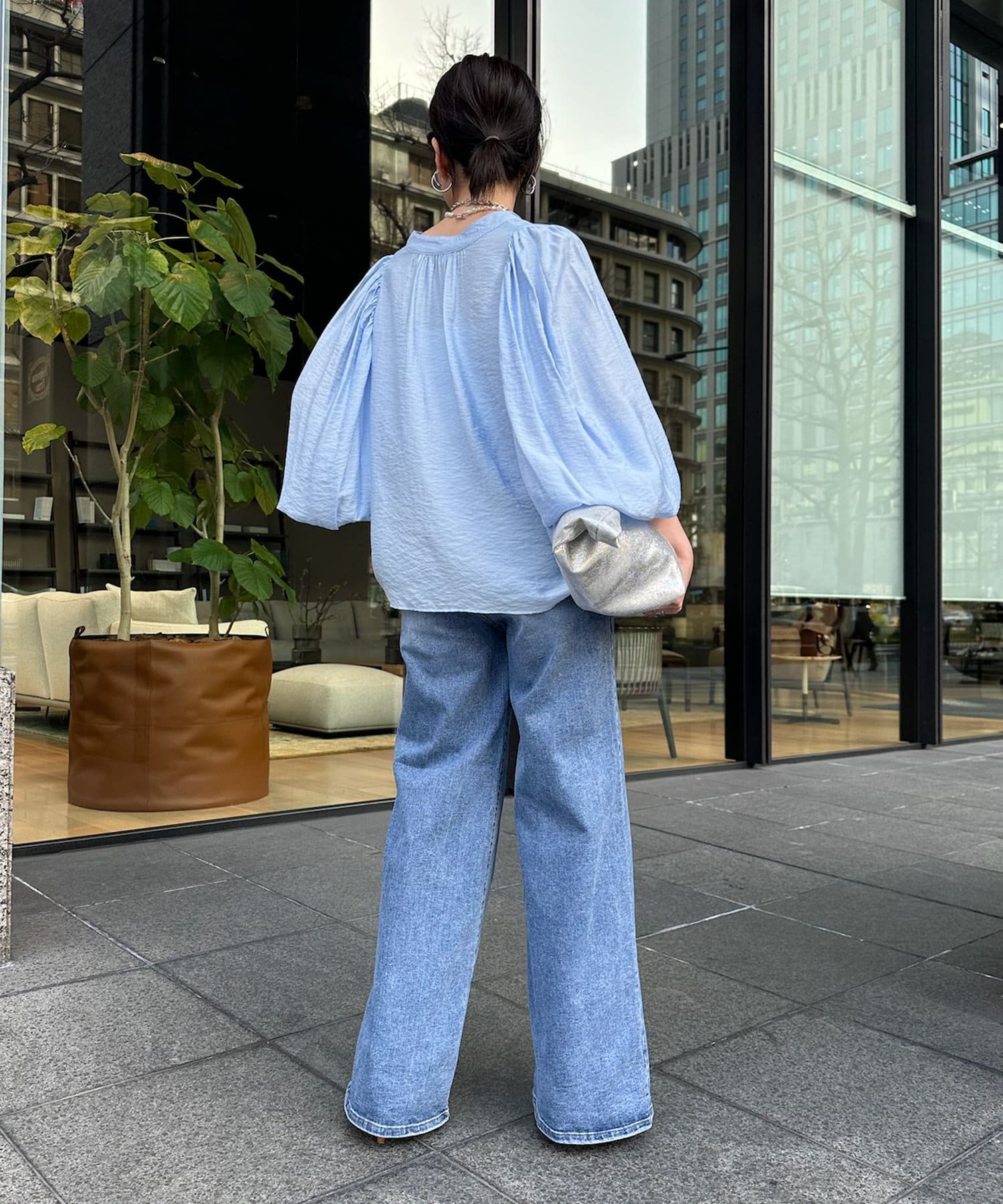 袖ボリュームギャザーシャツ