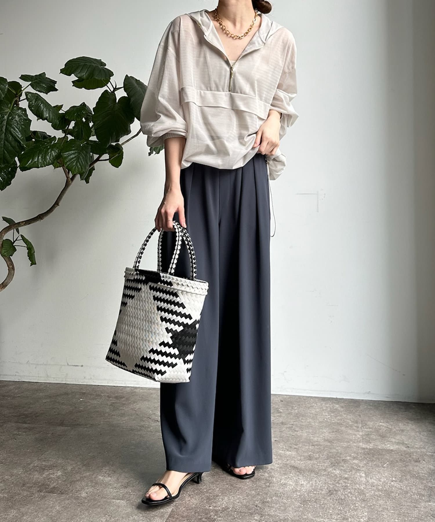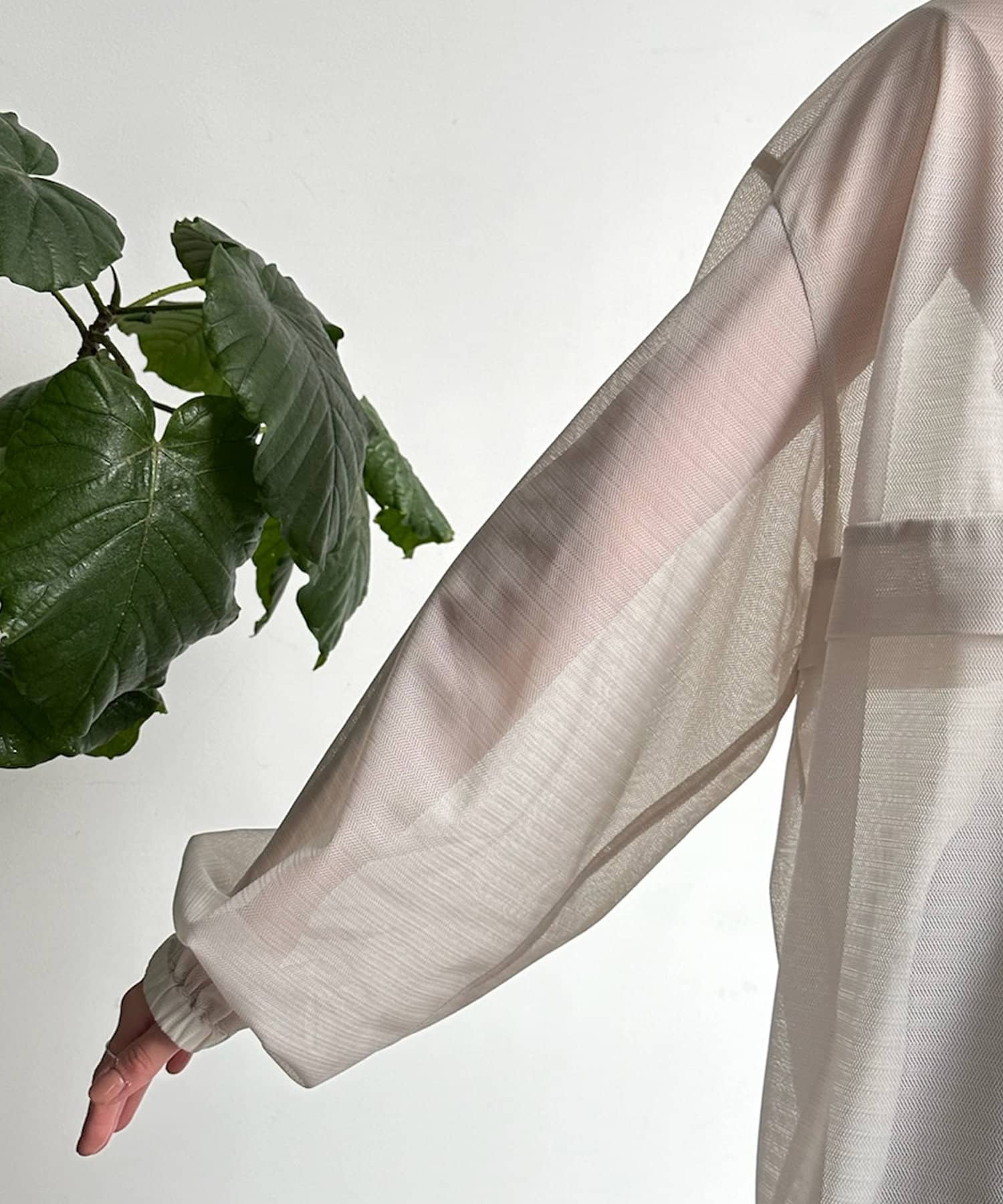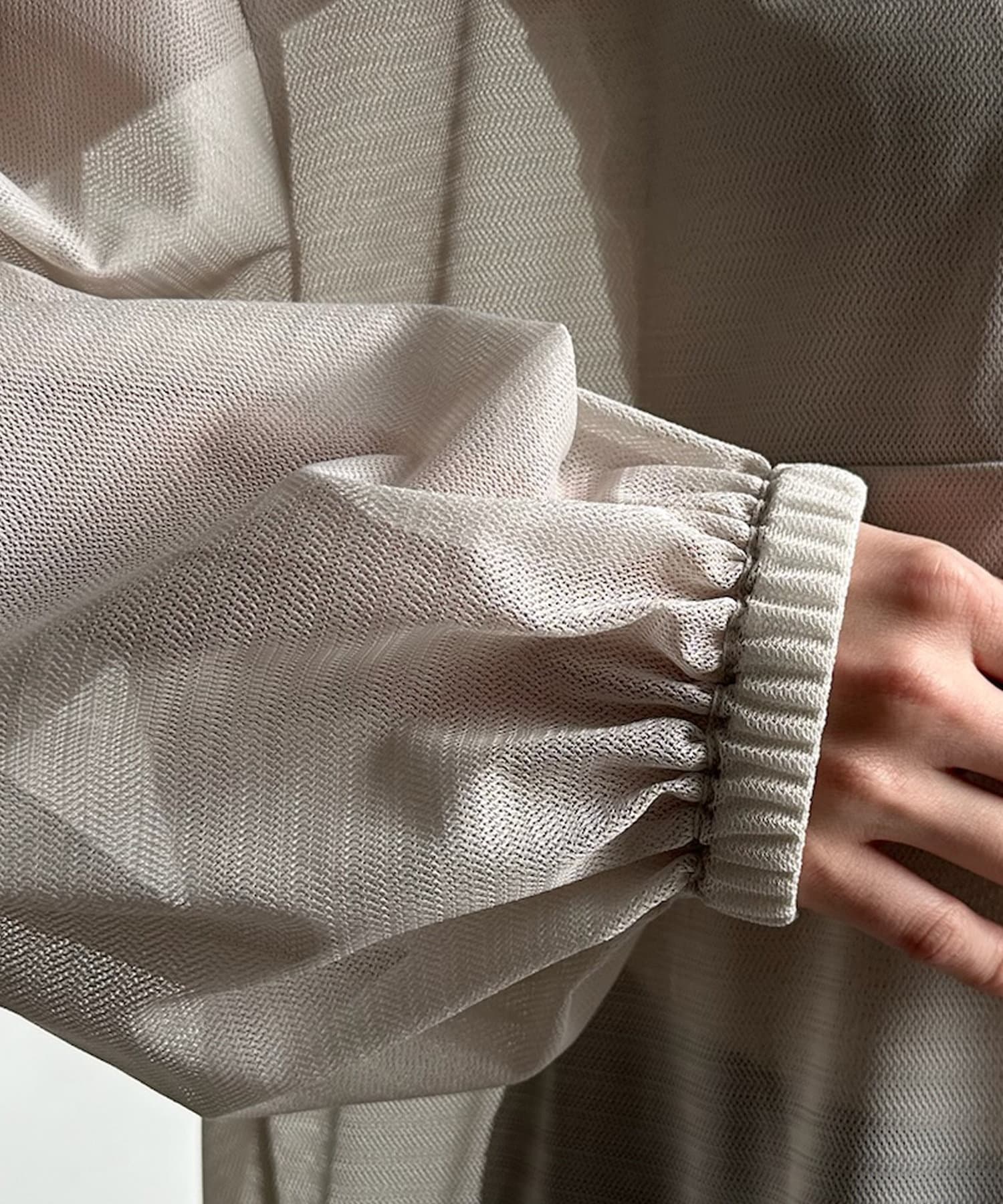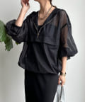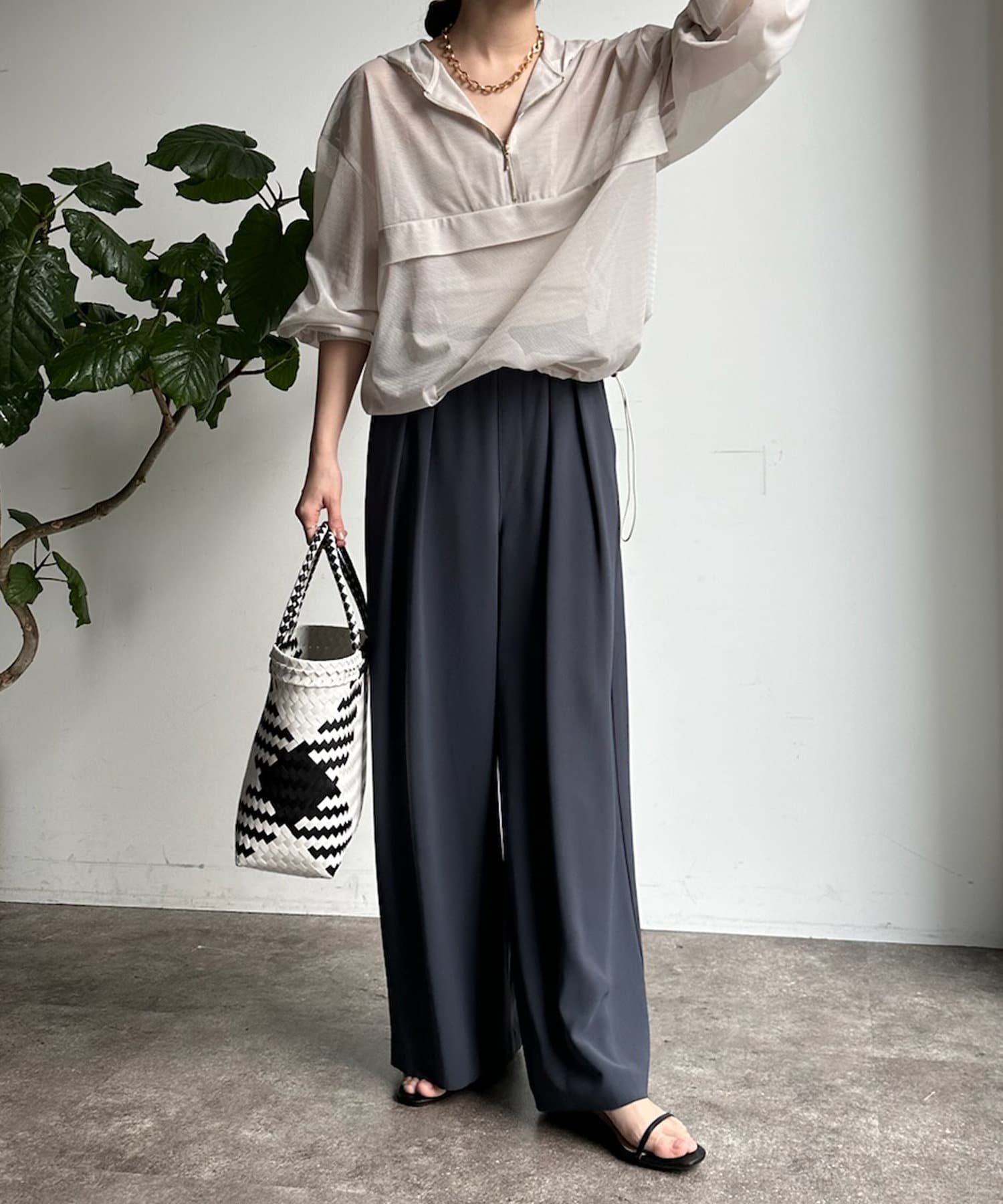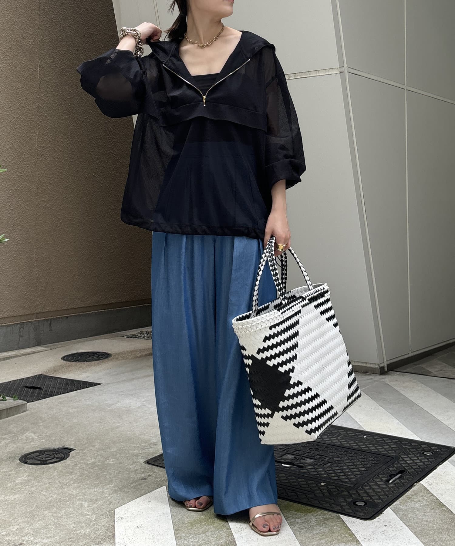 アノラックパーカーのアウトドアな要素を残しつつ、メッシュの透け感のある素材を使用することでトレンドライクな1着に。