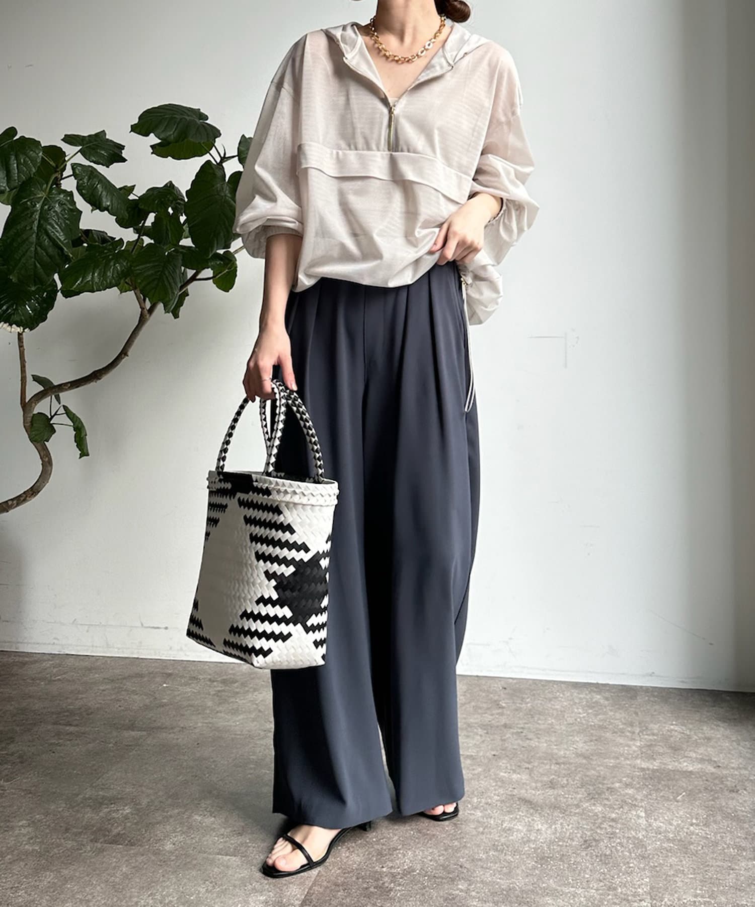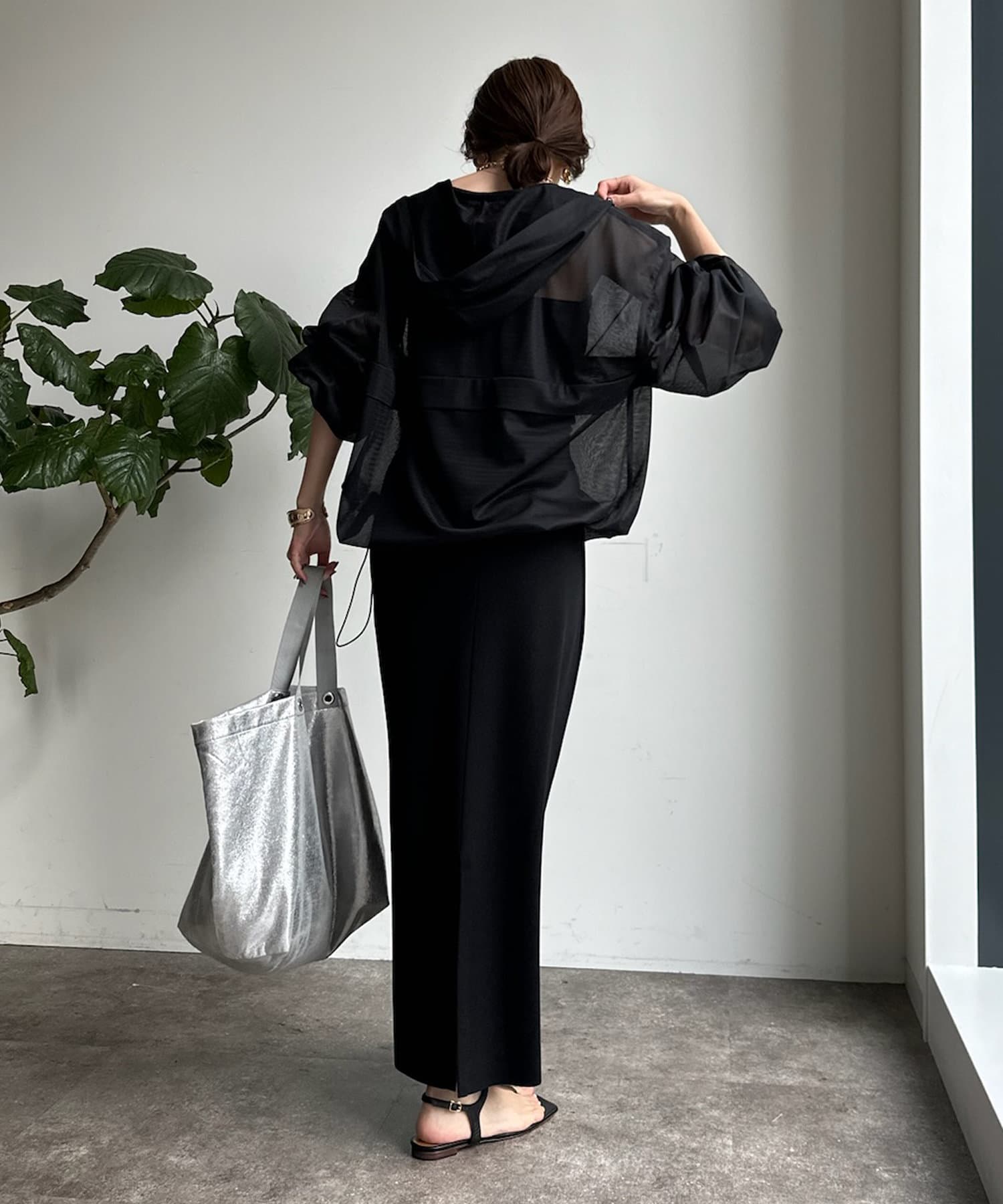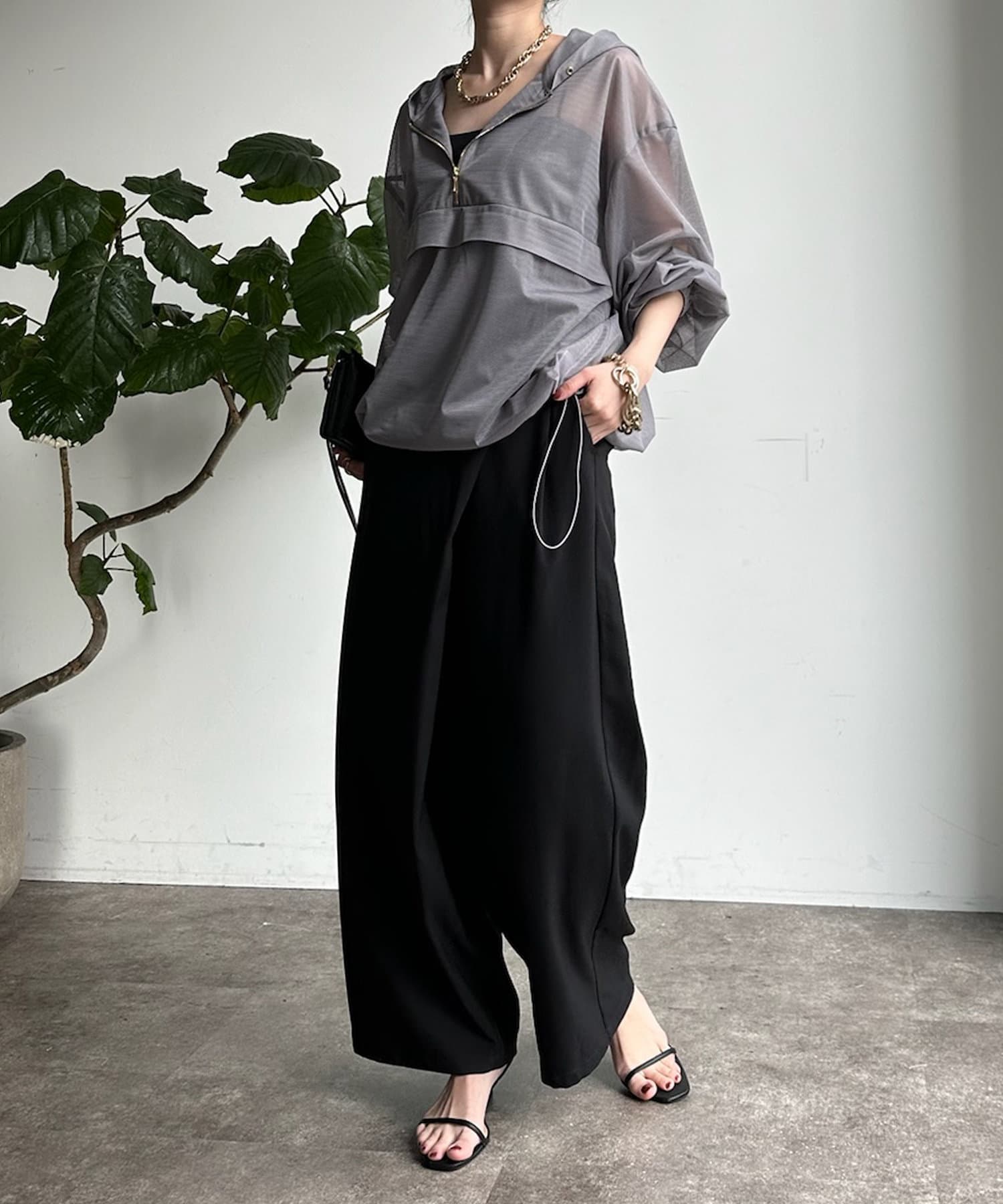 裾にはドロストコードがついているので、きゅっと締めて丸みのあるシルエットへと変化を付けることもできますよ◎