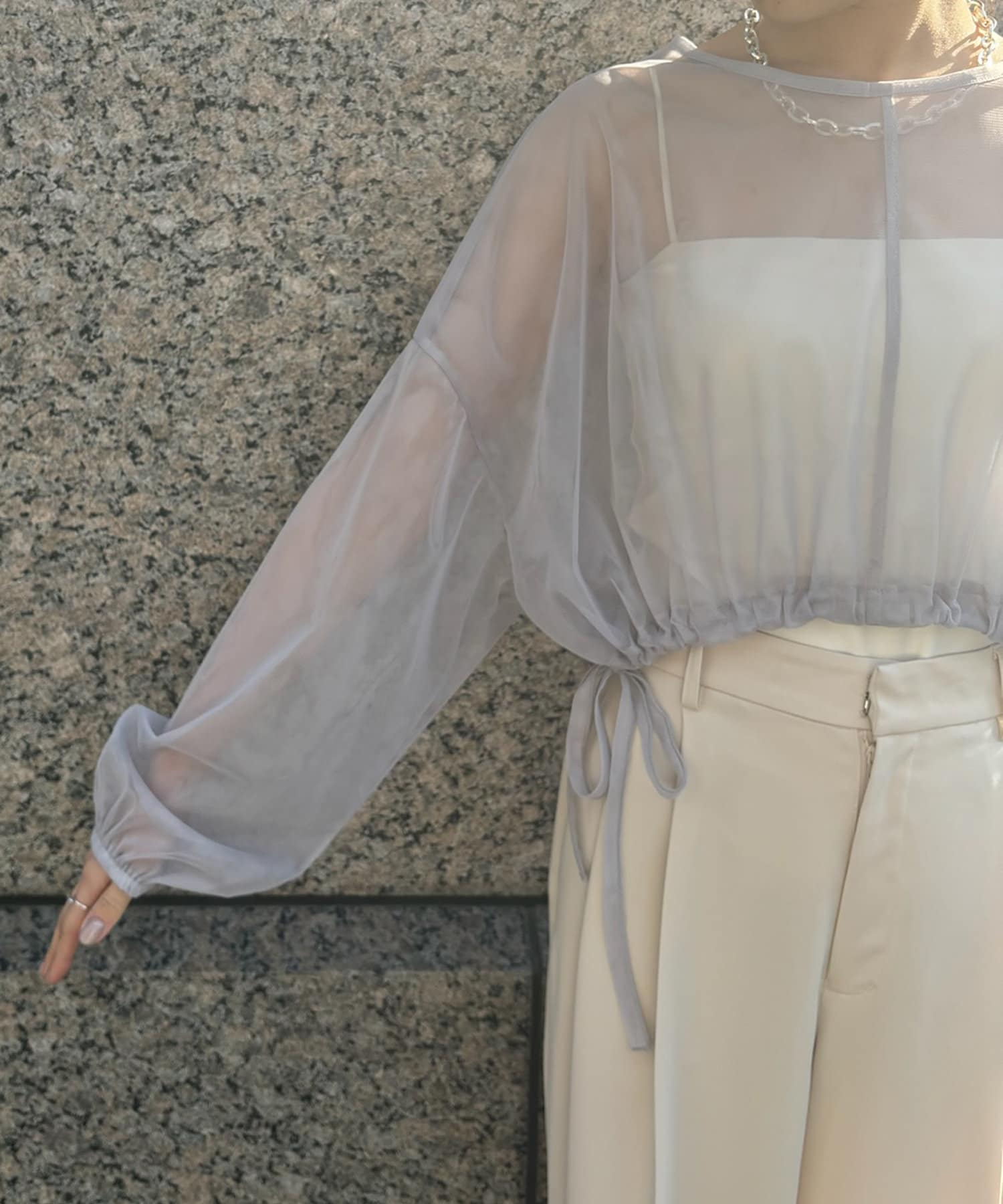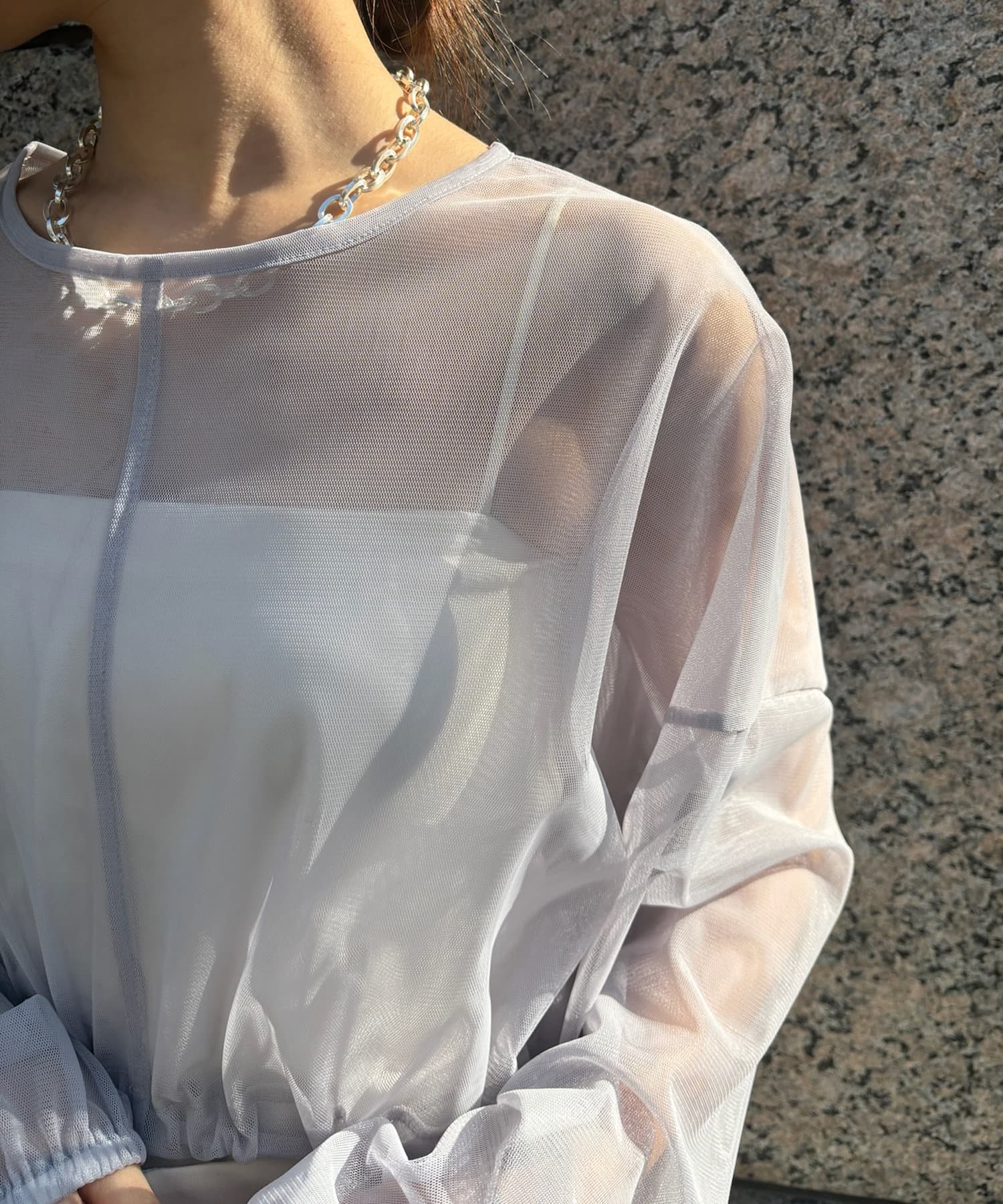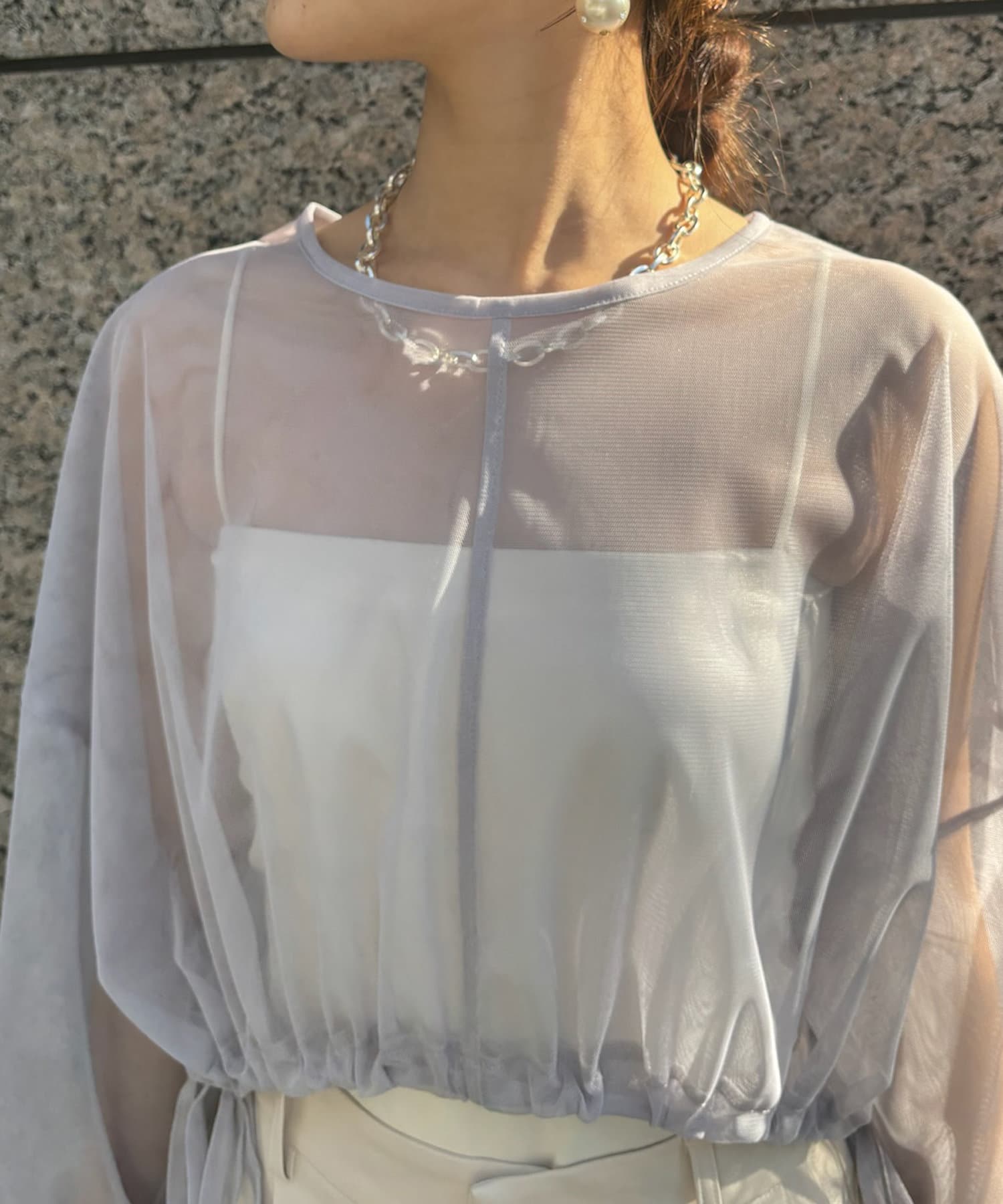 チュールの透け感とドロストのデザインがポイントのプルオーバーが登場!